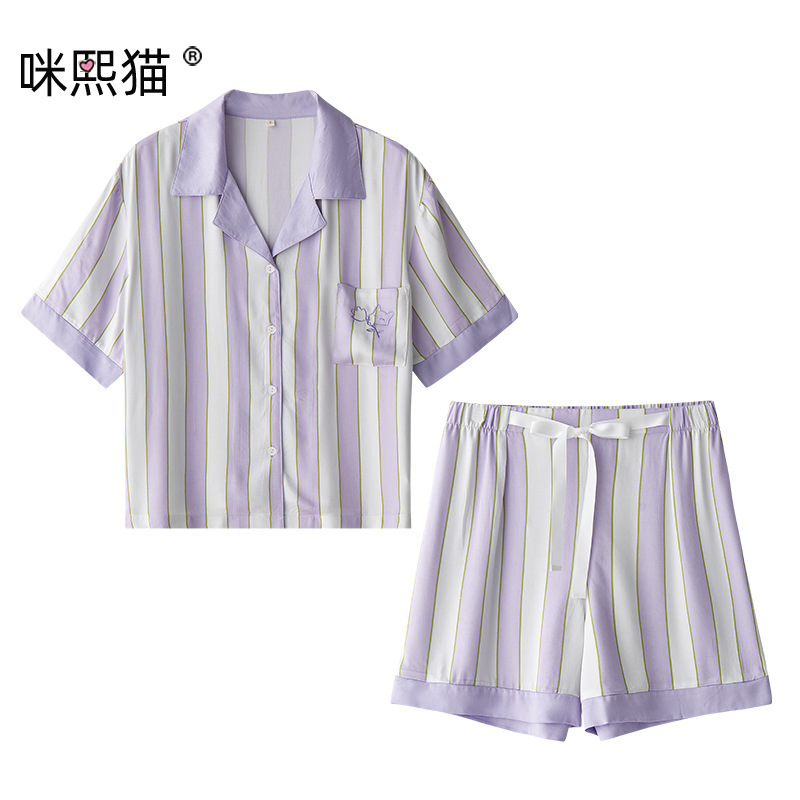 • 새틴 1010 짧은 보라색 줄무늬