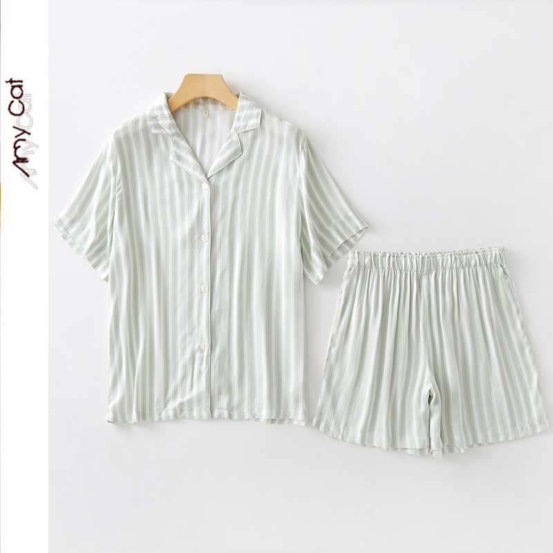• 공 새틴 633 쇼트 그린 스트라이프