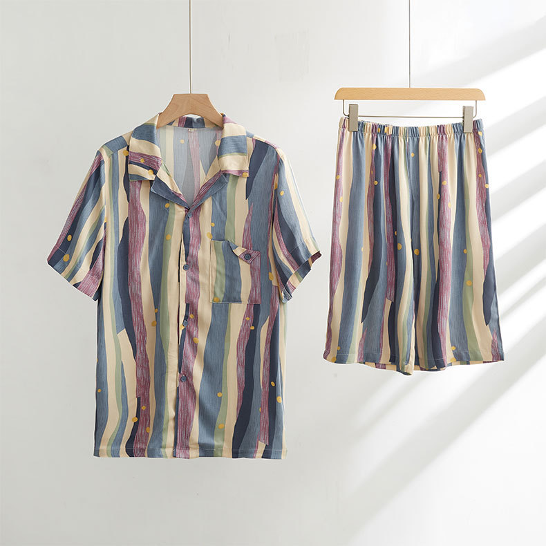• 공 새틴 2507 남성용 짧은 파란색 유화 줄무늬