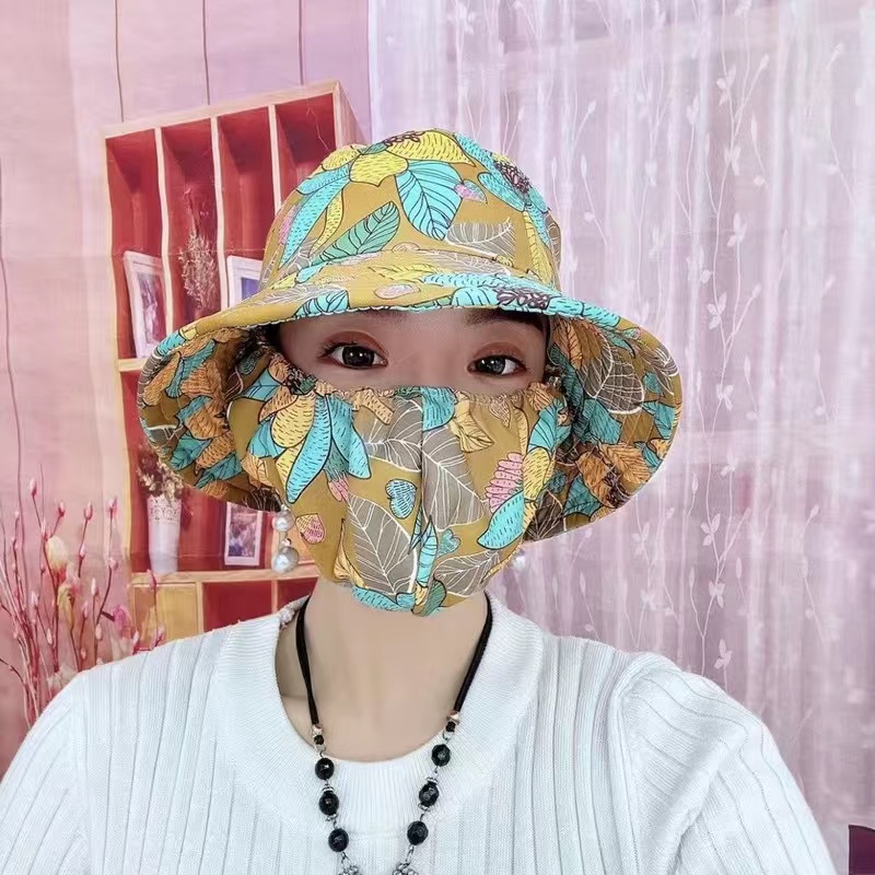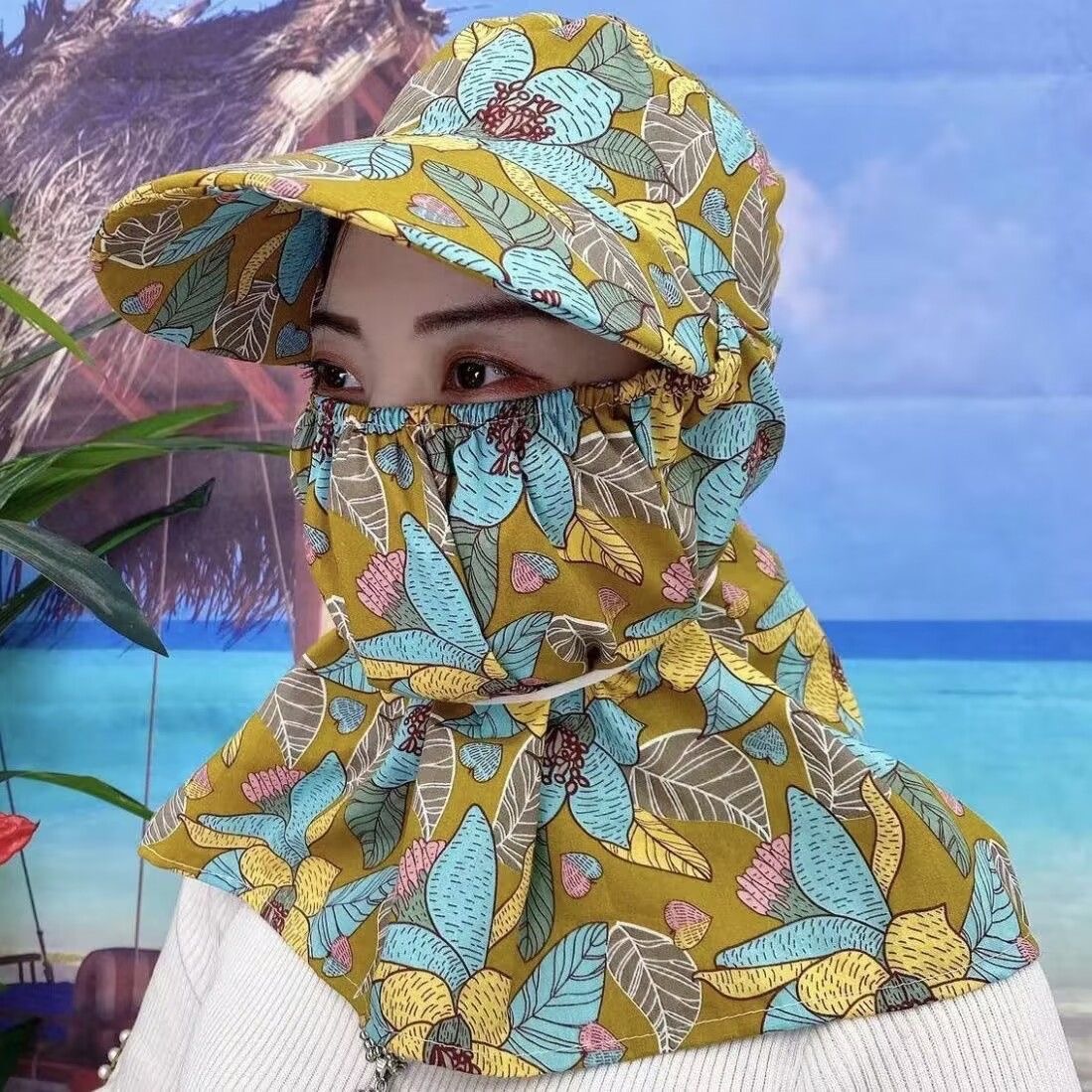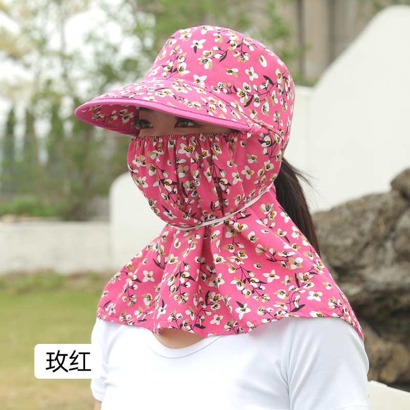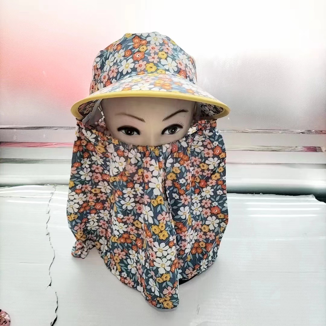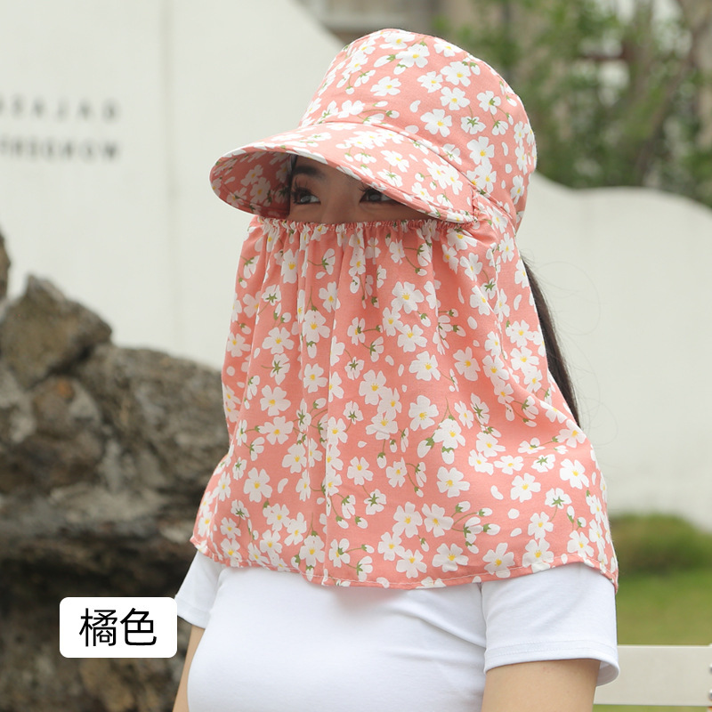 23 신상품 여름 면 실크 스몰 플로럴 자외선 차단제 현장 작업용 모자 올매치 차양 야외 목 보호 얼굴 보호 차 따기 모자