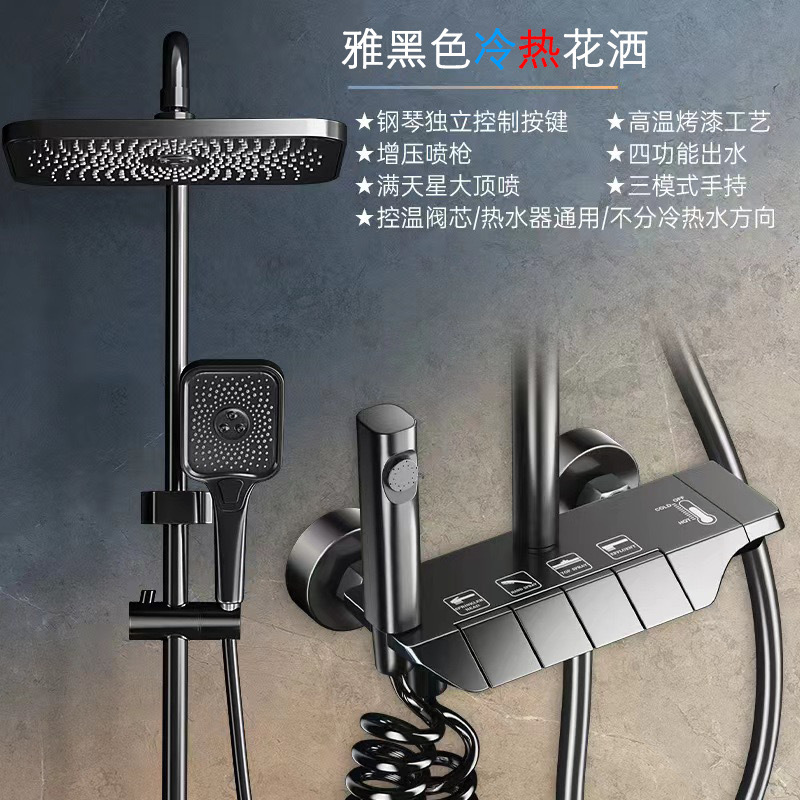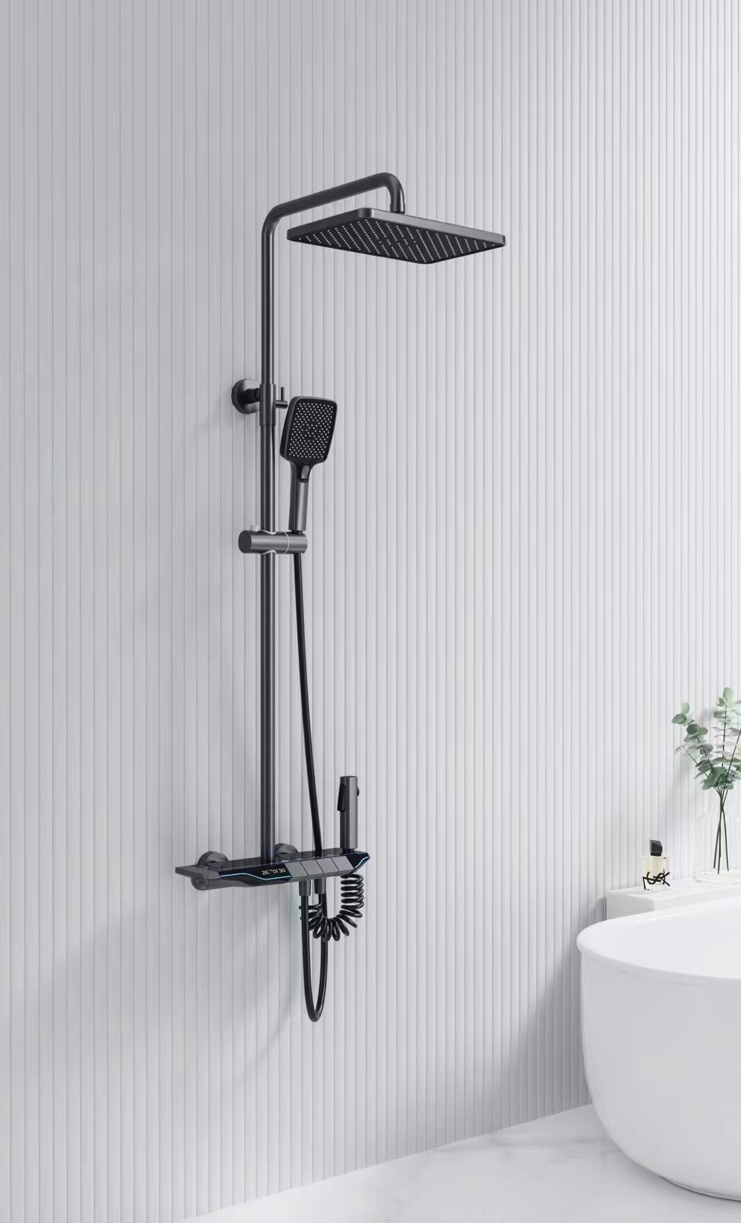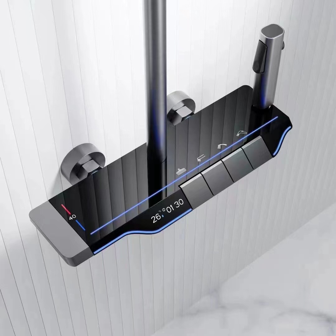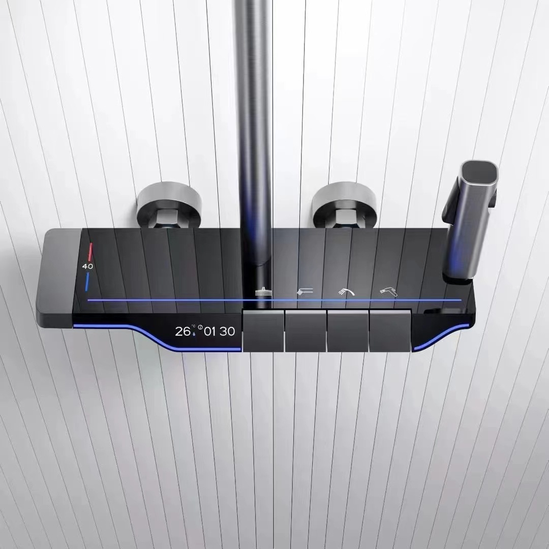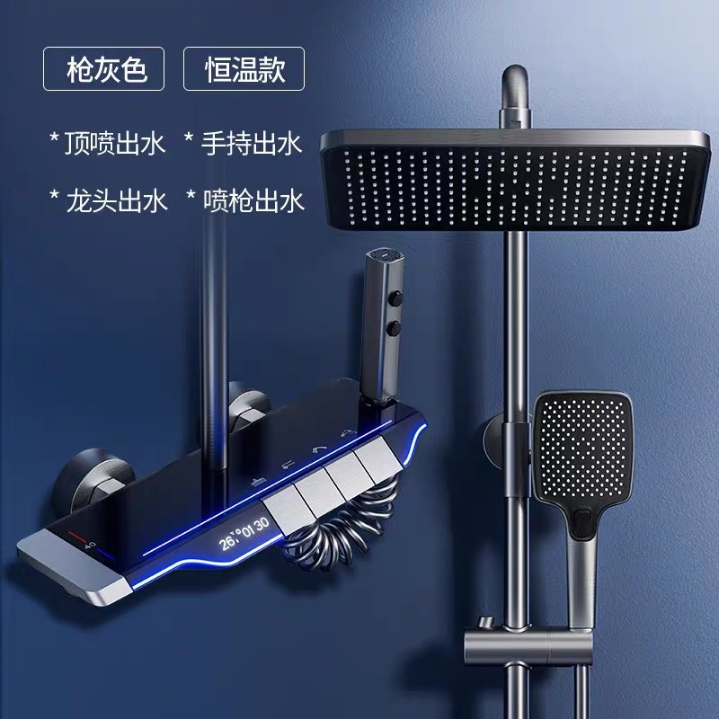 빛 럭셔리 마사지 전체 구리 일정한 온도 샤워 샤워 세트 디지털 디스플레이 샤워 캐리어 욕실 가압 샤워 가정