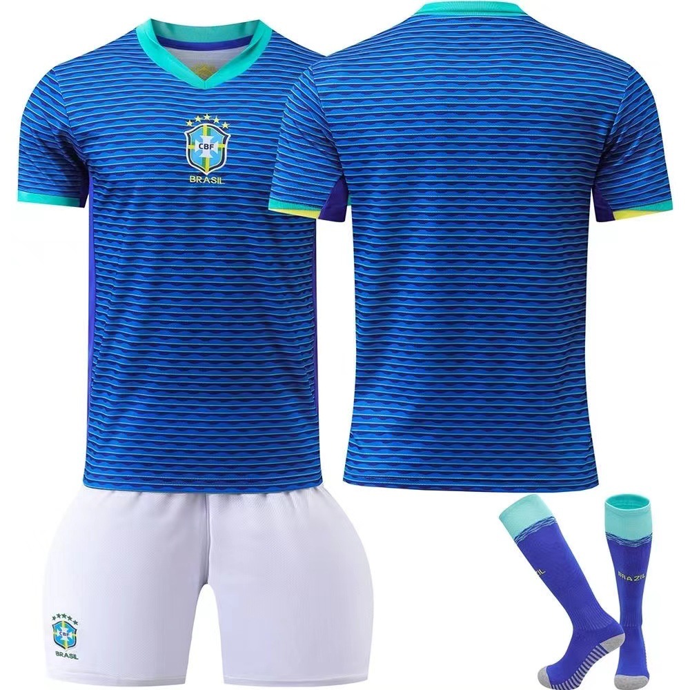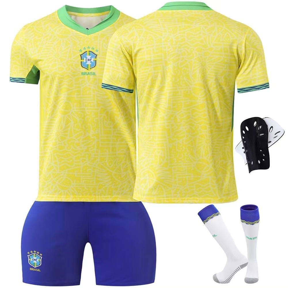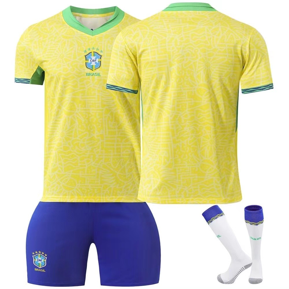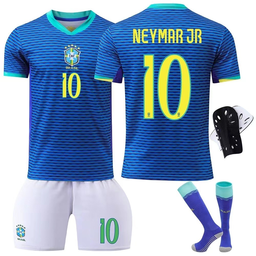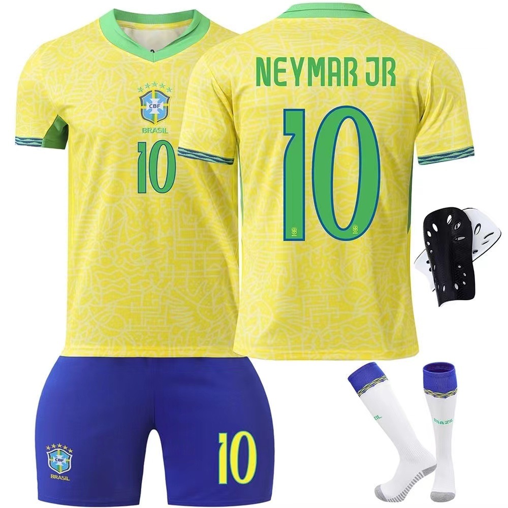2024 브라질 저지 No.10 네이마르 아동복 축구복 가정 및 원정 성인 어린이 세트 양말