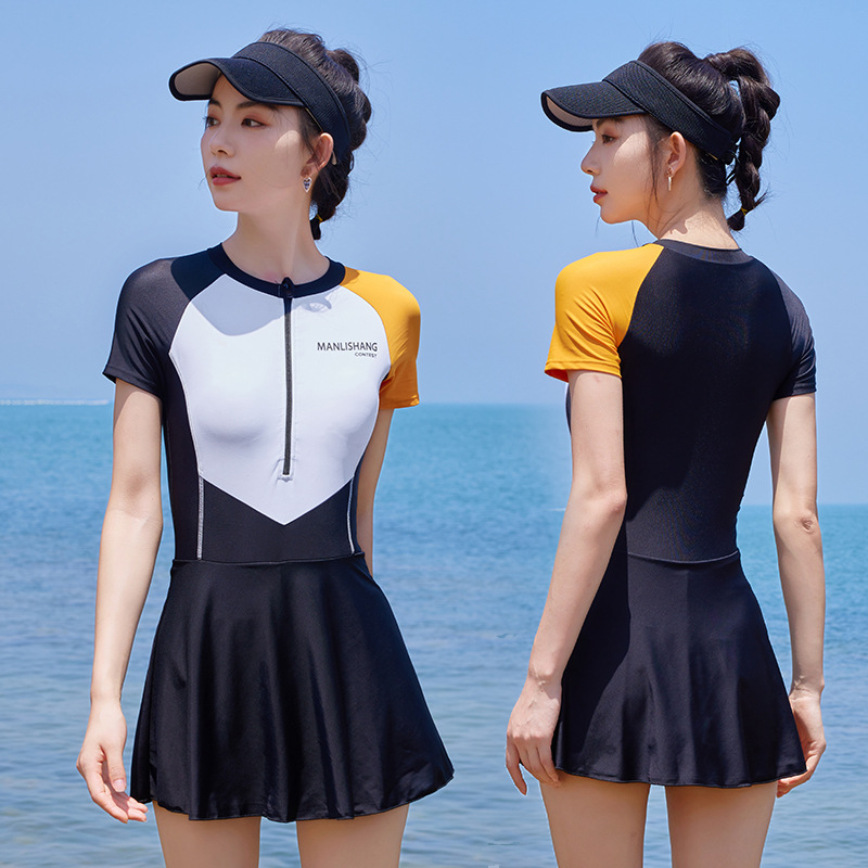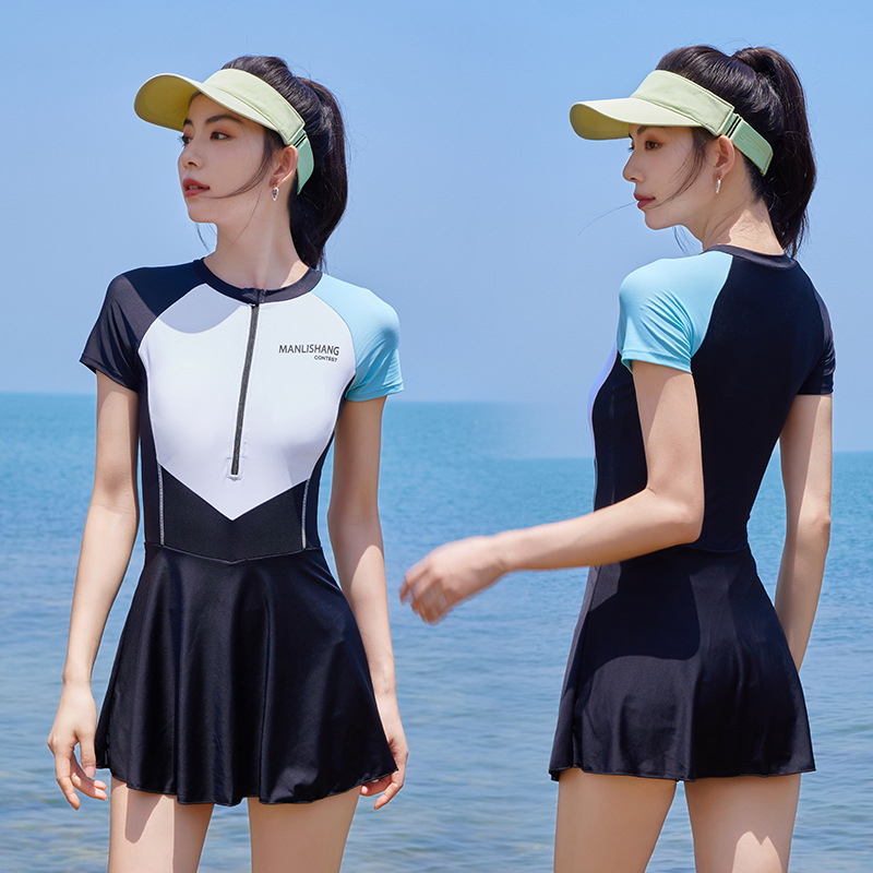 새로운 보수적 인 여성용 수영복 해변 휴가 수영복 학생 캐주얼 원피스 세트 수영복 여성용 플러스 사이즈 수영복 여성스토어 가기