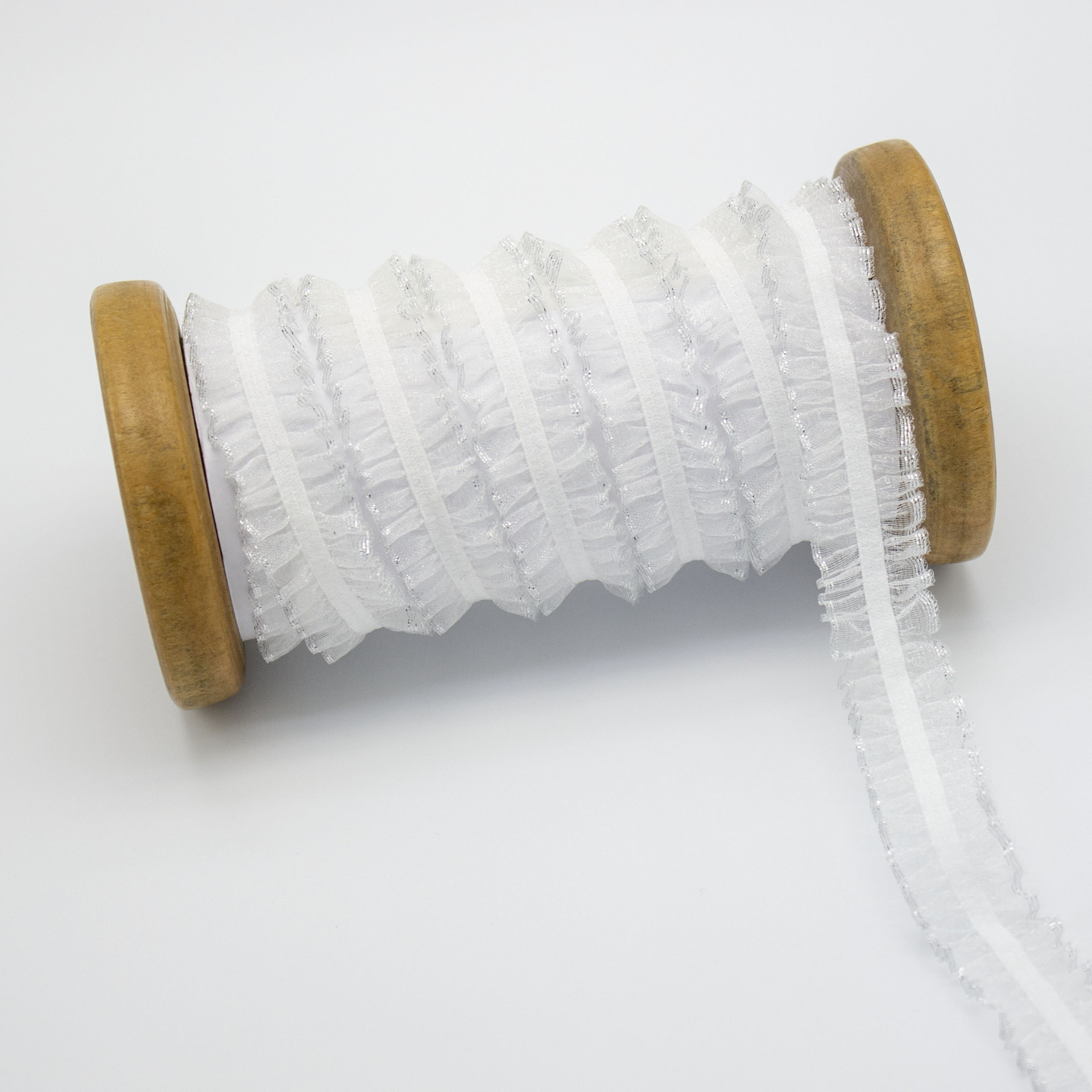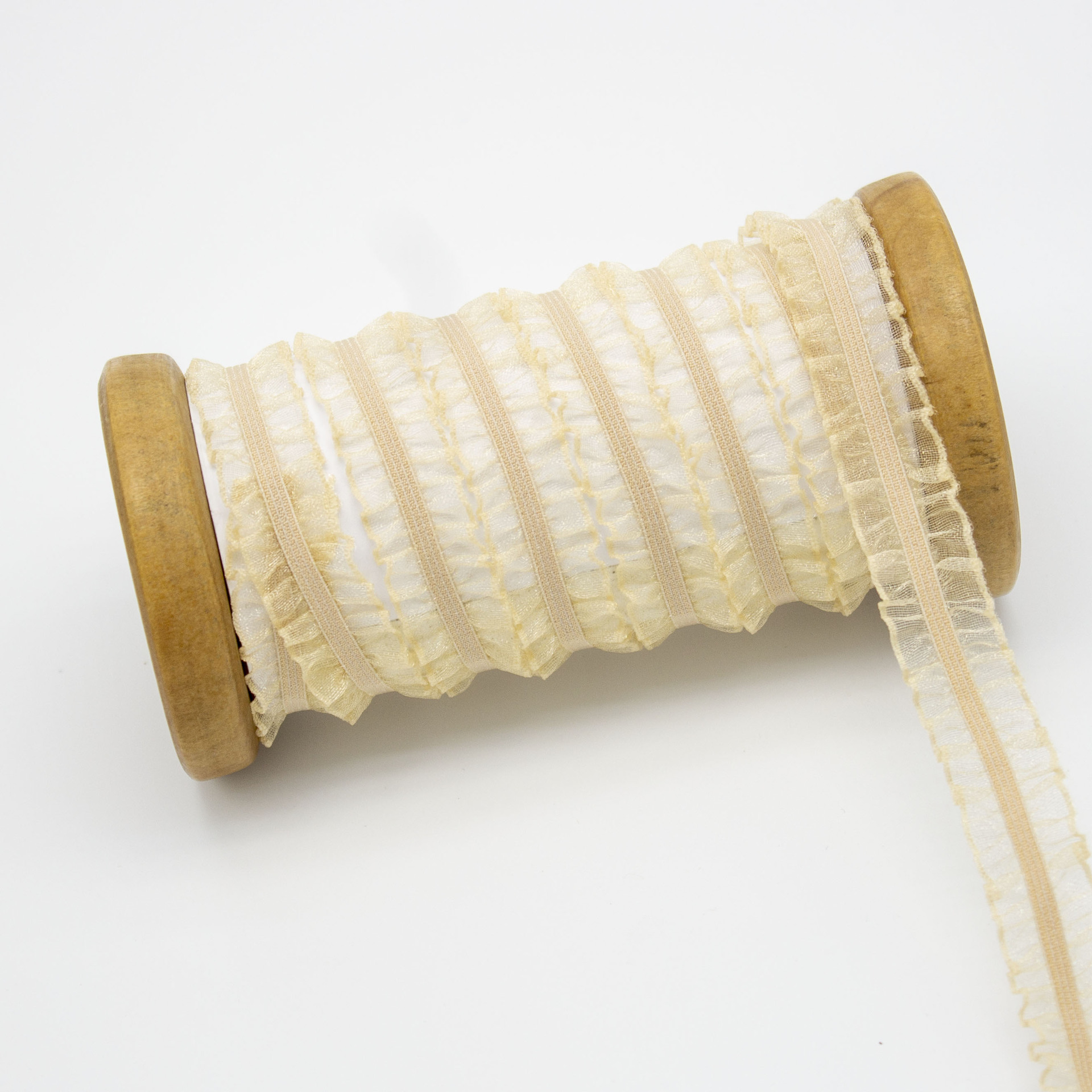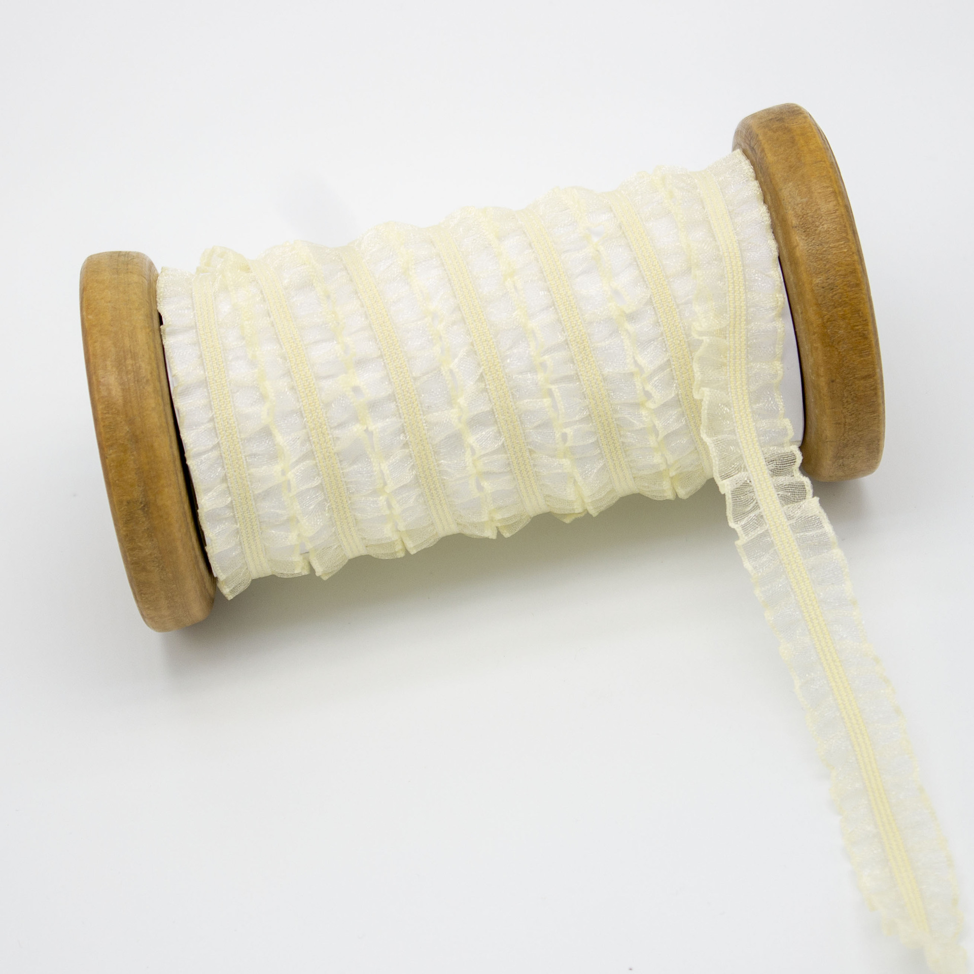 재고 15mm 양방향 스노우 원사 레이스 양자 곰팡이 주름 주름 탄성 쉬폰 bjd 아기 옷 중국 의류 DIY