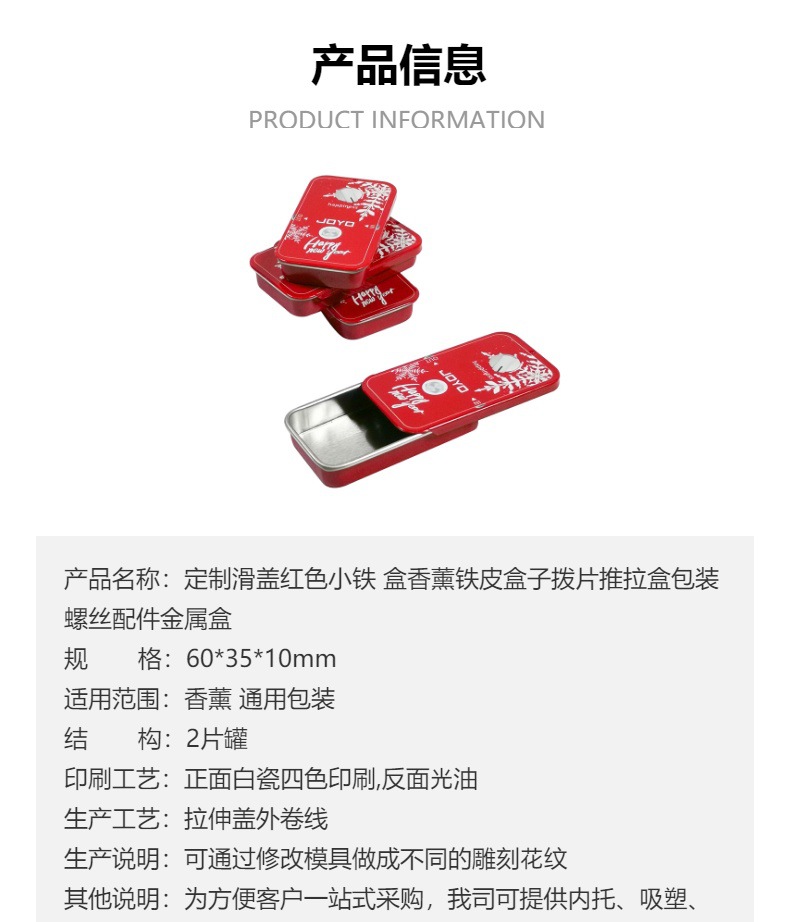 맞춤형 슬라이딩 커버 빨간색 작은 철 상자 아로마 테라피 철 상자 플래시 푸시 풀 상자 나사 액세서리 금속 상자 사각형스토어 가기