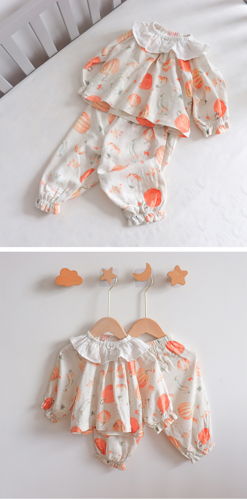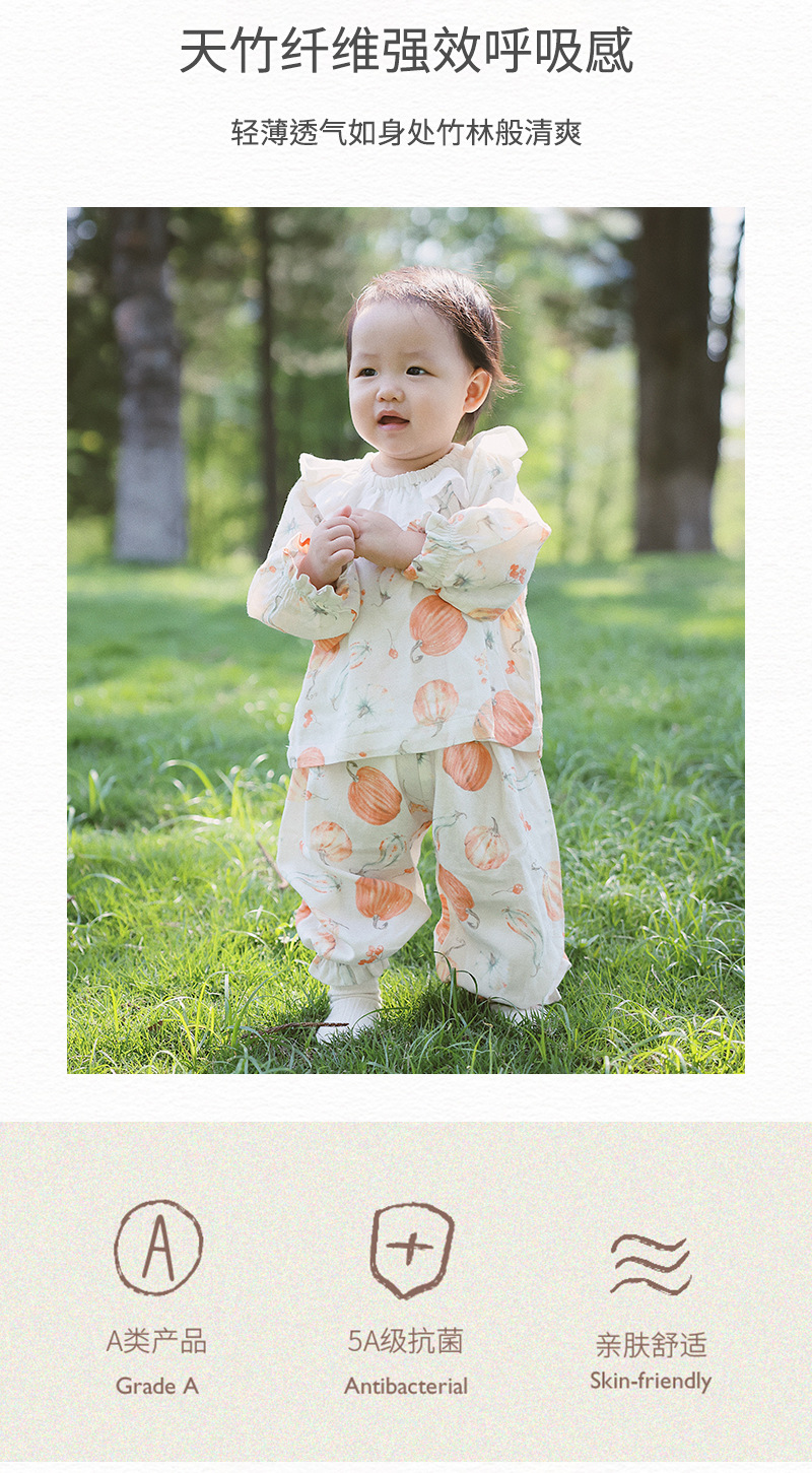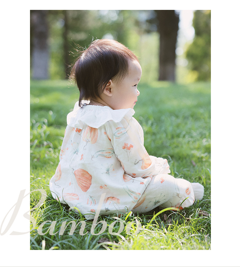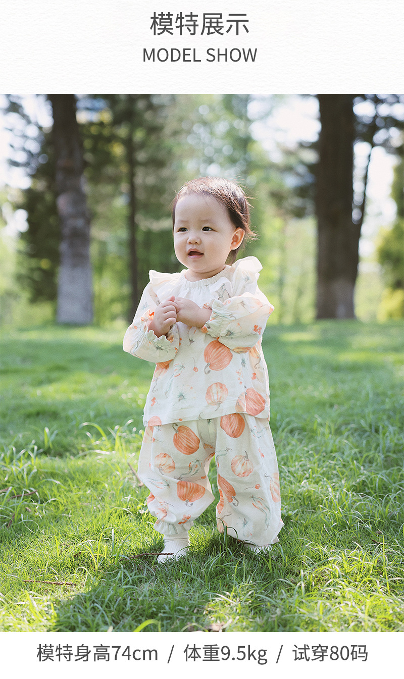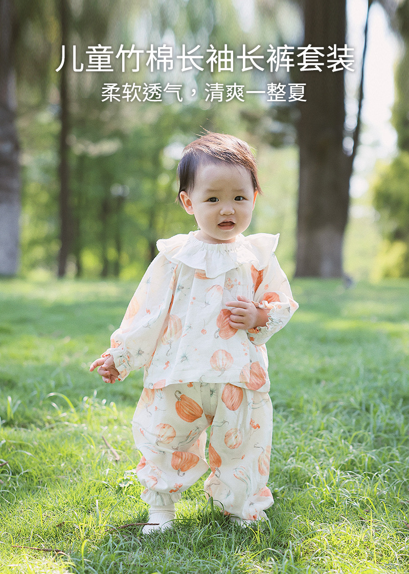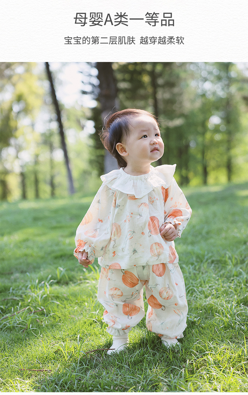아기 홈웨어 세트, 긴팔 긴바지, 외출복, 여아 잠옷, 아기 대나무 면 거즈옷, 외부에서 착용 가능스토어 가기