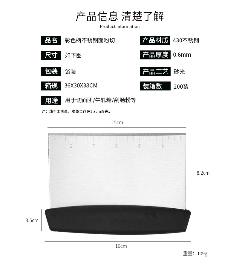 플라스틱 PP 핸들 스테인레스 스틸 밀가루 절단 스케일 절단 칼 밥 롤 스크레이퍼 요리 베이킹 세트스토어 가기