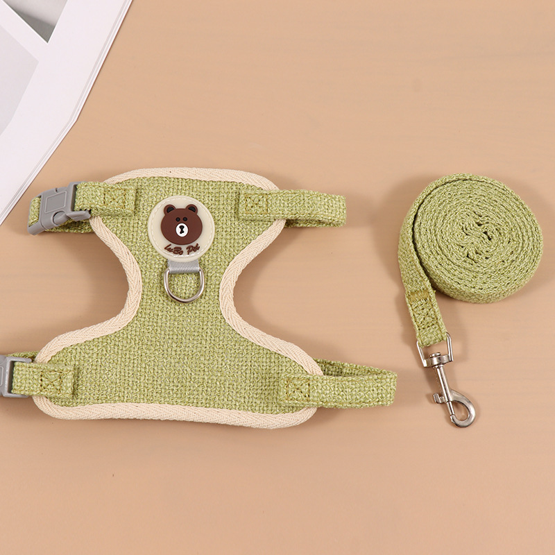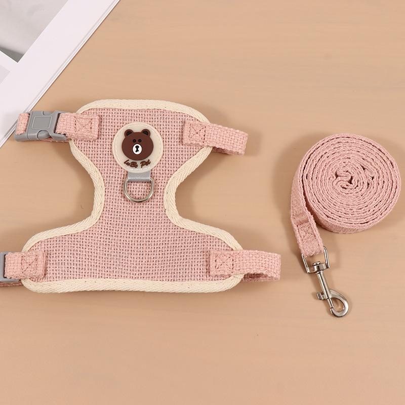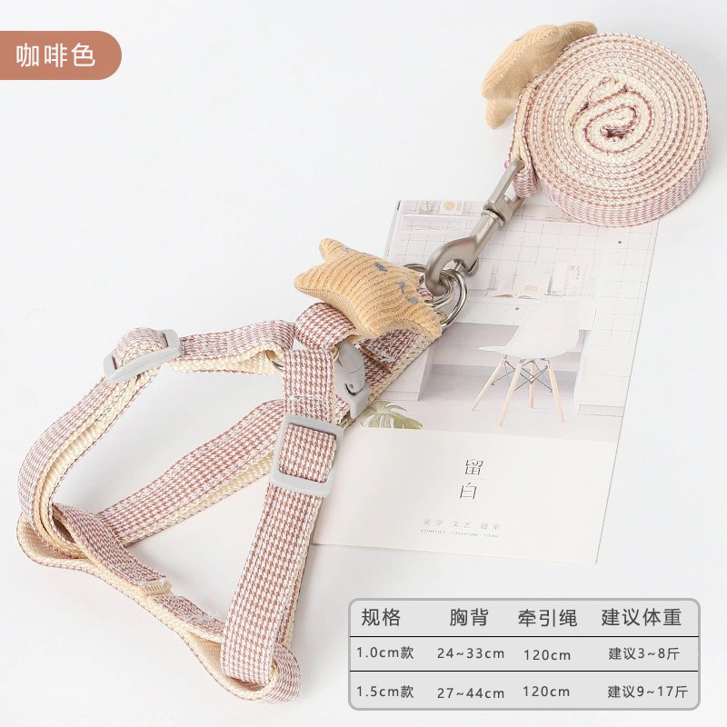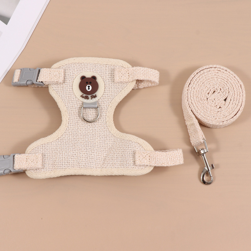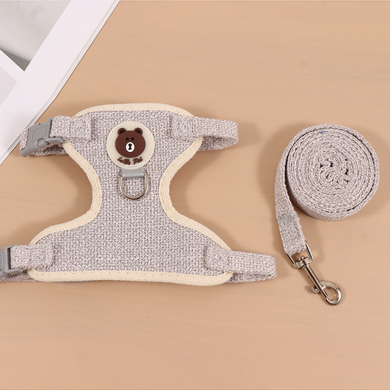 • 【브라운 곰돌이 회색】 리드줄 + 가슴 하네스