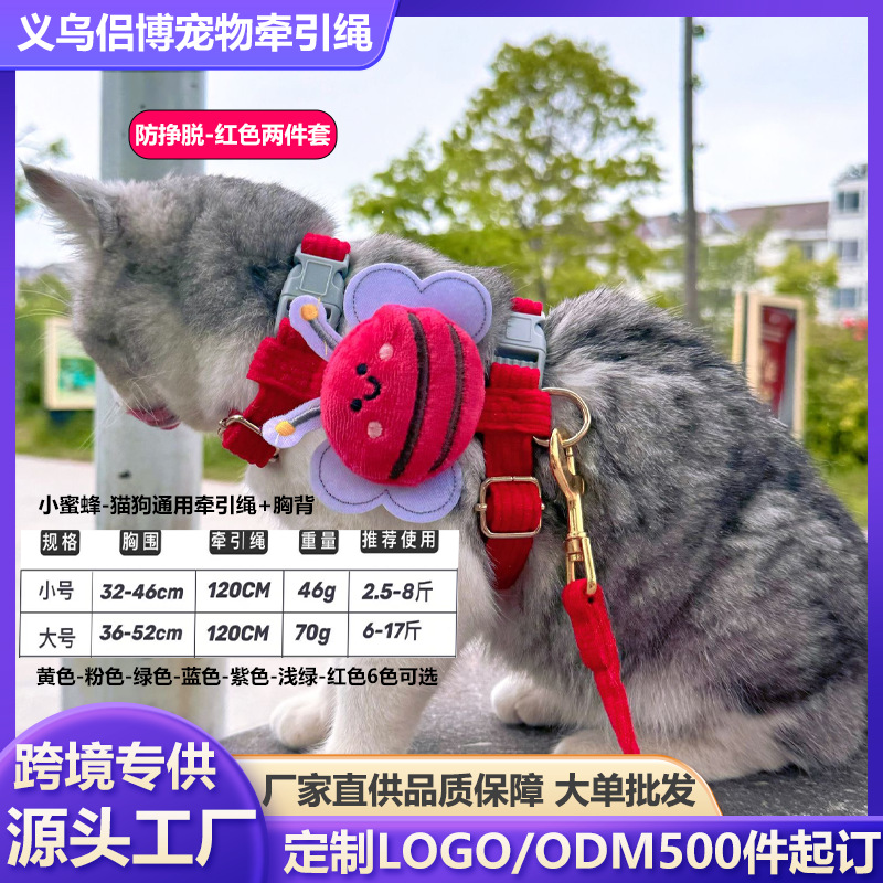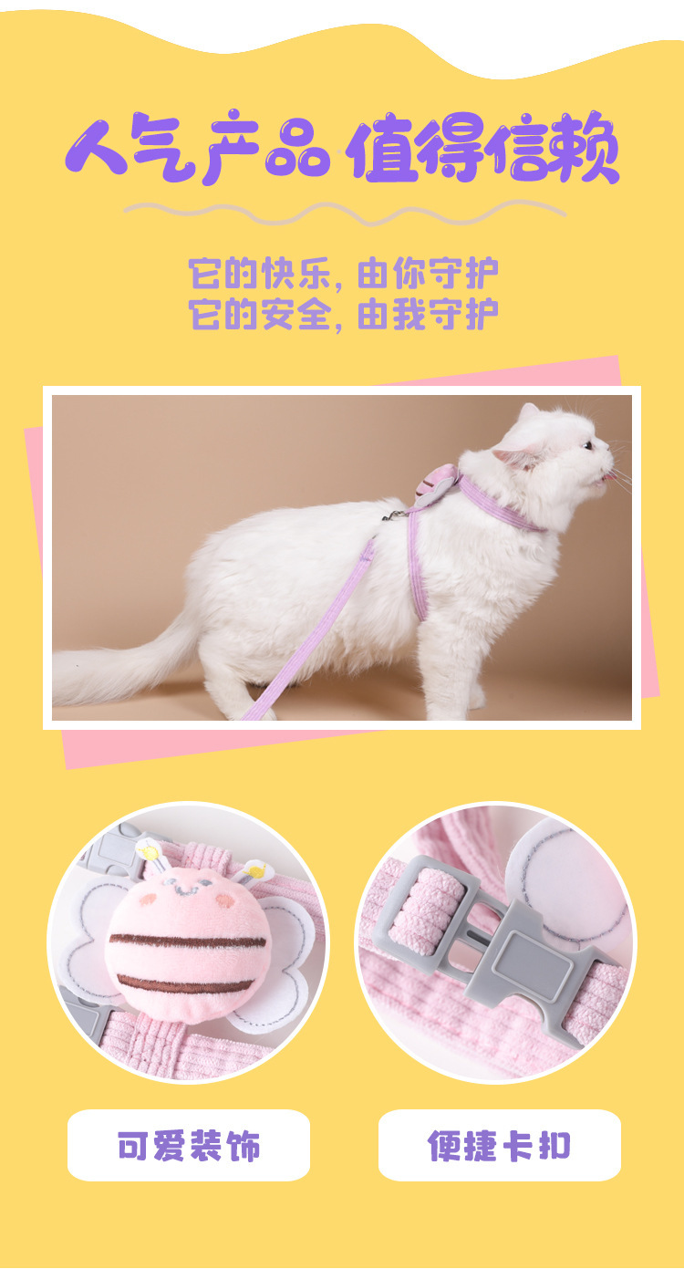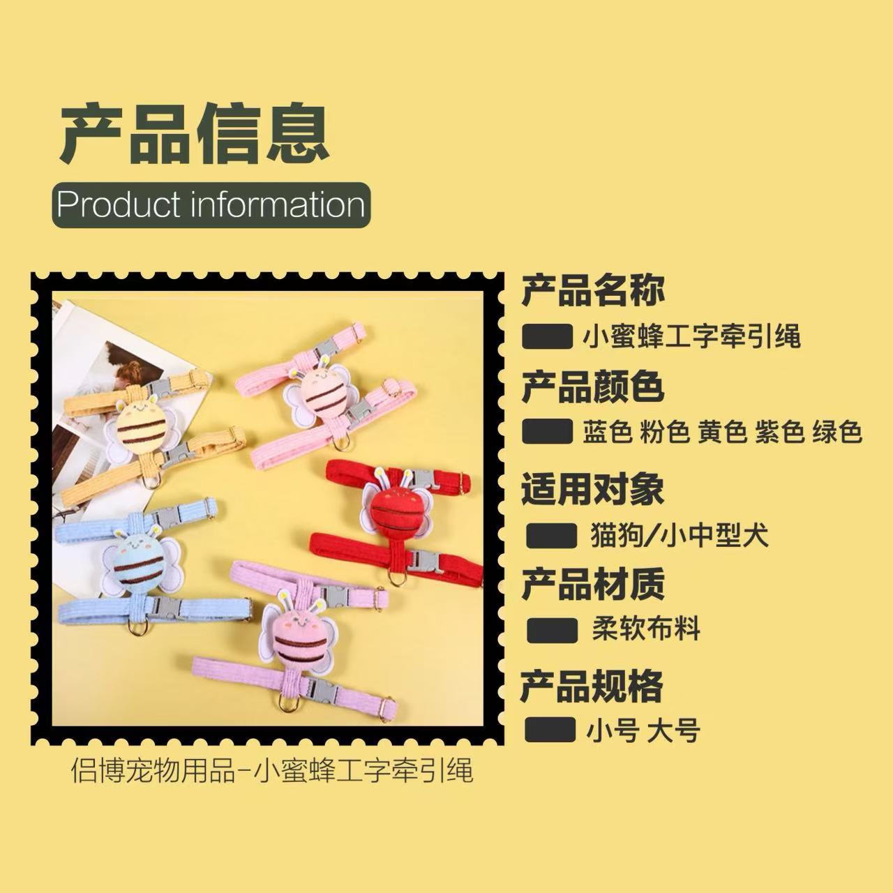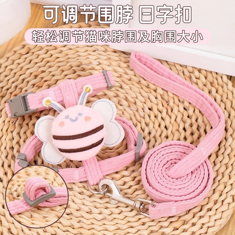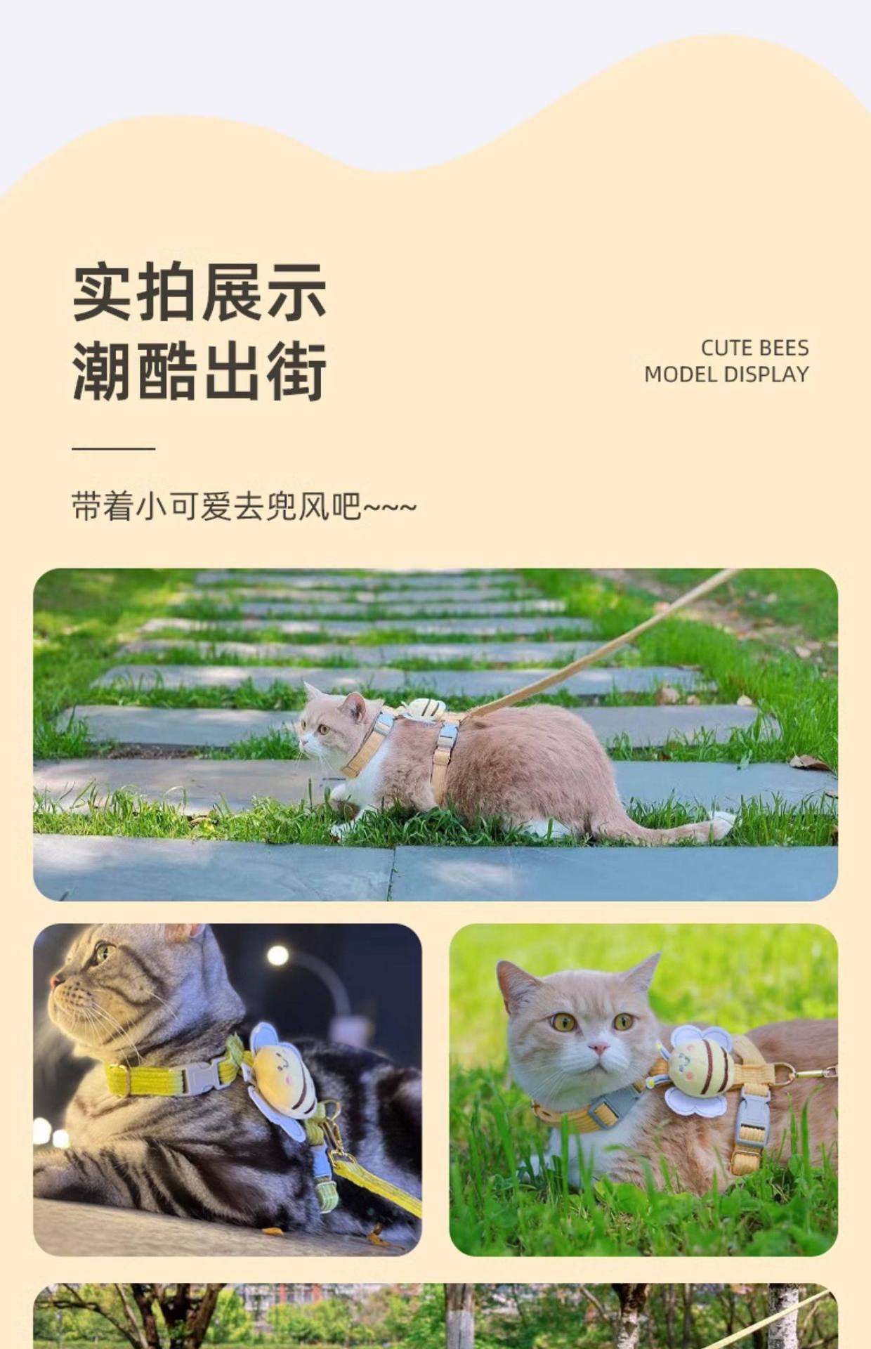 고양이 목줄 도매 I자형 애완동물 하네스 꿀벌 모양 조절 가능 소형견용 탈출 방지 개목줄스토어 가기