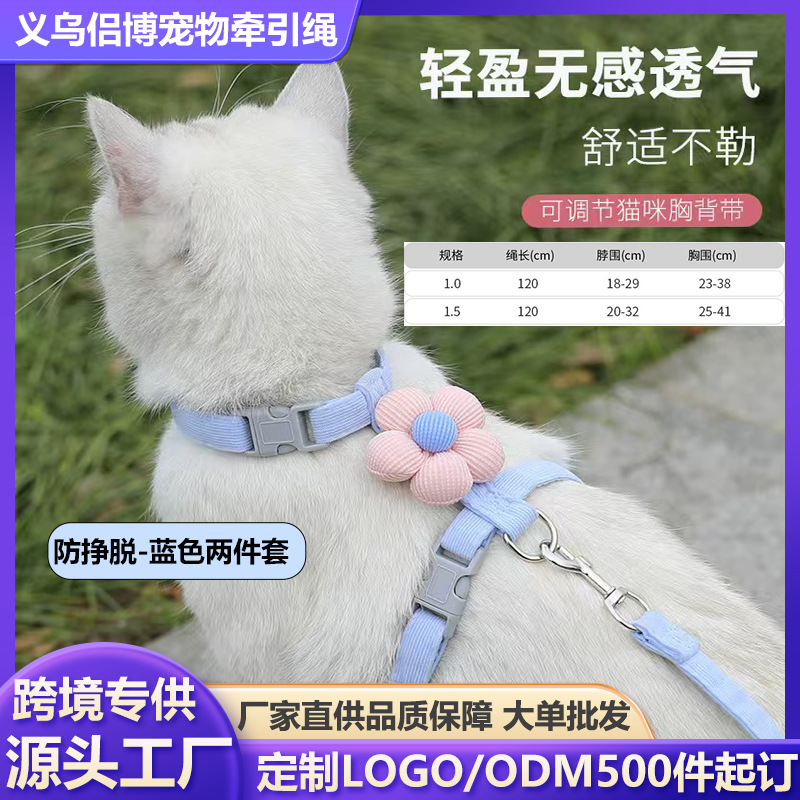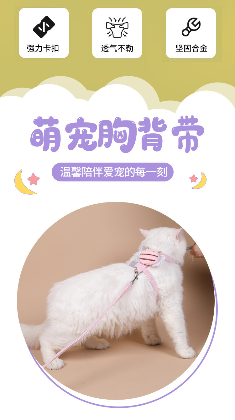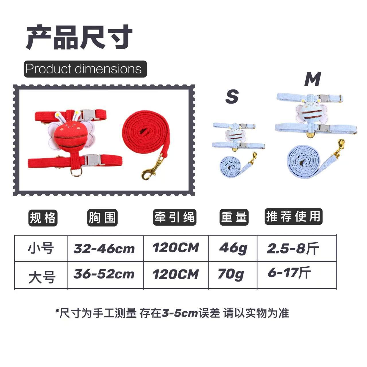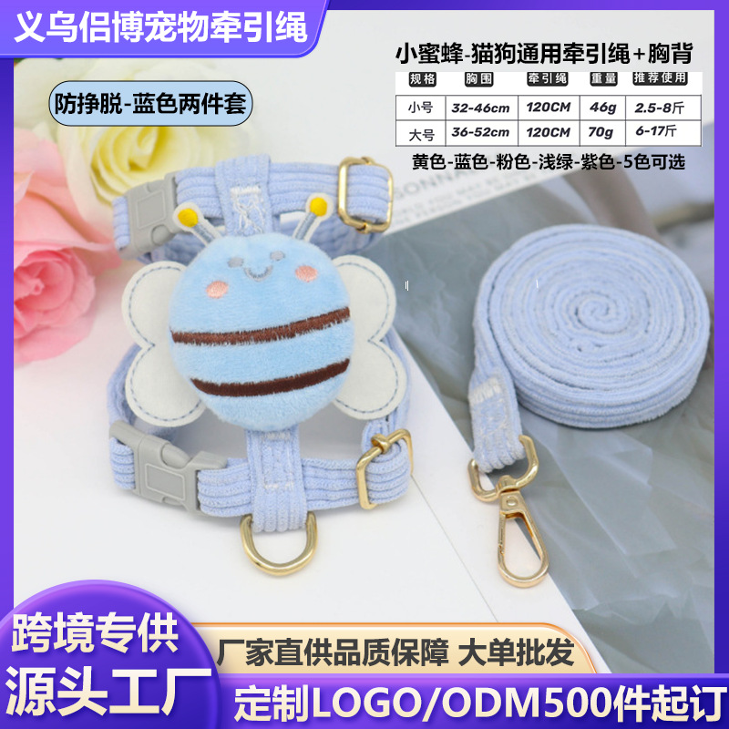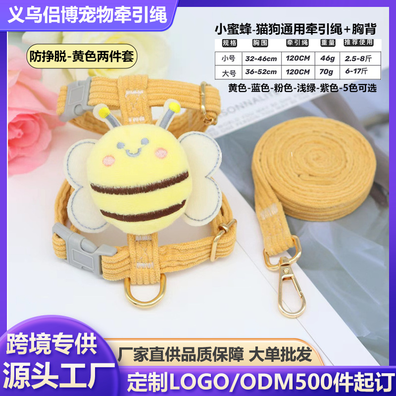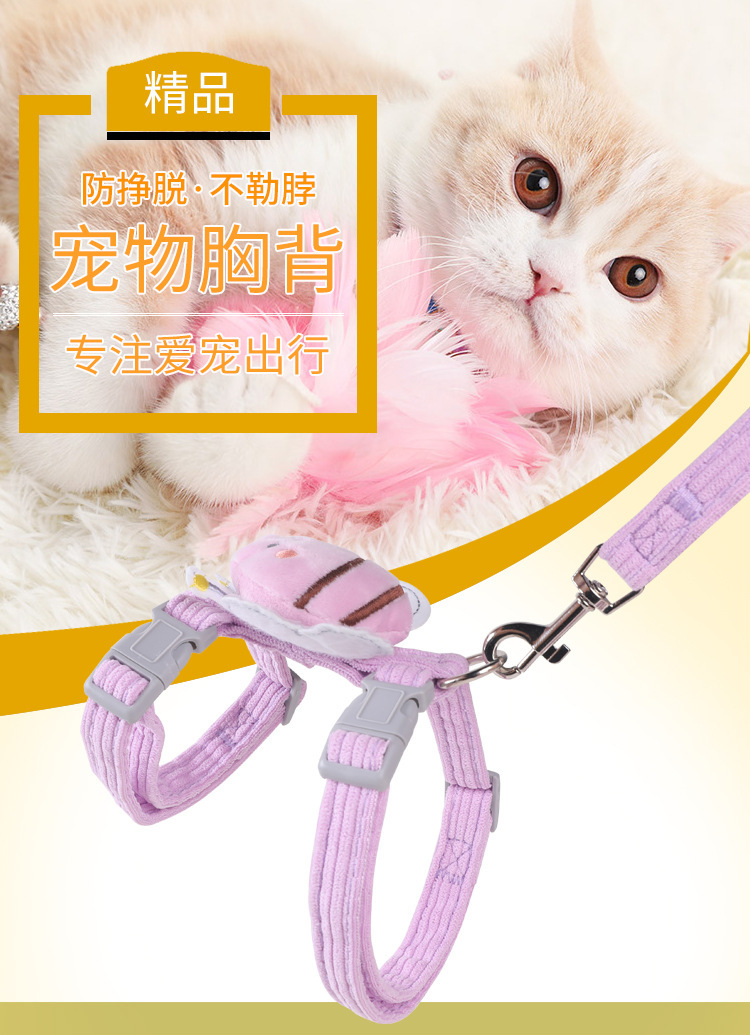 고양이 목줄 도매 I자형 애완동물 하네스 꿀벌 모양 조절 가능 소형견용 탈출 방지 개목줄스토어 가기