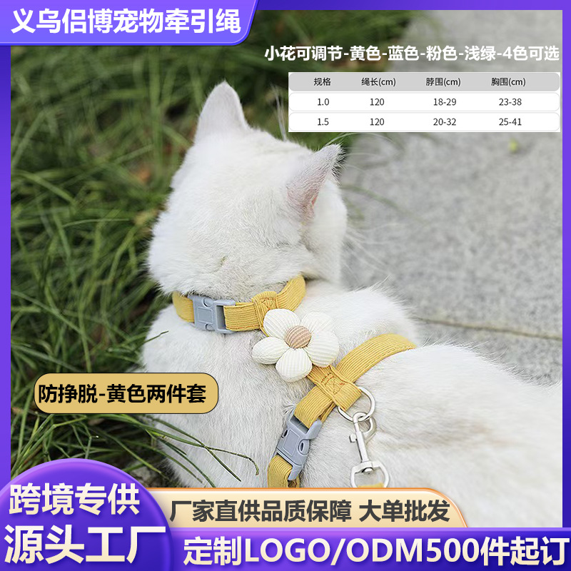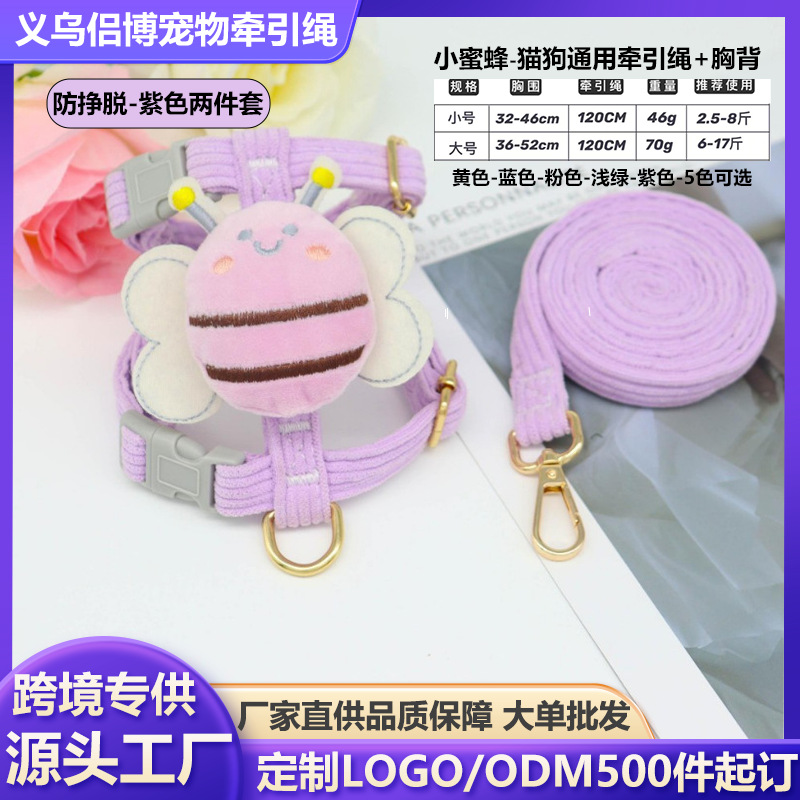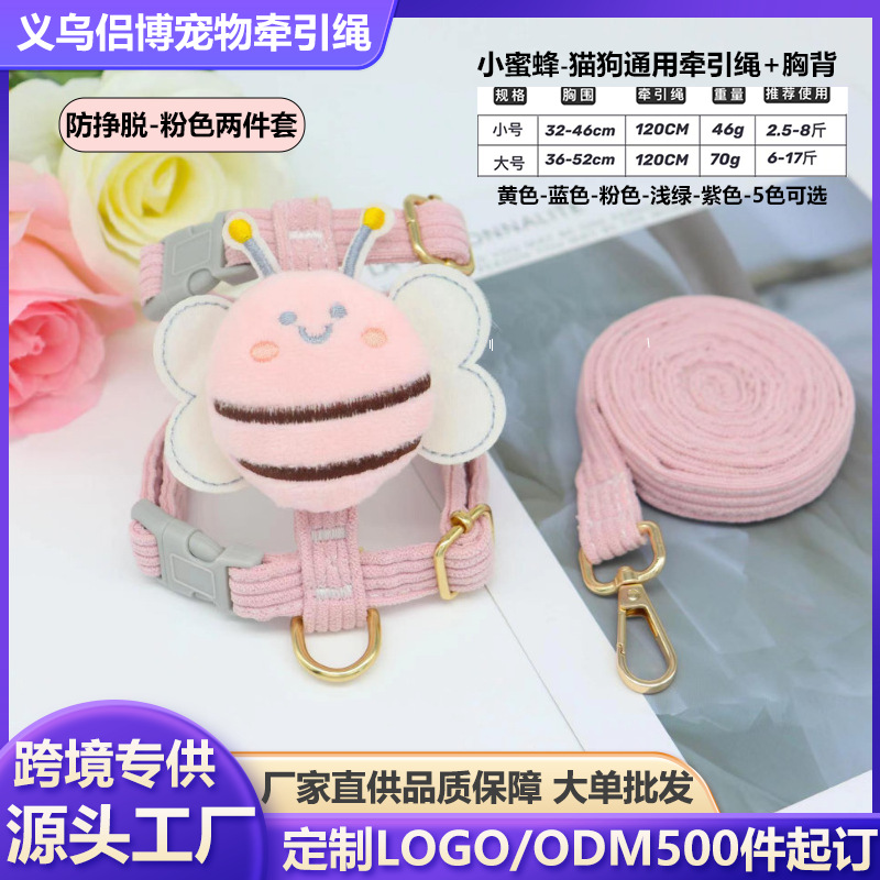 고양이 목줄 도매 I자형 애완동물 하네스 꿀벌 모양 조절 가능 소형견용 탈출 방지 개목줄