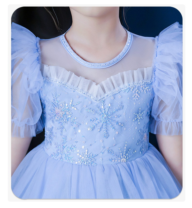여자 2025 여름 새로운 엘사 공주 드레스 새로운 어린이 겨울왕국 빛나는 드레스 아동 의류 스커트