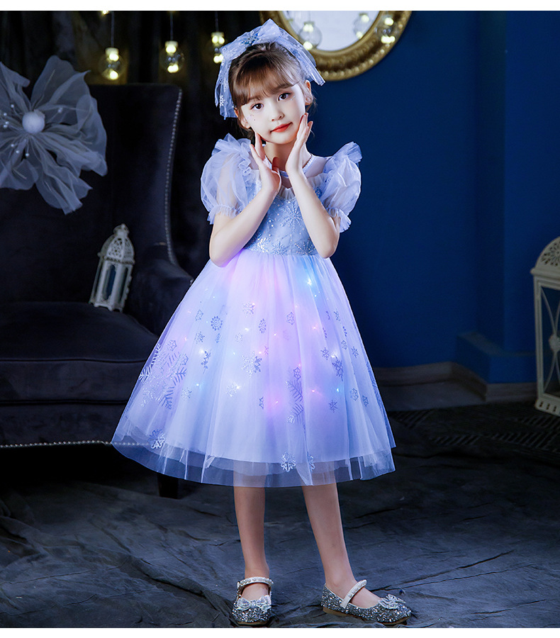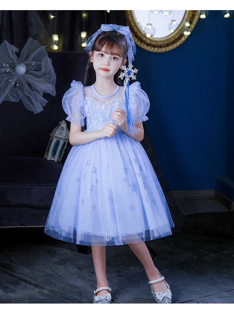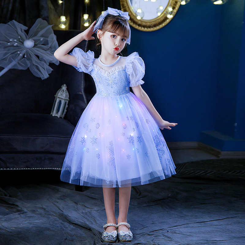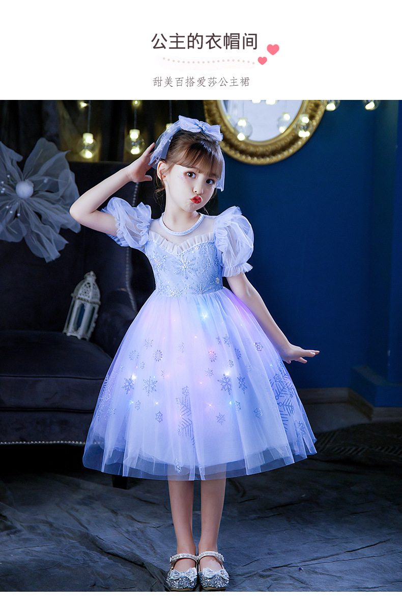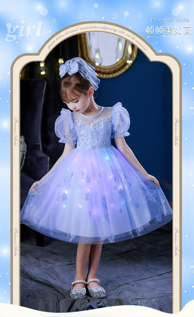 여자 2025 여름 새로운 엘사 공주 드레스 새로운 어린이 겨울왕국 빛나는 드레스 아동 의류 스커트스토어 가기