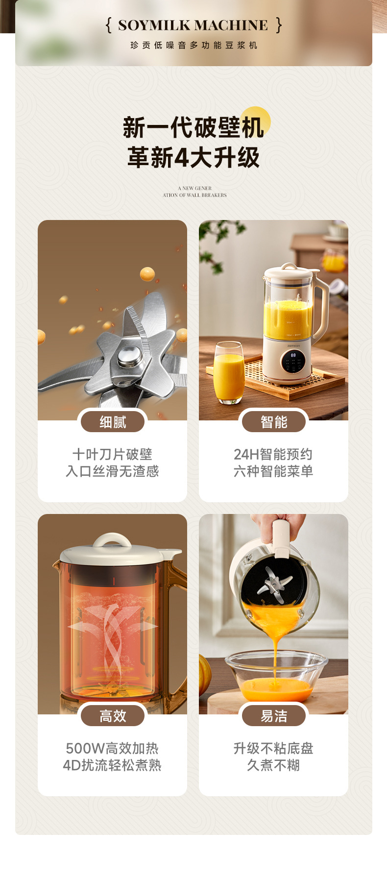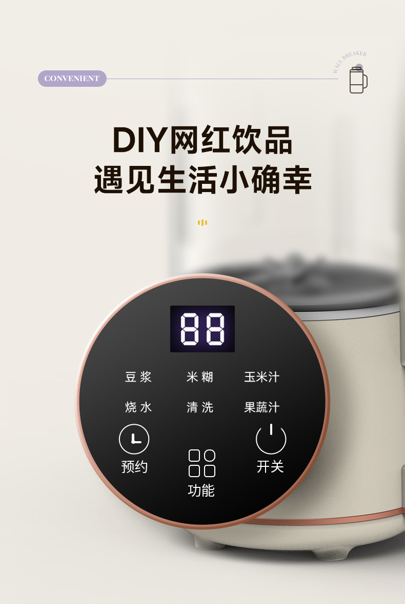 정공 두유 기계 완전 자동 소형 가정용 다기능 식품 보조 조리기 음소거 필터 프리 미니 벽 깨기 기계