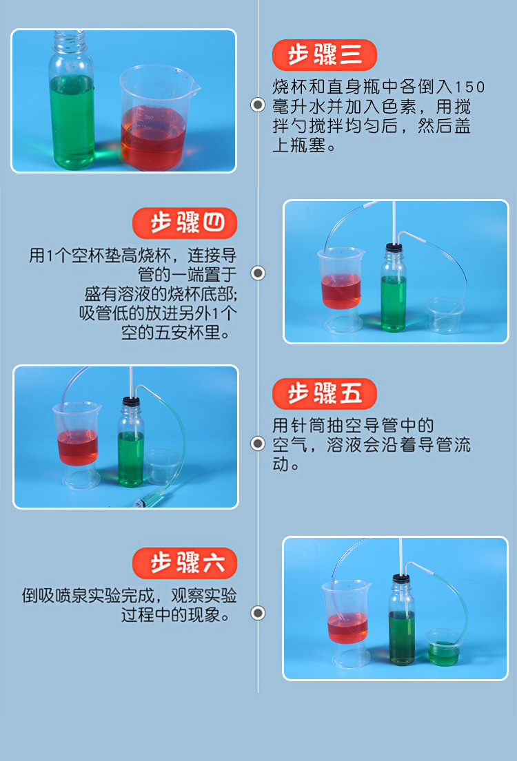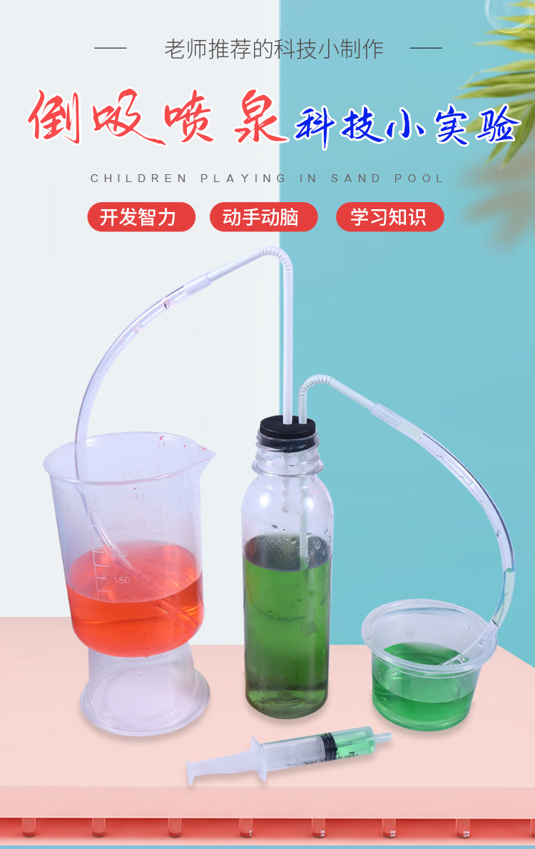 분수와 사이펀 어린이 과학 및 기술 작은 만들기 수제 DIY 교육 보조 과학 및 물리 실험 역 흡입 분수 현상