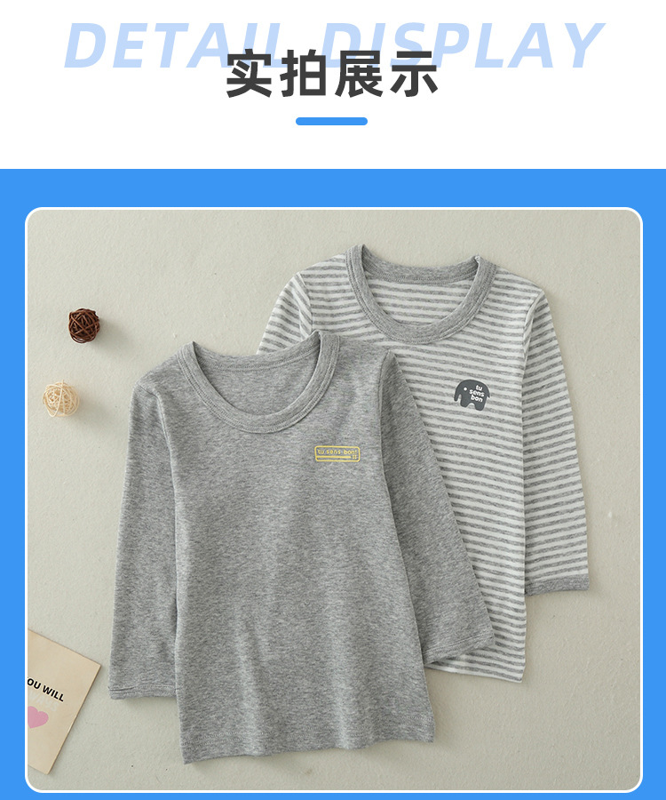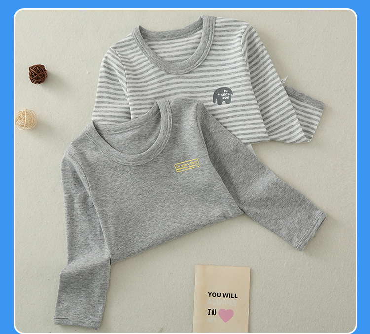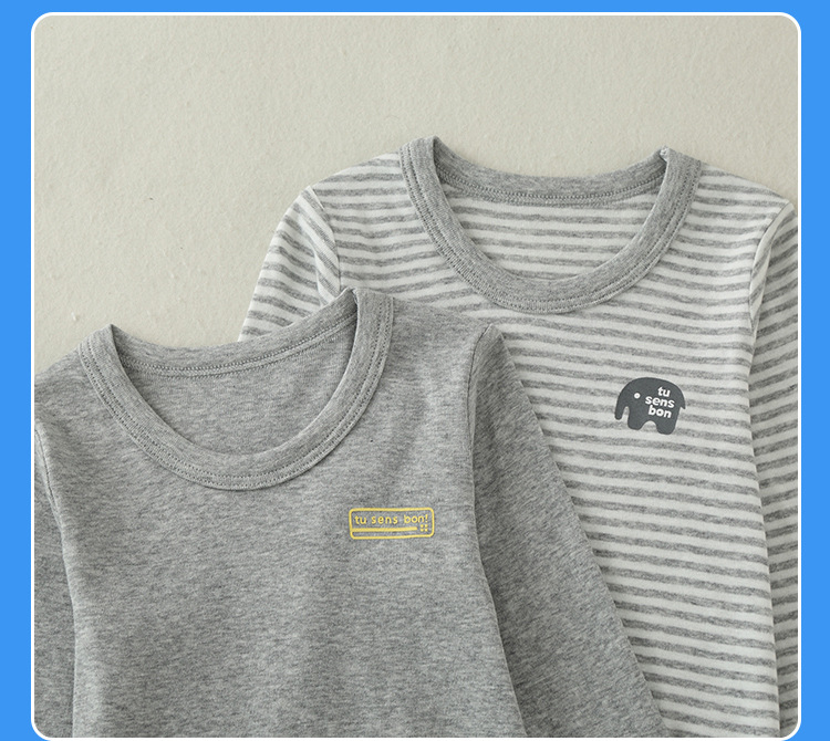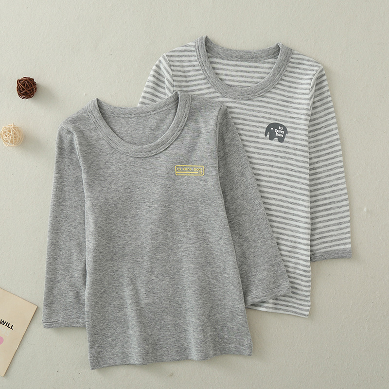 아기의 면 긴 소매 티셔츠 남아 캐주얼 라운드 넥 탑 일본 얇은 단색 어린이 베이스 셔츠 2 팩스토어 가기