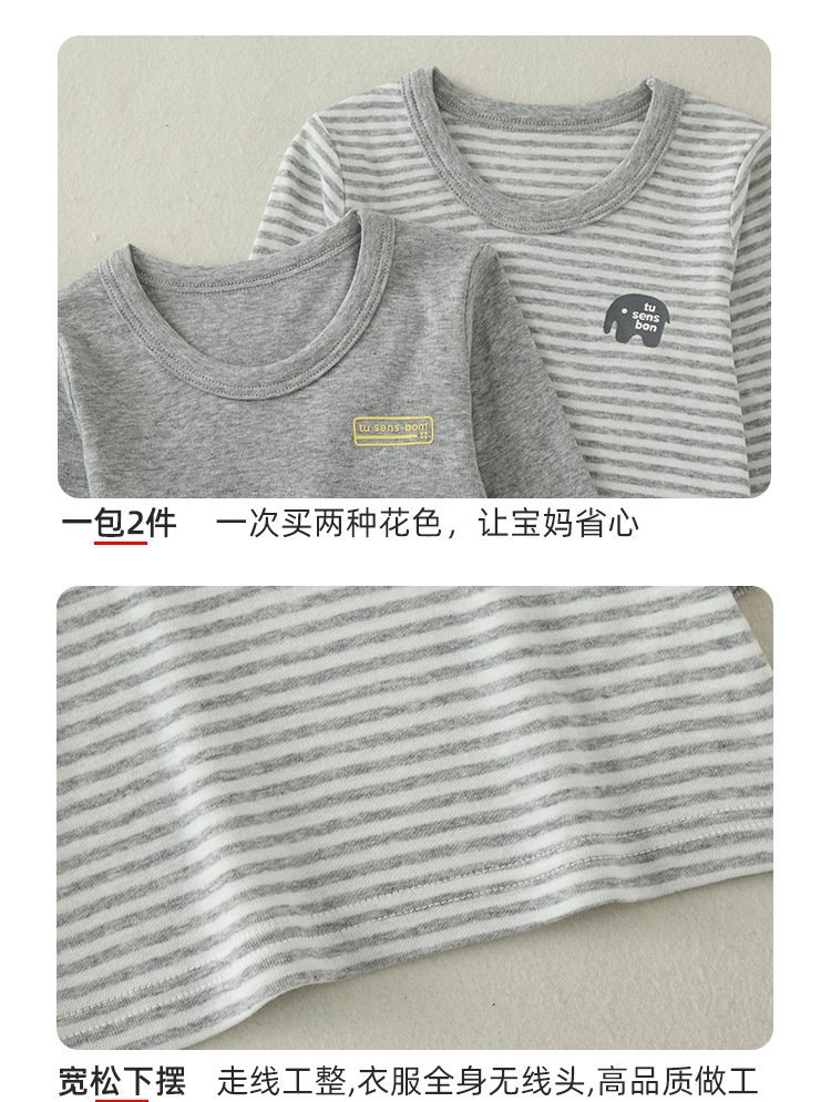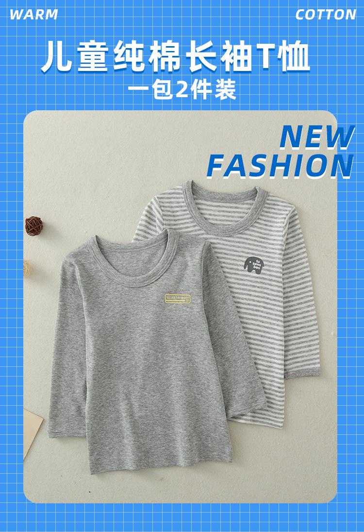 아기의 면 긴 소매 티셔츠 남아 캐주얼 라운드 넥 탑 일본 얇은 단색 어린이 베이스 셔츠 2 팩