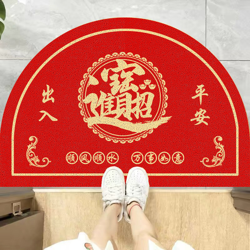 실크 링 플로어 매트 골든 부, 보물 출입 도어 매트 반원형 미끄럼 방지 도어 매트 문턱 문양 토양 및 스크래핑 머드 매트 초대