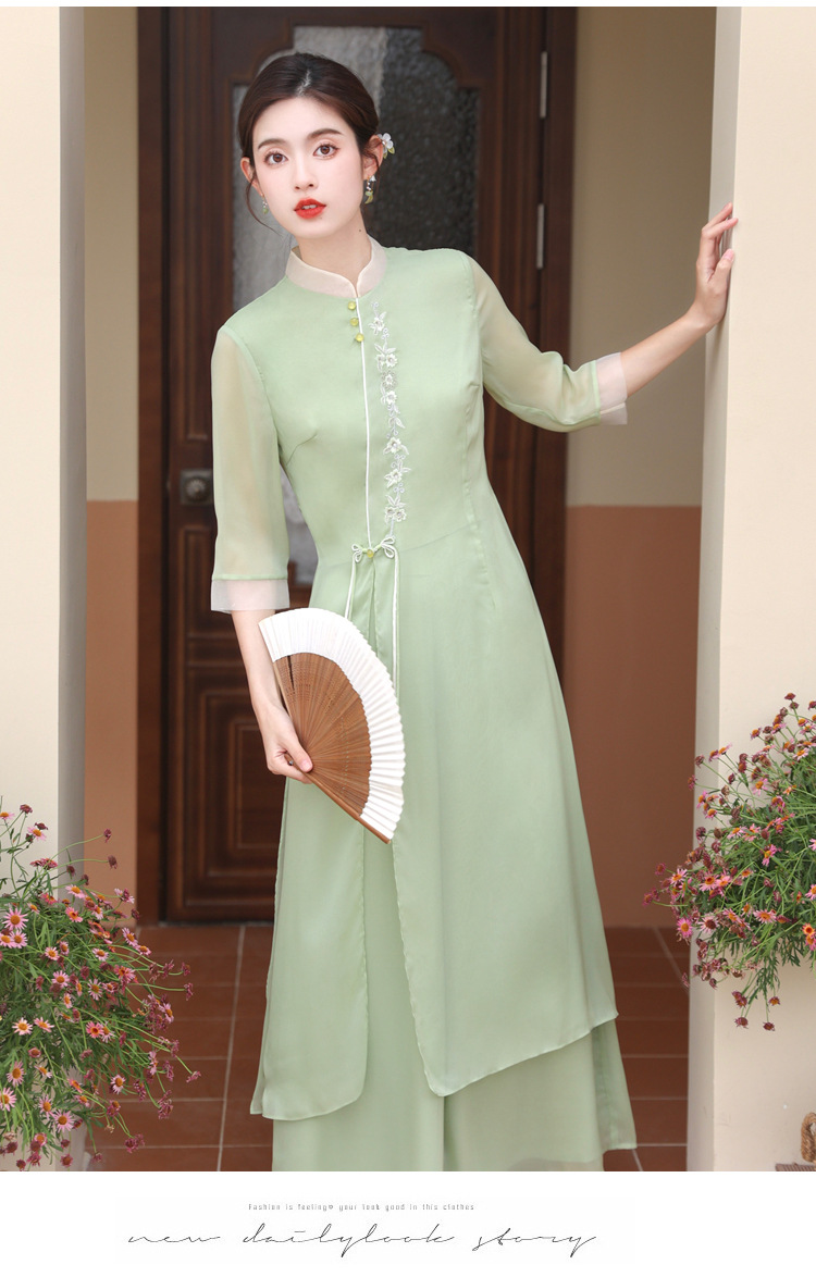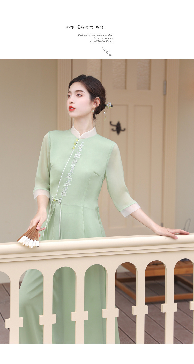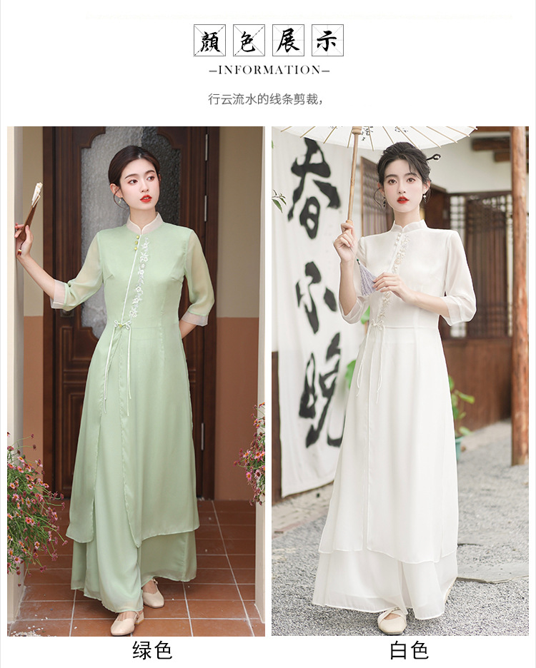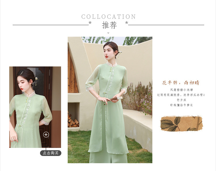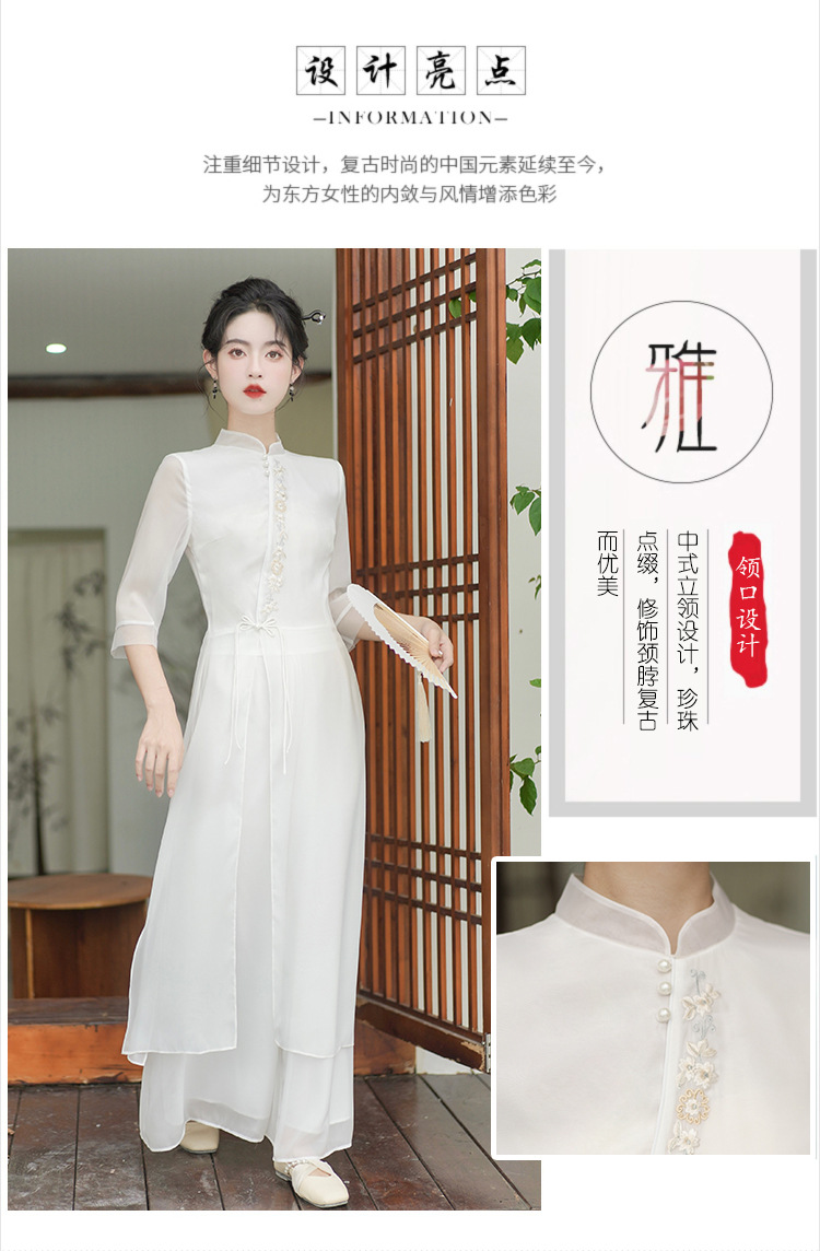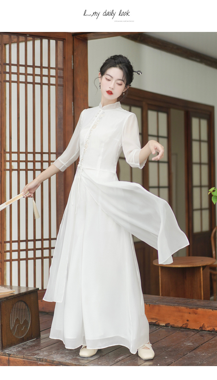 2023 여름 복고풍 새로운 중국 스타일 개선 치파오 빛 소녀의 차 세트 단색 7 점 슬리브 원피스 세트스토어 가기
