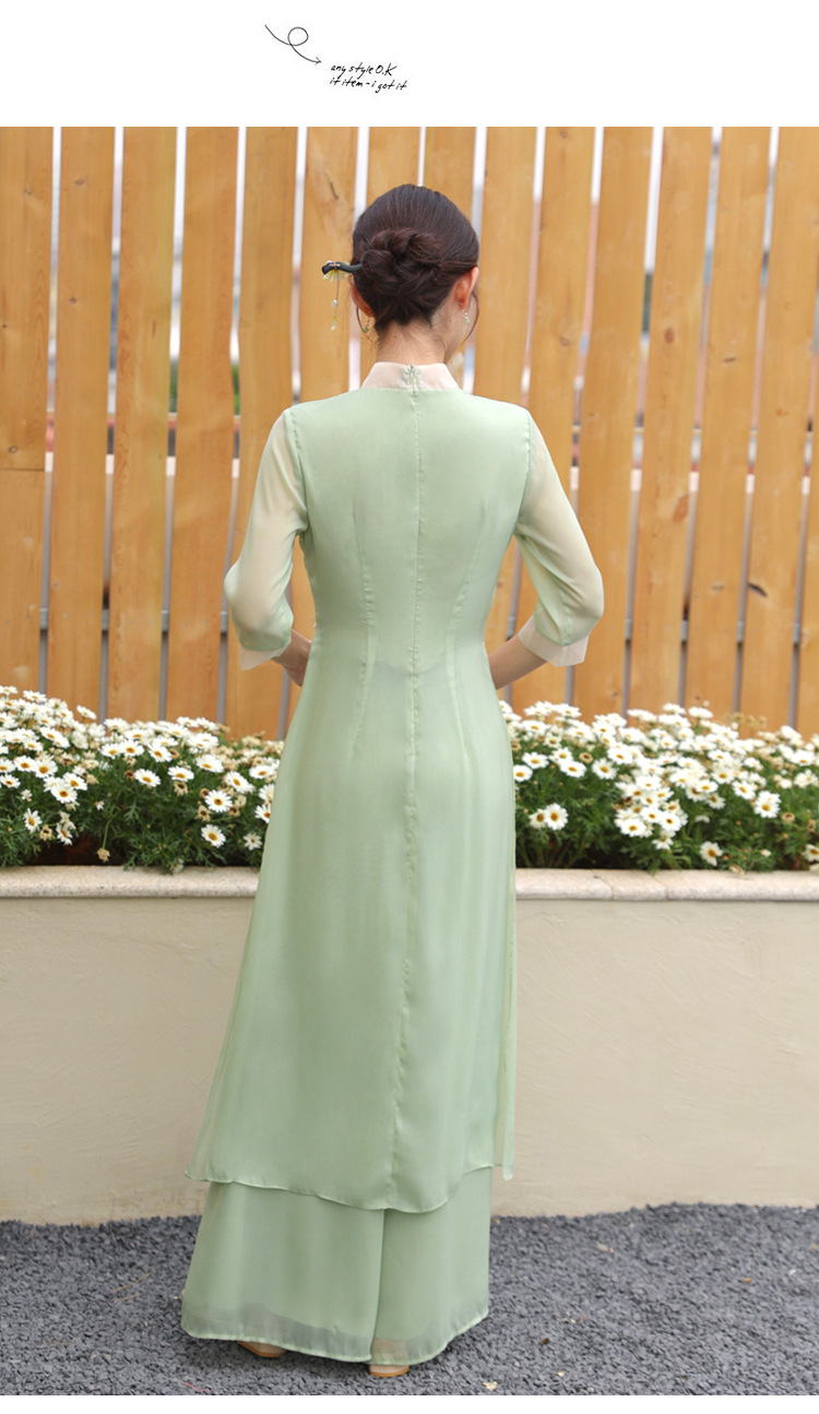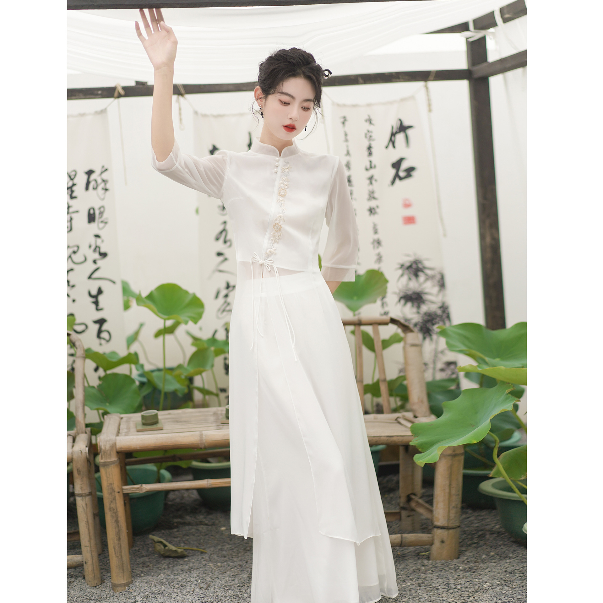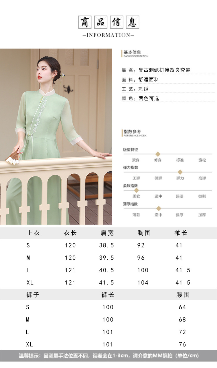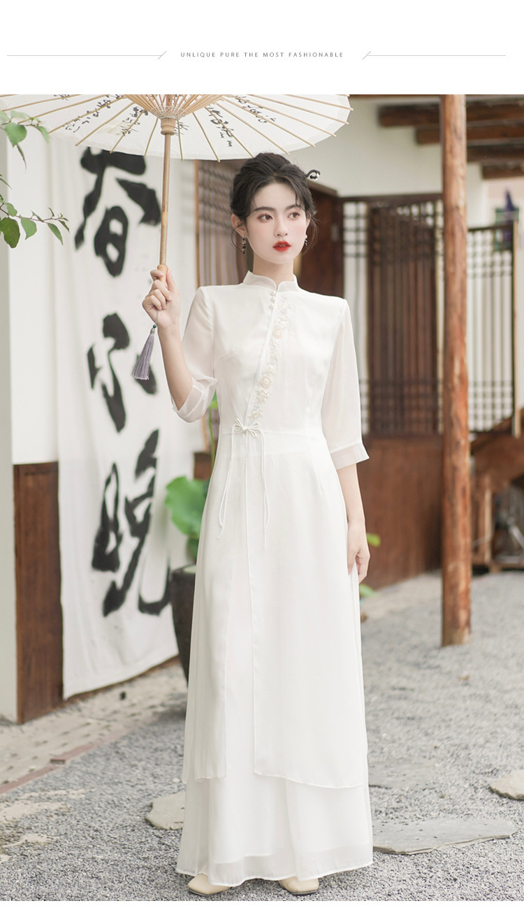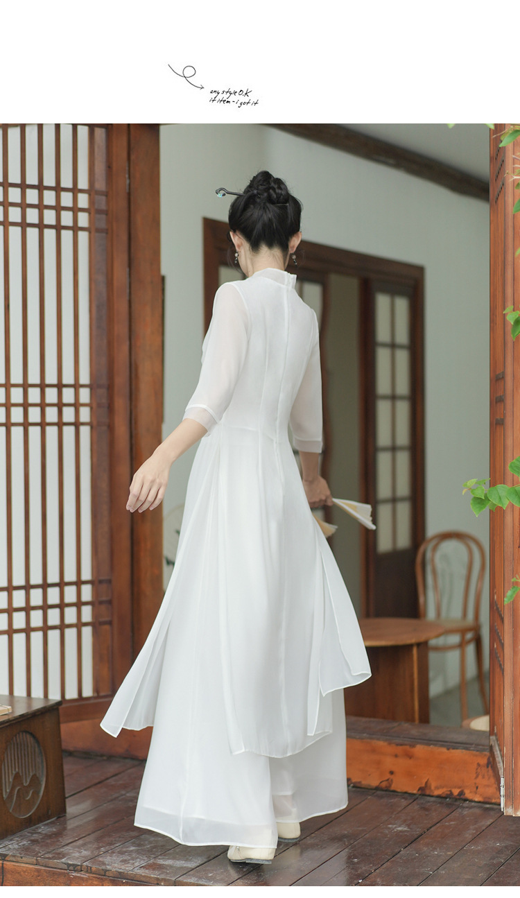 2023 여름 복고풍 새로운 중국 스타일 개선 치파오 빛 소녀의 차 세트 단색 7 점 슬리브 원피스 세트스토어 가기