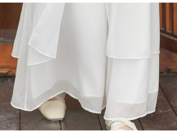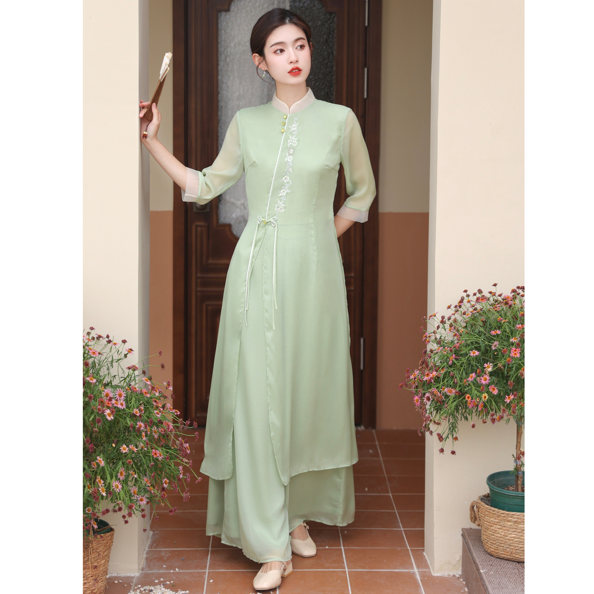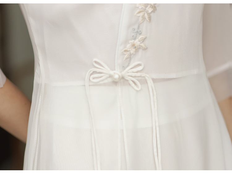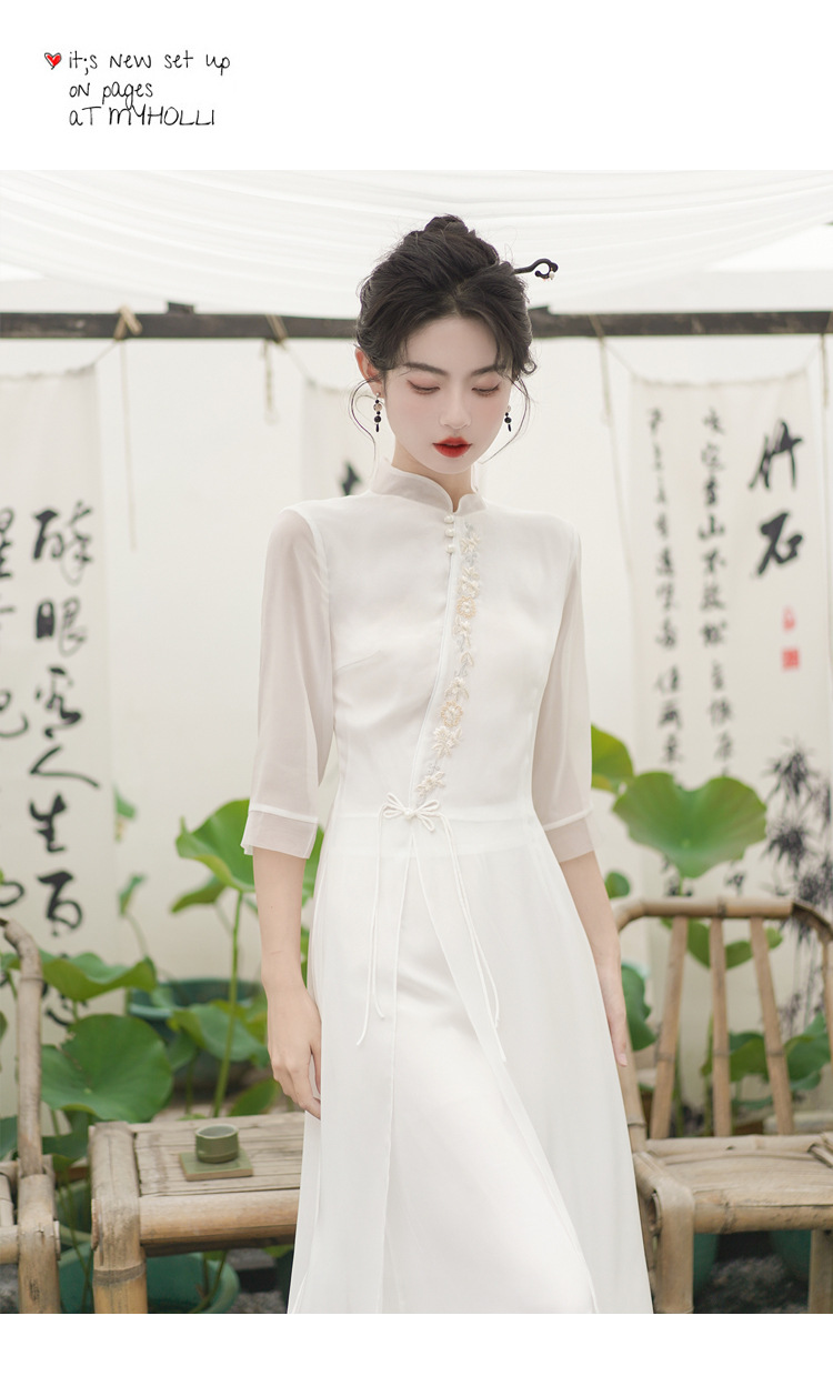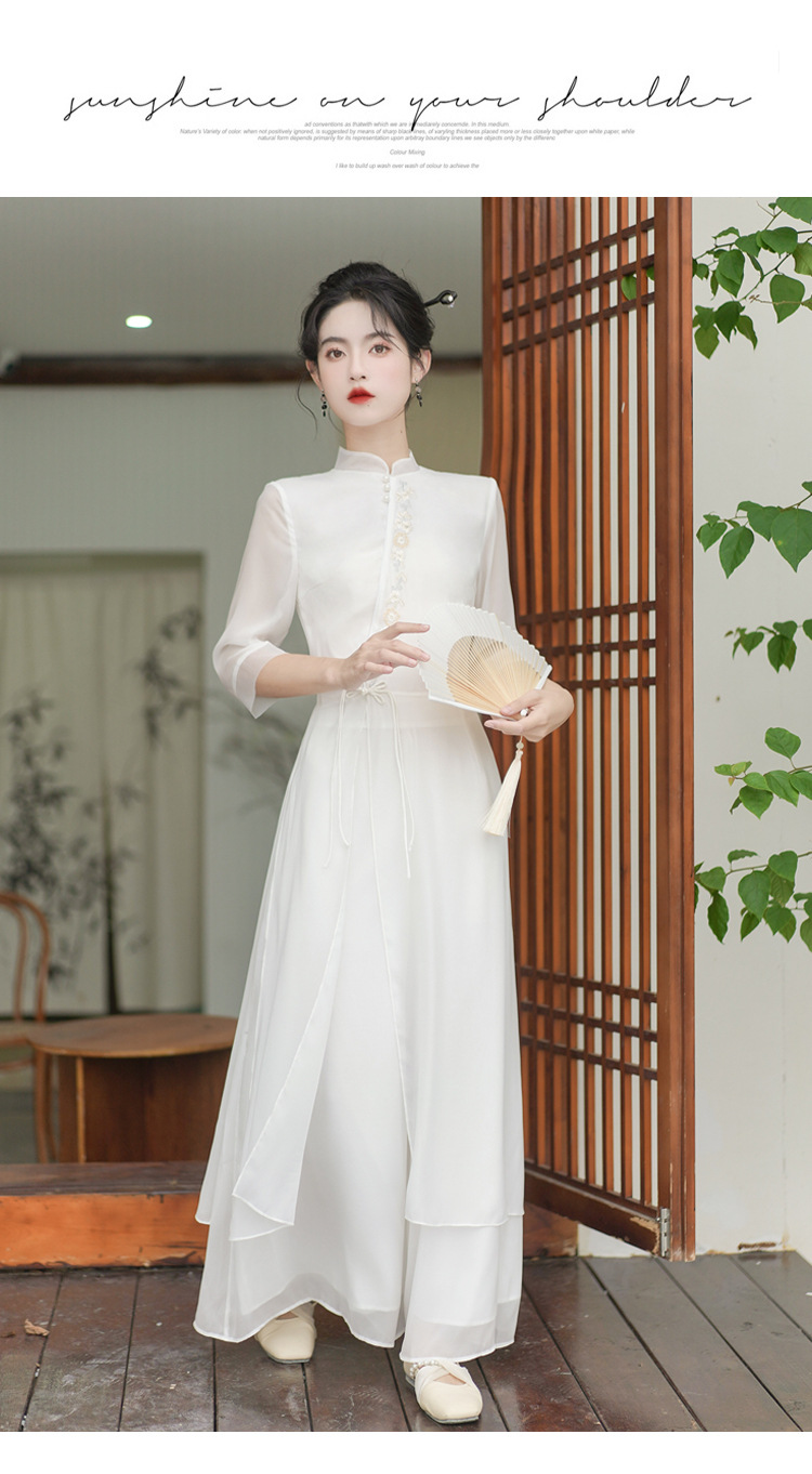 2023 여름 복고풍 새로운 중국 스타일 개선 치파오 빛 소녀의 차 세트 단색 7 점 슬리브 원피스 세트