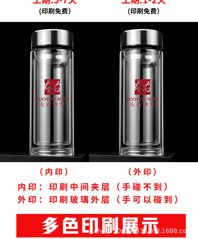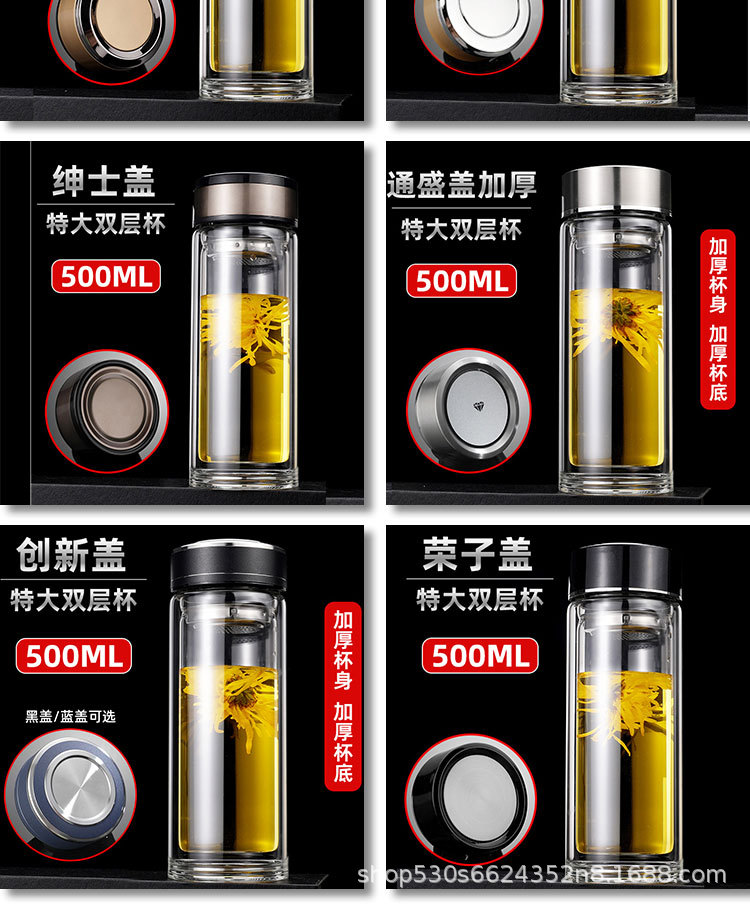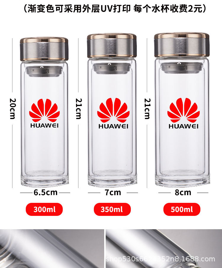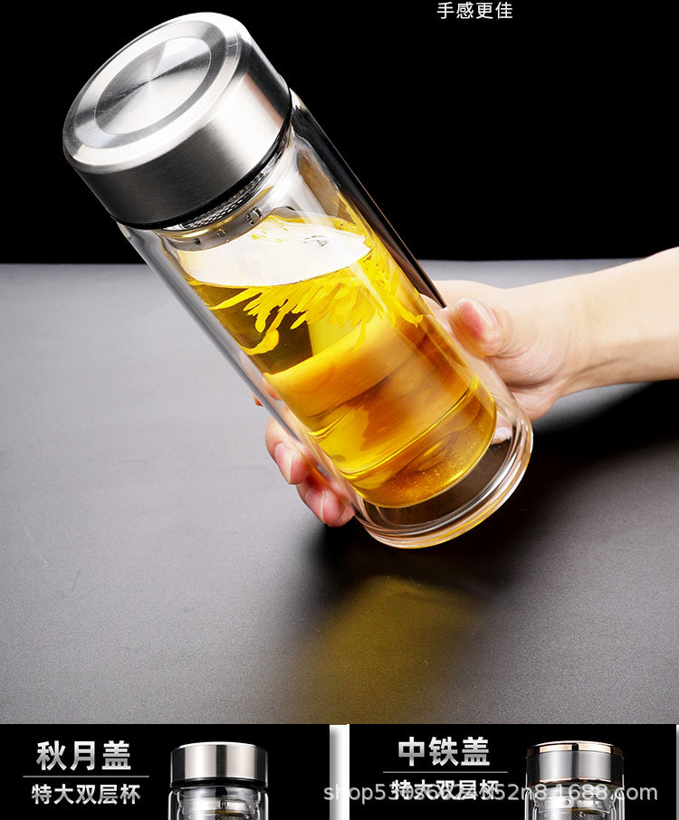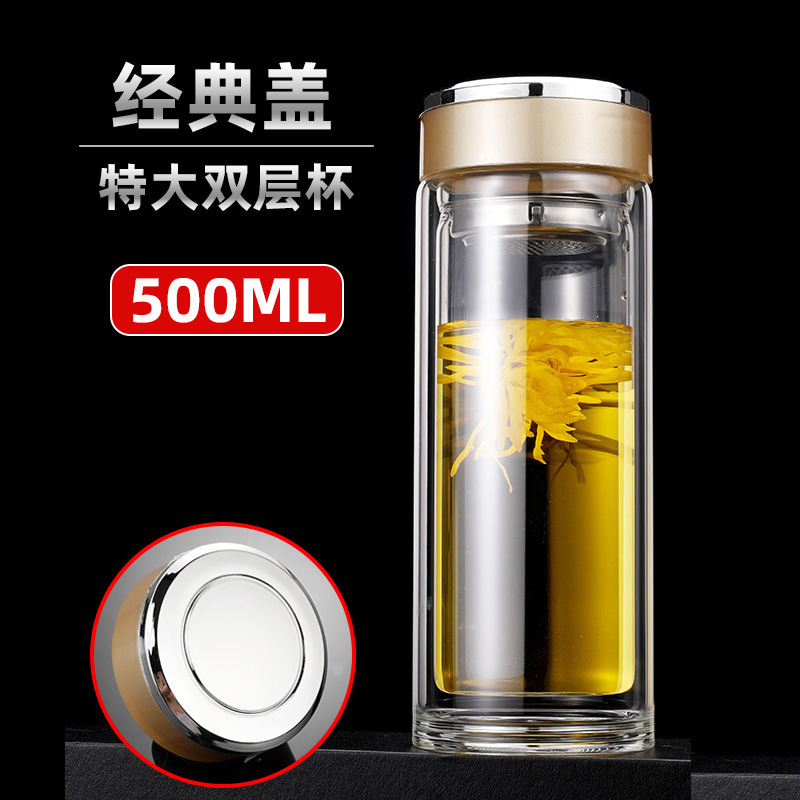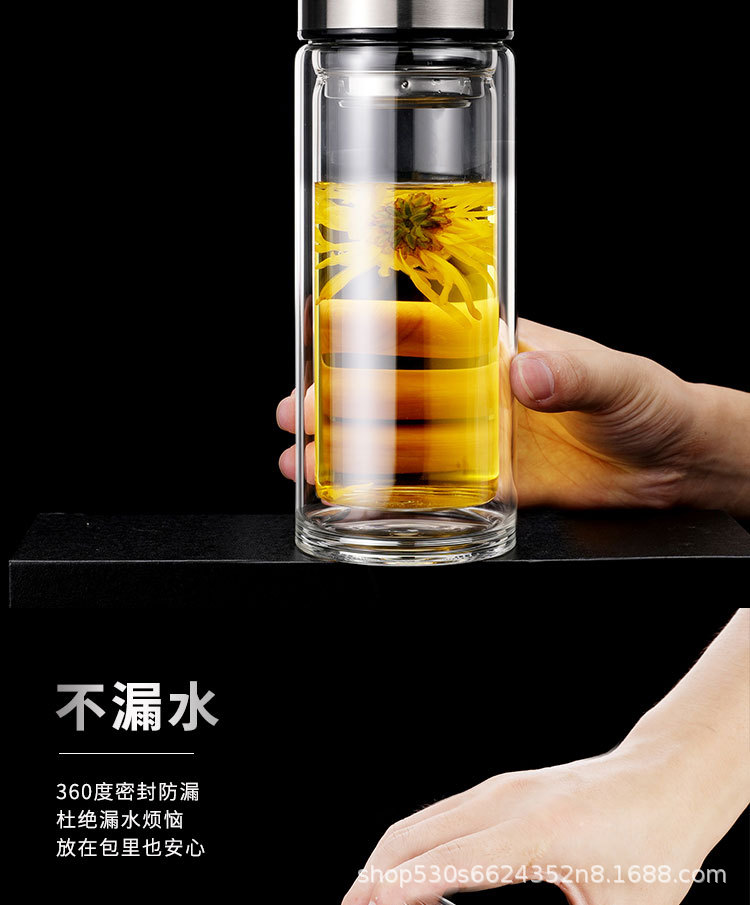 맞춤형 더블 레이어 차 분리 유리 광고 로고 레터링 고온 저항 오피스 컵 가정용 선물 컵 재고스토어 가기