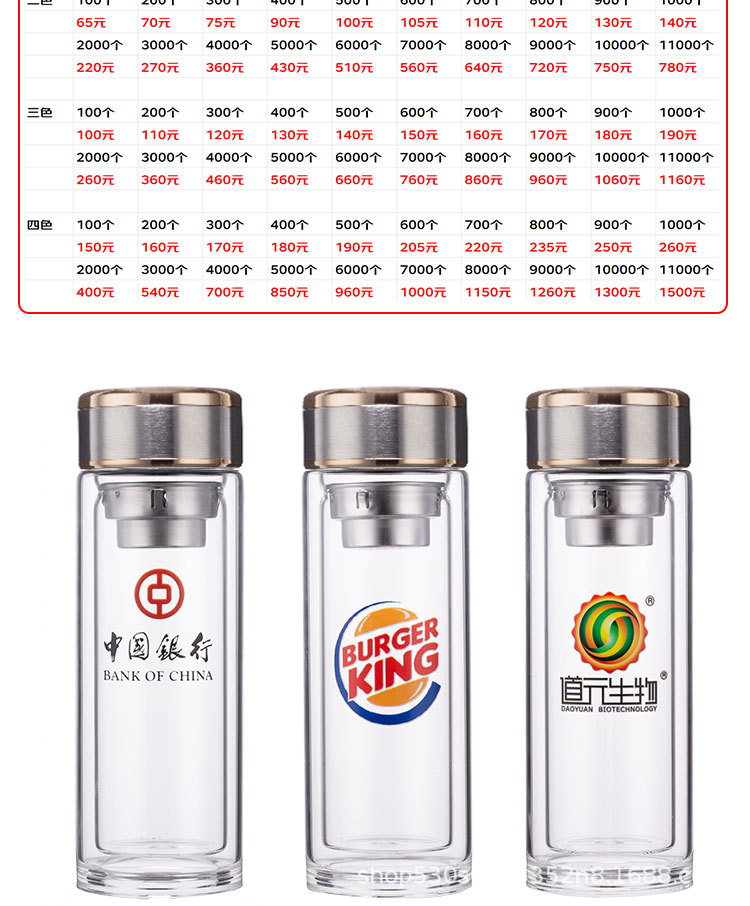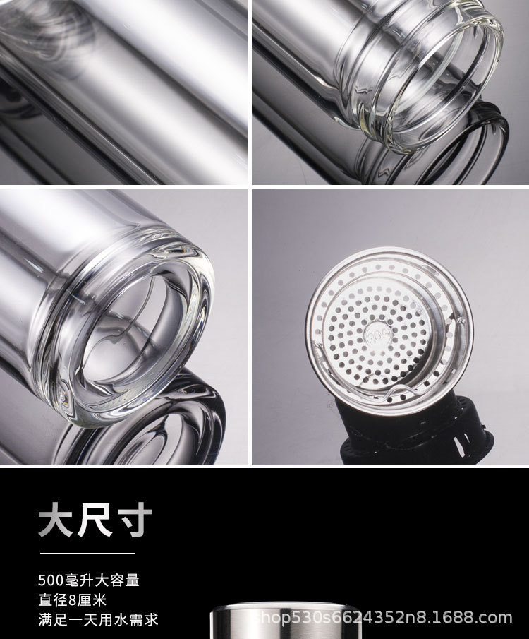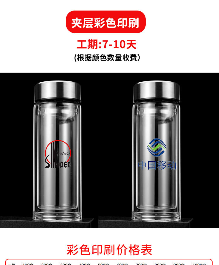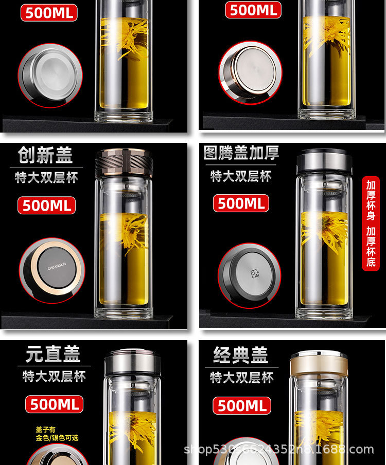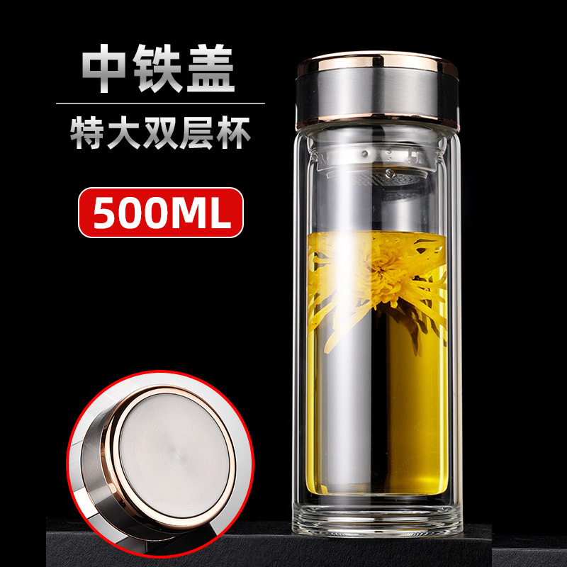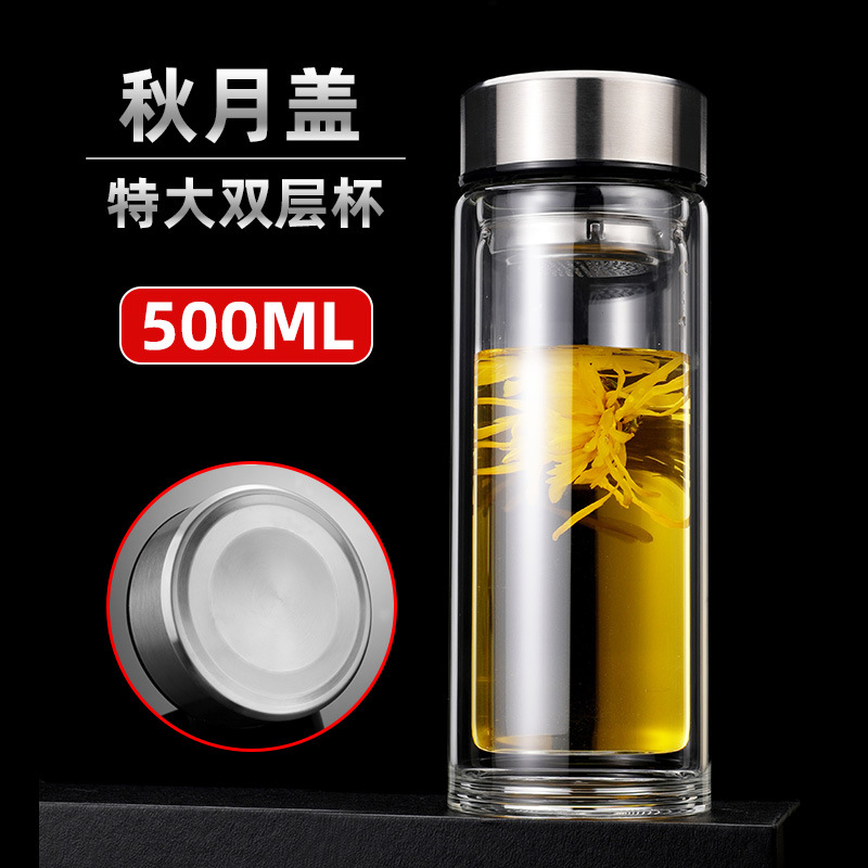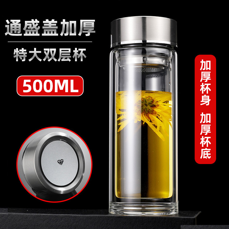 맞춤형 더블 레이어 차 분리 유리 광고 로고 레터링 고온 저항 오피스 컵 가정용 선물 컵 재고스토어 가기