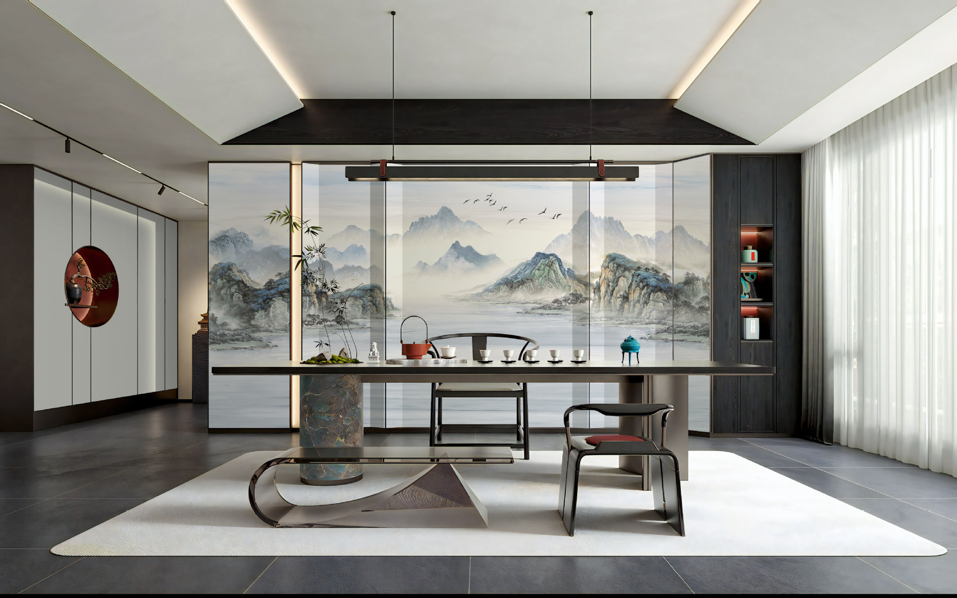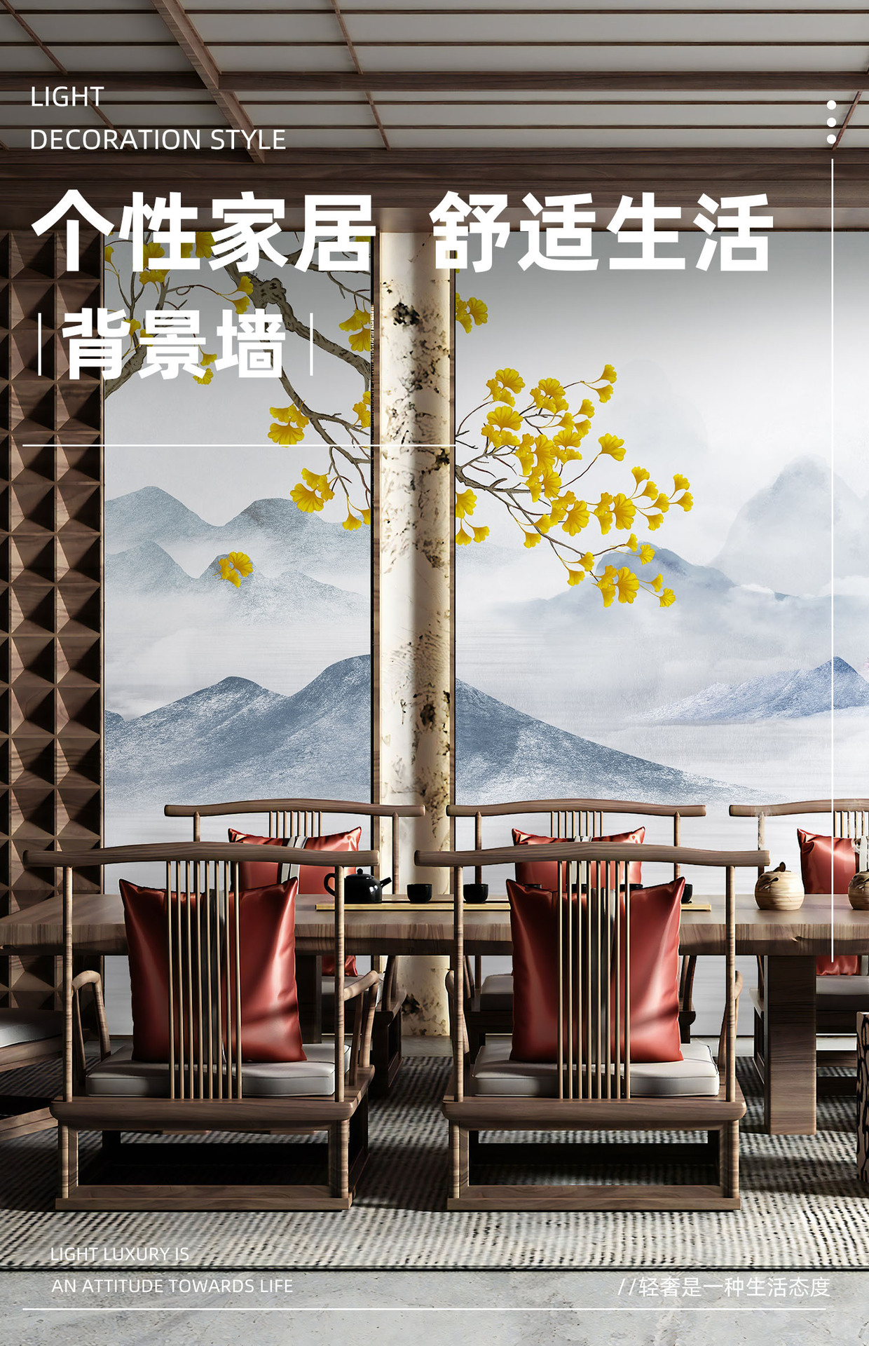 壁布现代简约 酒店专用墙布 山水画墙布 背景墙画山水