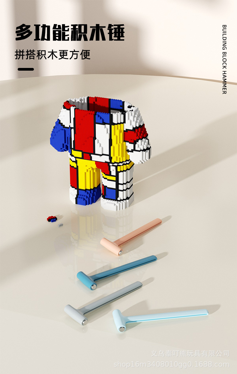 빌딩 블록 망치 금속 머리 작은 망치 조립 연결 레고와 호환 가능한 블록 조립 보조 도구 호두 망치