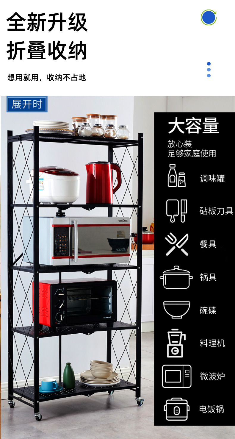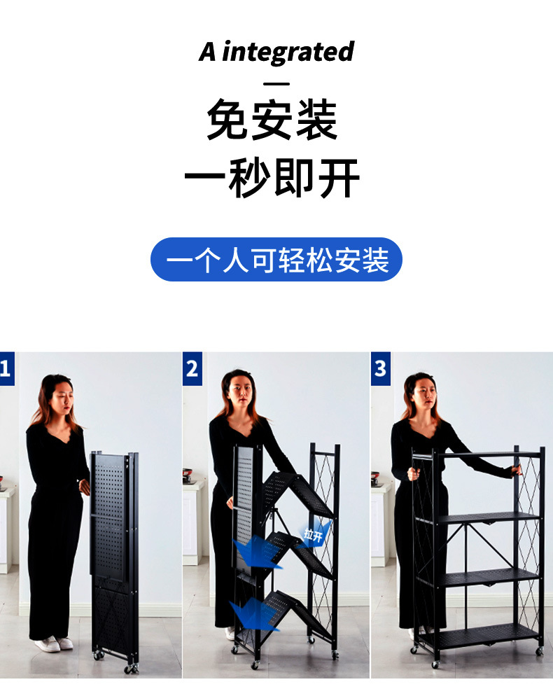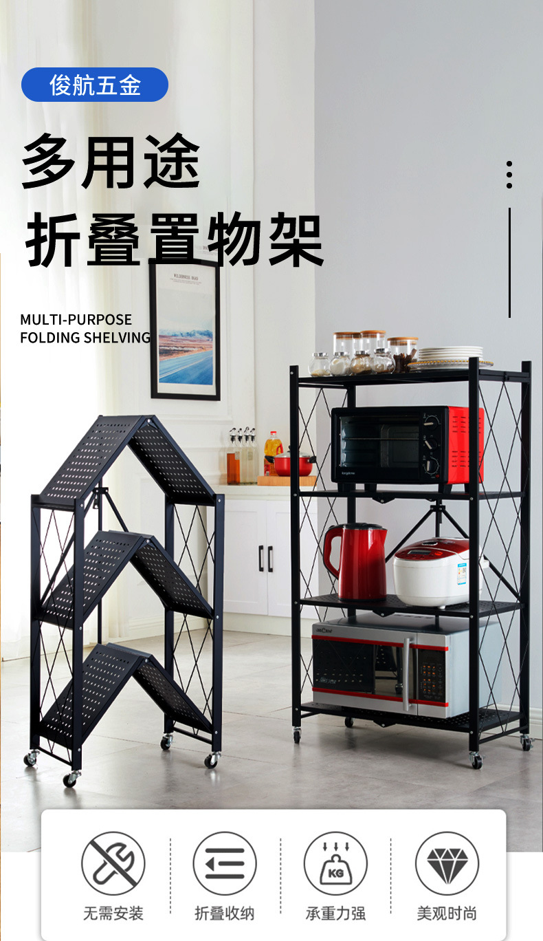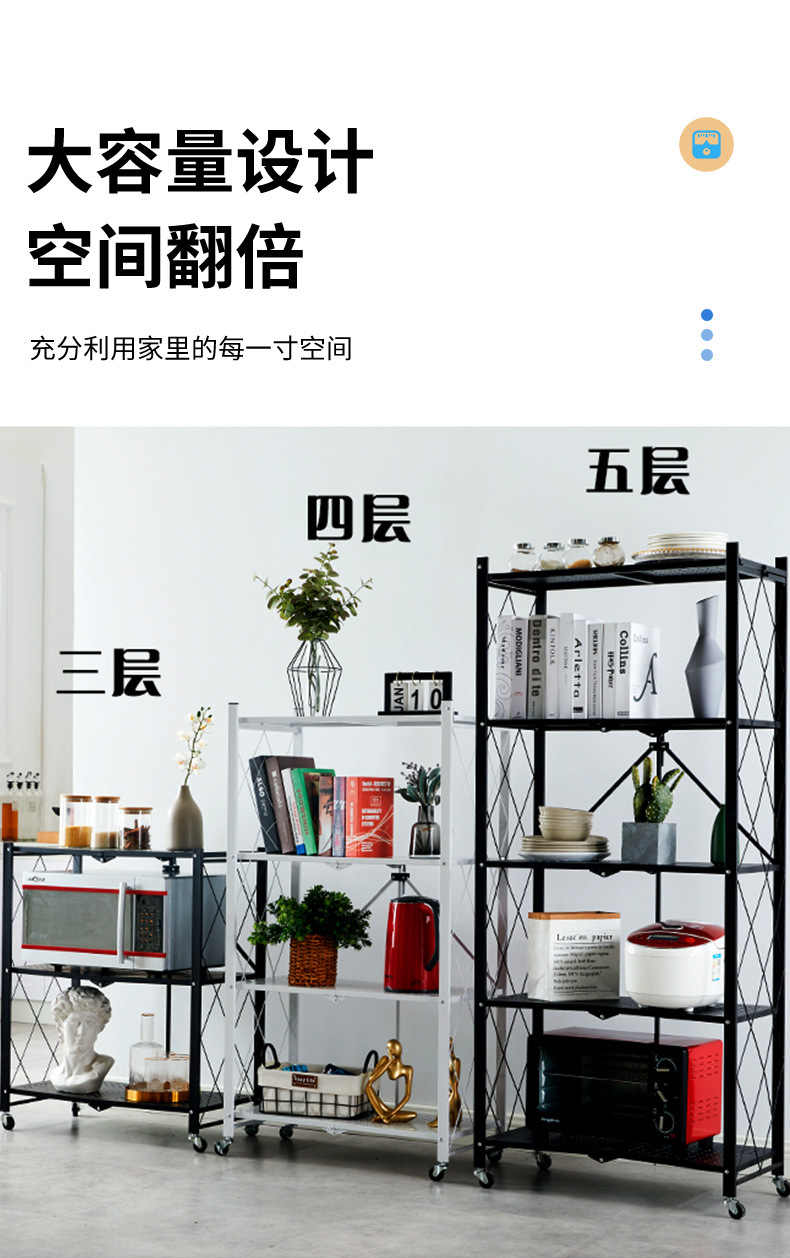 홈 스토리지 설치 랙 프리 다층 주방 대형 접이식 바닥 스탠딩 이동식 스토리지 랙 (거실 용 바퀴 포함)