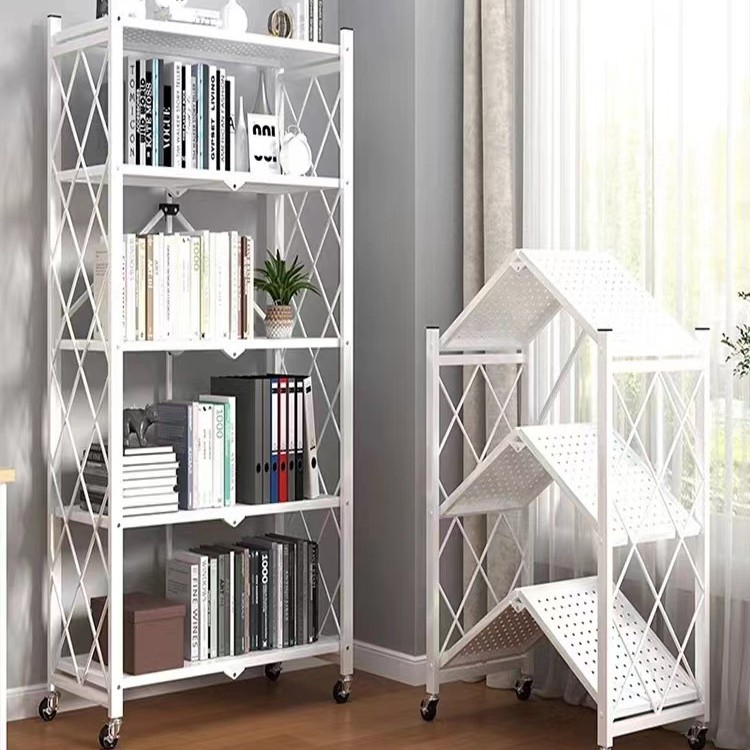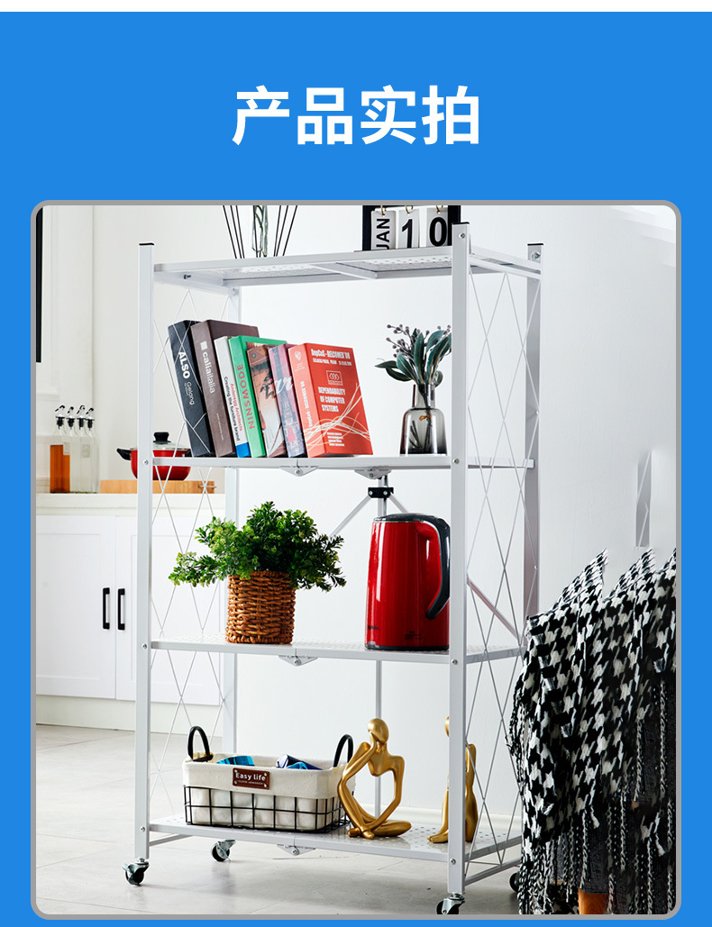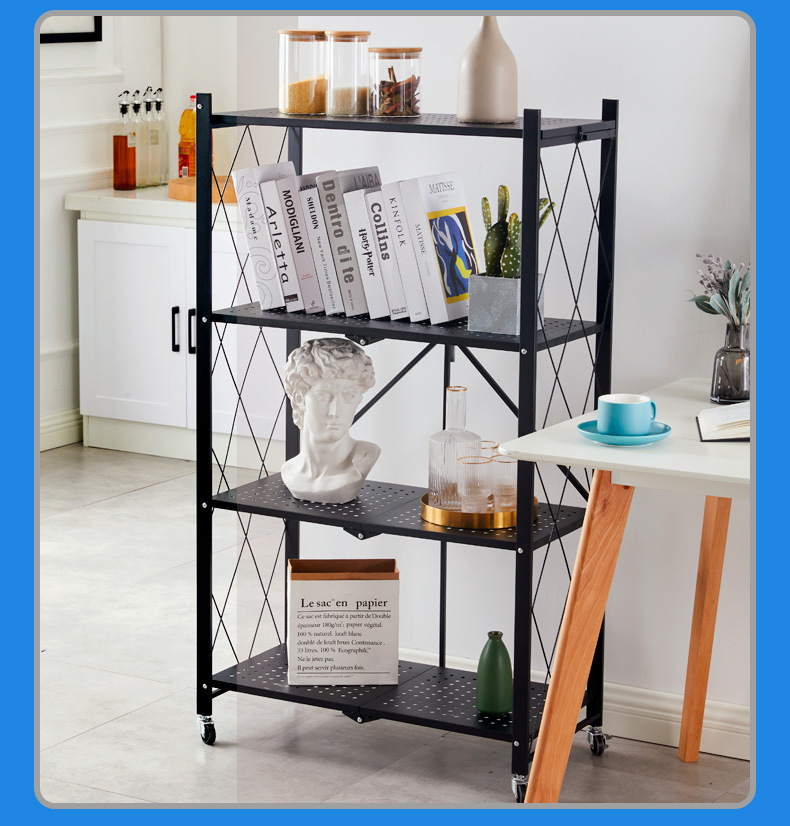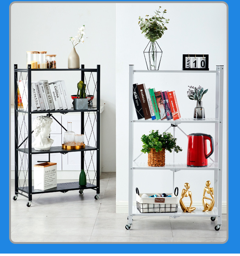홈 스토리지 설치 랙 프리 다층 주방 대형 접이식 바닥 스탠딩 이동식 스토리지 랙 (거실 용 바퀴 포함)스토어 가기