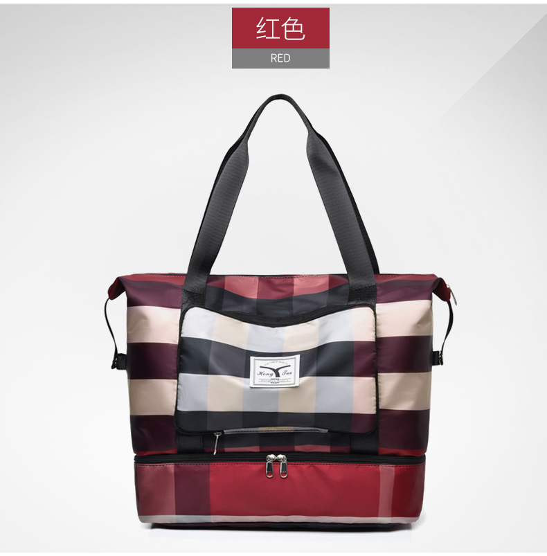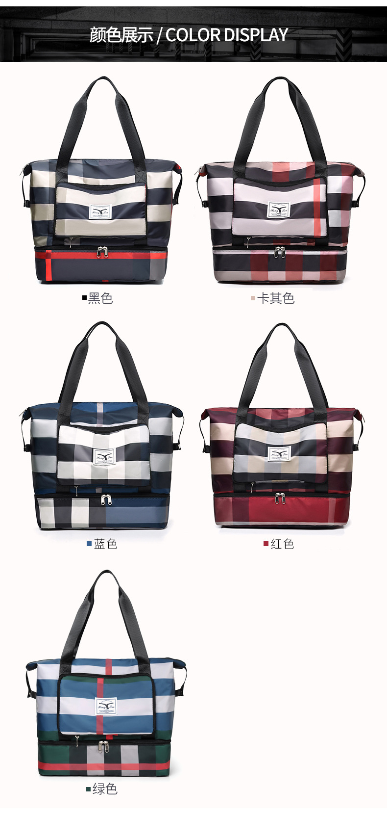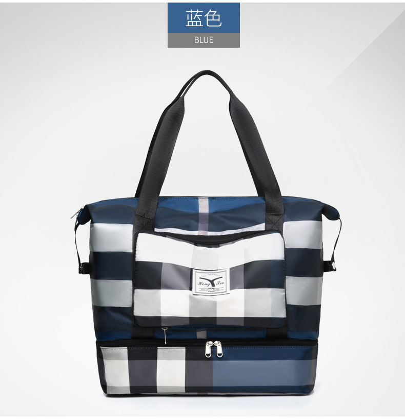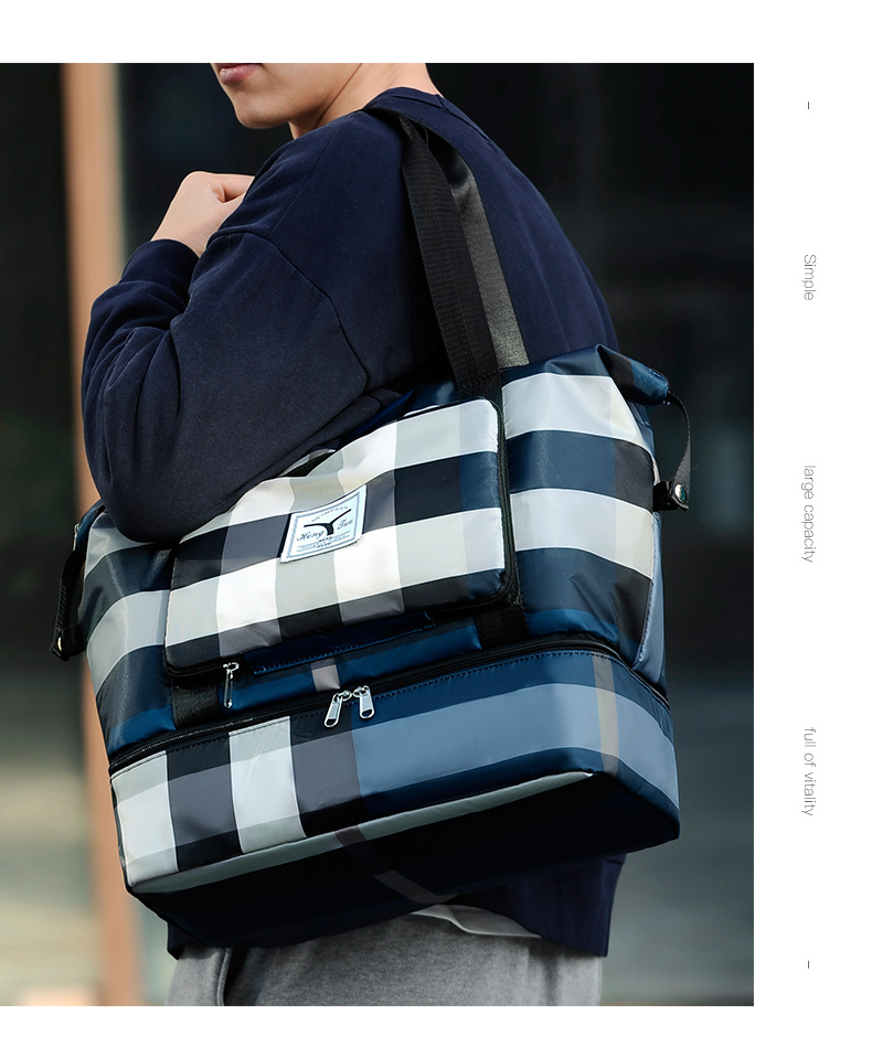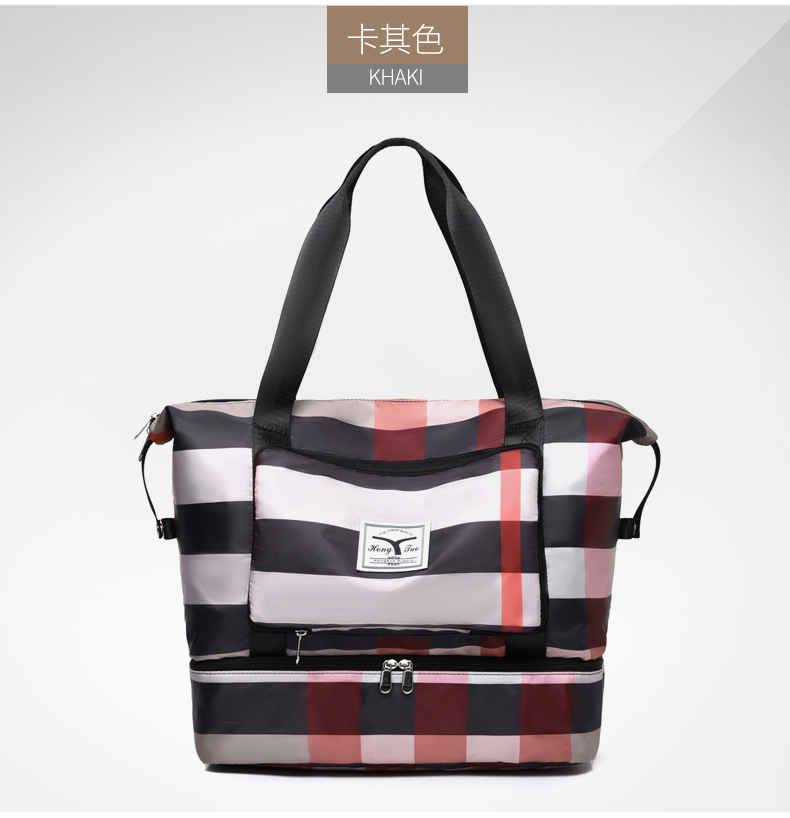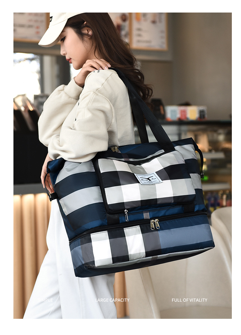 격자 무늬 접이식 여행 가방 유행 싱글 숄더 대용량 피트니스 가방 여행 단거리 더플 백 휴대용 보관 가방