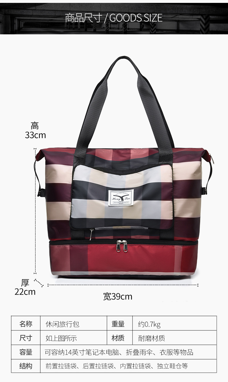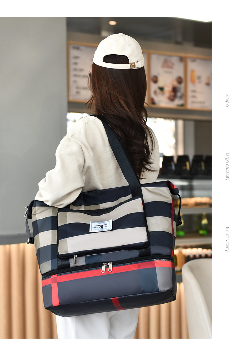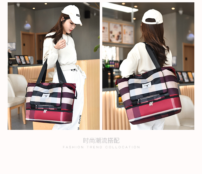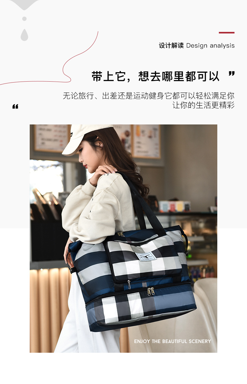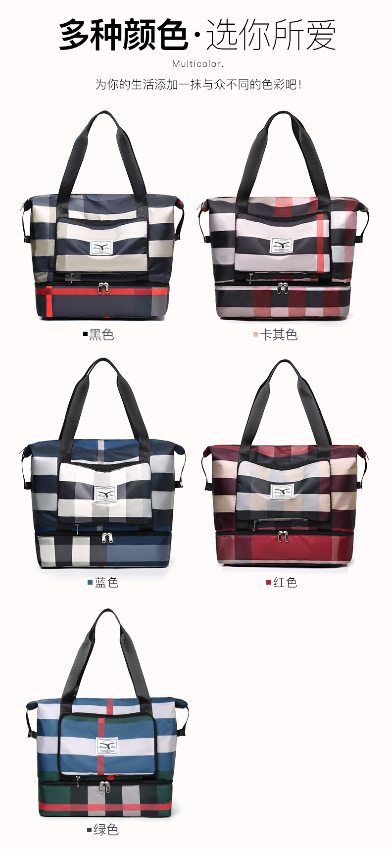 격자 무늬 접이식 여행 가방 유행 싱글 숄더 대용량 피트니스 가방 여행 단거리 더플 백 휴대용 보관 가방