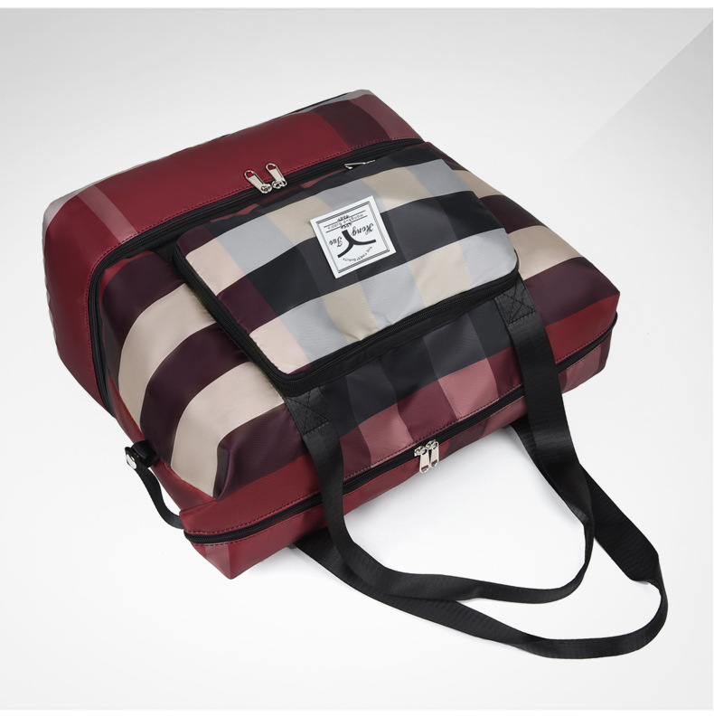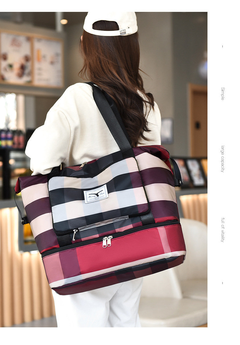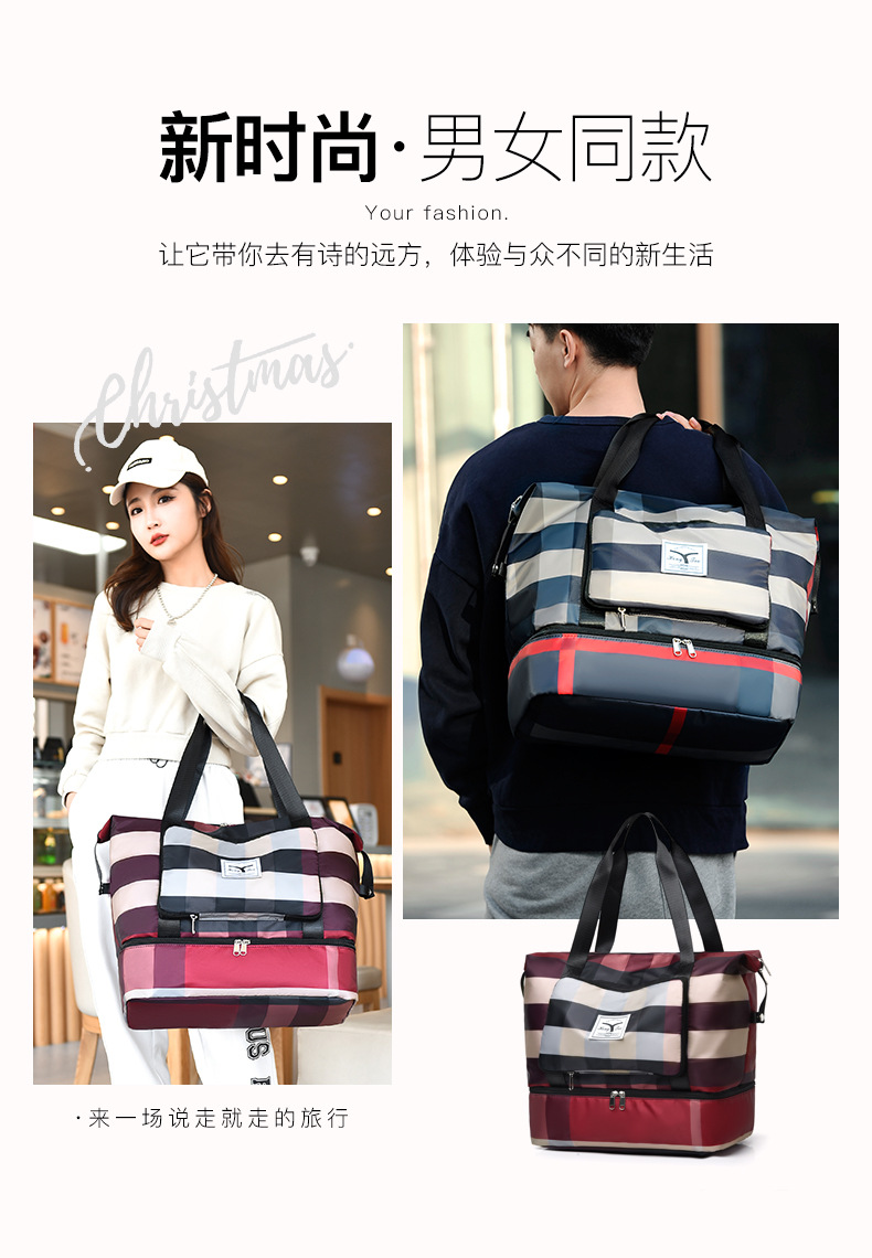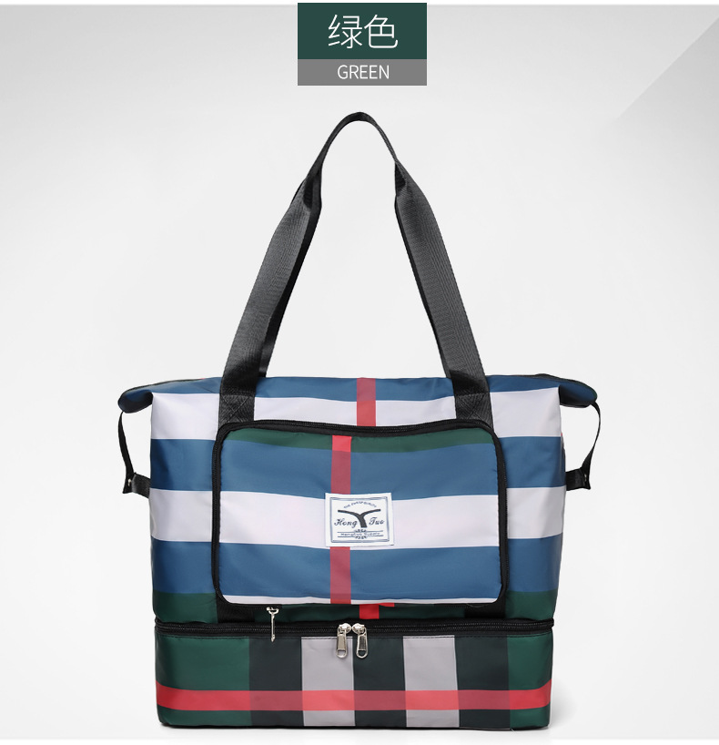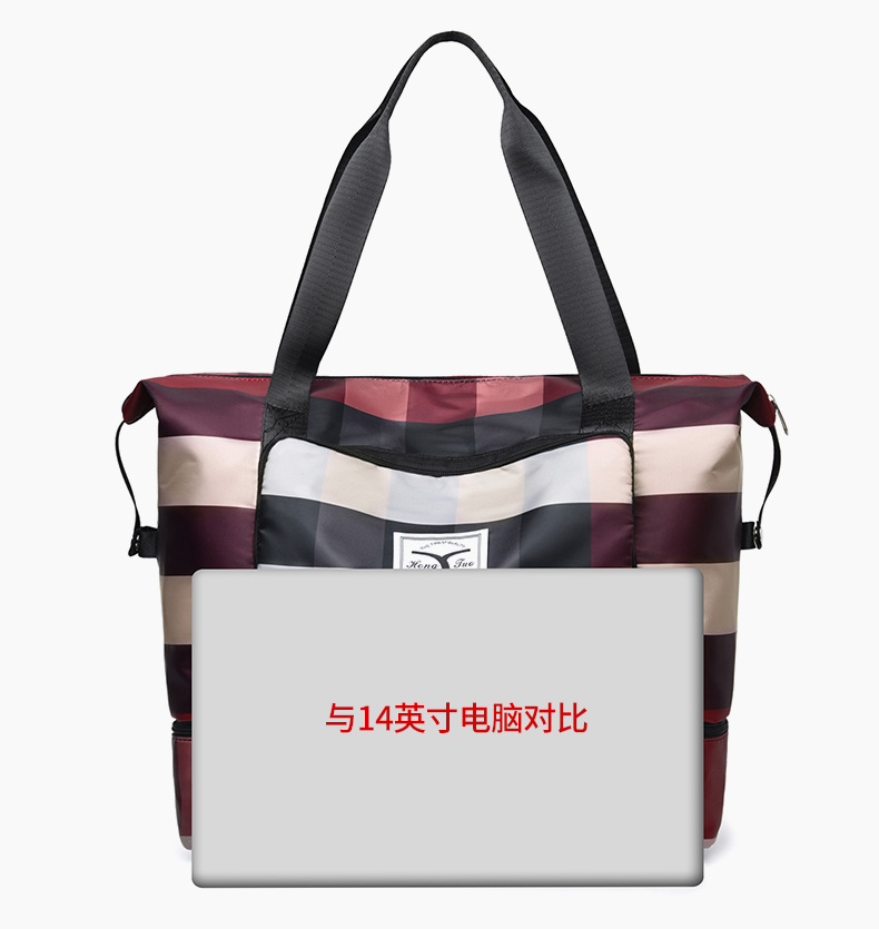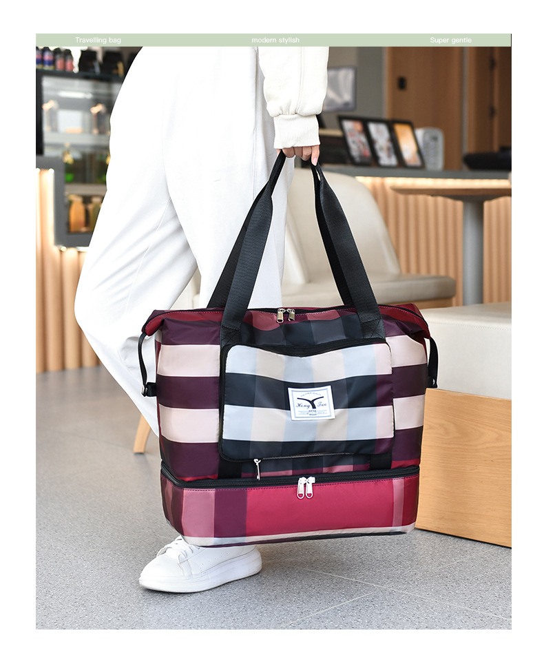 격자 무늬 접이식 여행 가방 유행 싱글 숄더 대용량 피트니스 가방 여행 단거리 더플 백 휴대용 보관 가방
