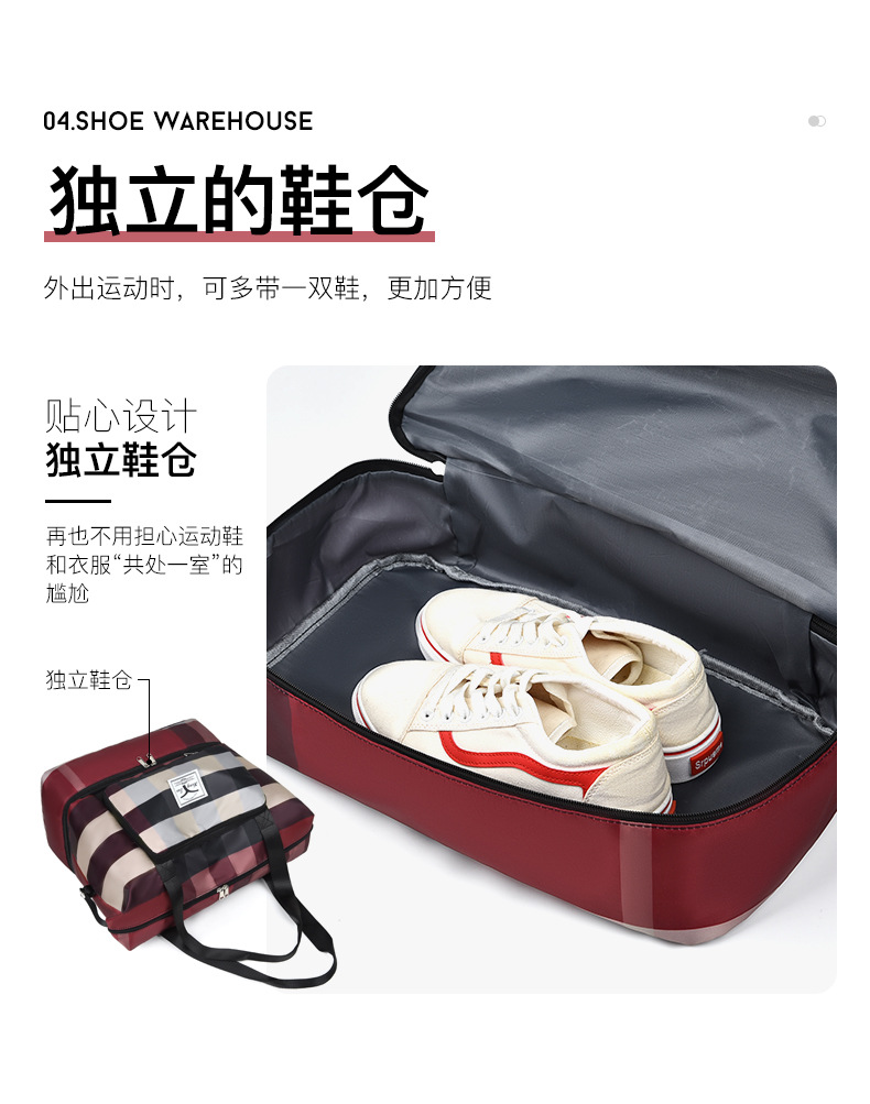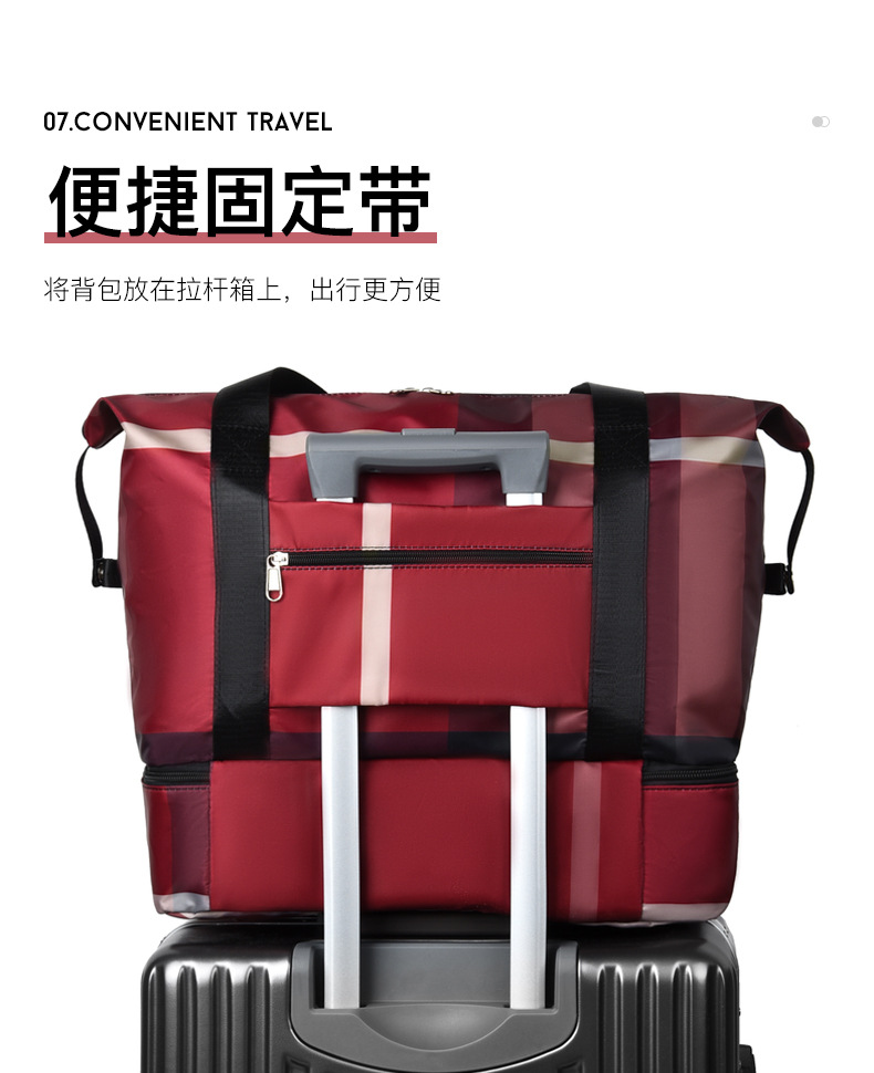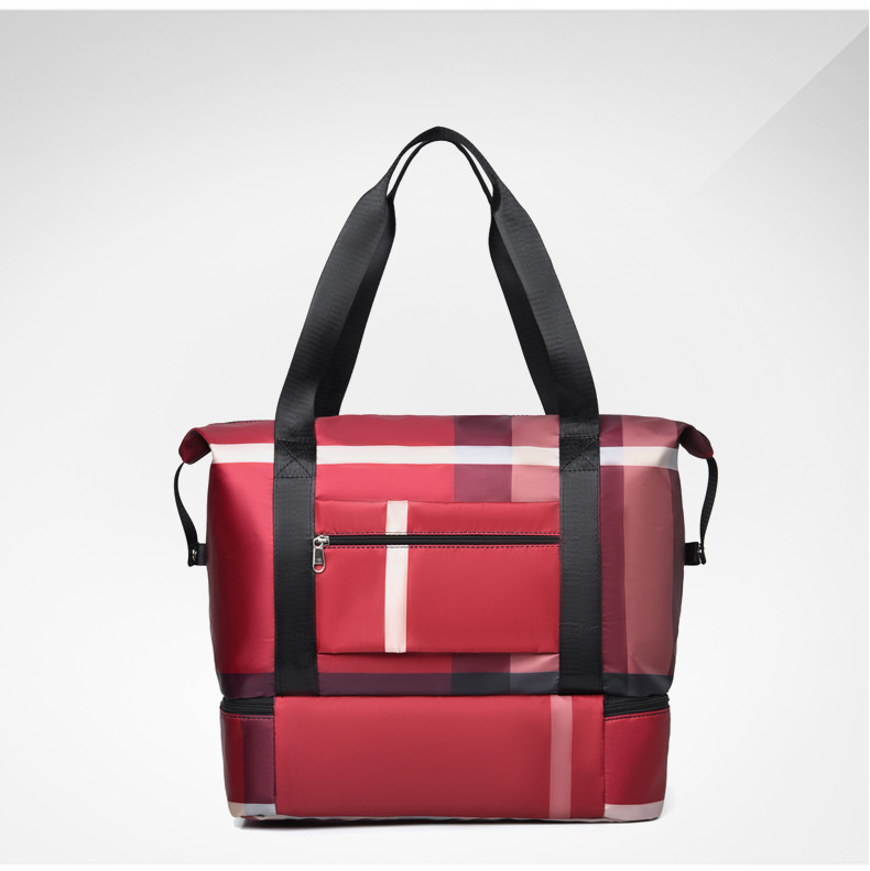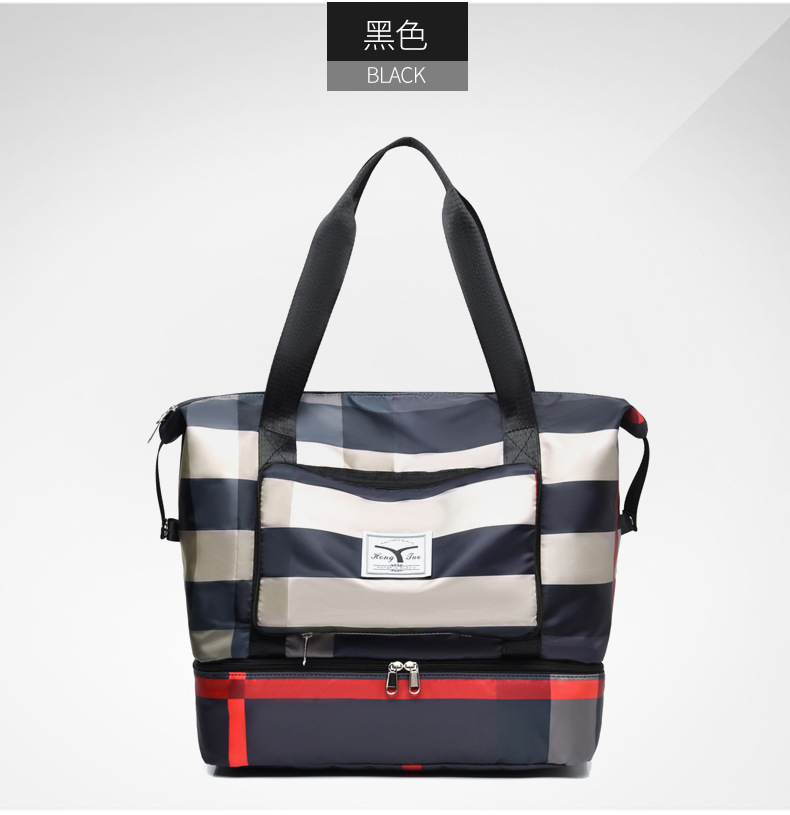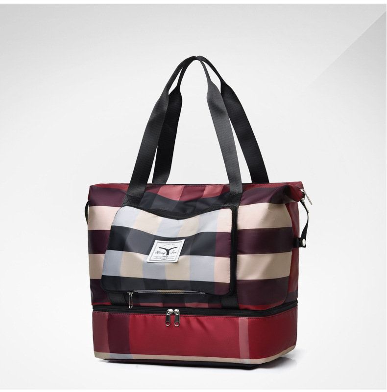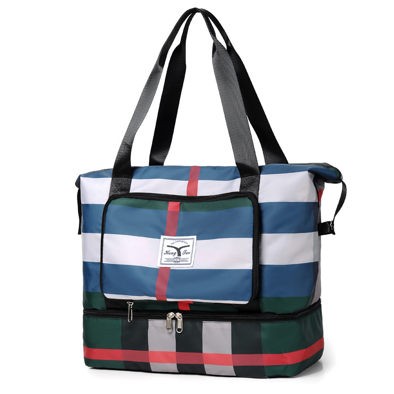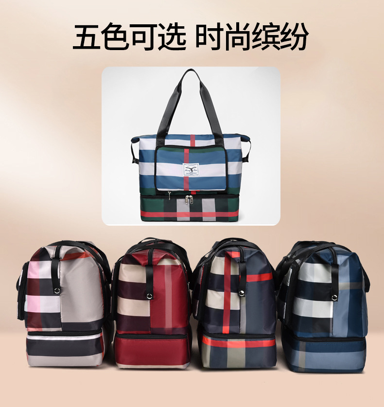 격자 무늬 접이식 여행 가방 유행 싱글 숄더 대용량 피트니스 가방 여행 단거리 더플 백 휴대용 보관 가방