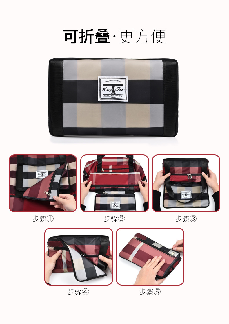 격자 무늬 접이식 여행 가방 유행 싱글 숄더 대용량 피트니스 가방 여행 단거리 더플 백 휴대용 보관 가방스토어 가기