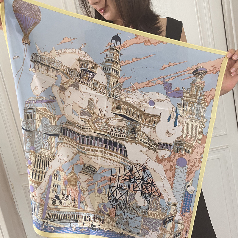 2026년 신상 더블 크레이프 여름용 얇은 자외선 차단 실크 스카프, 목과 어깨 보호용 멀버리 실크 스카프, 다용도 70cm 정사각형 스카프스토어 가기