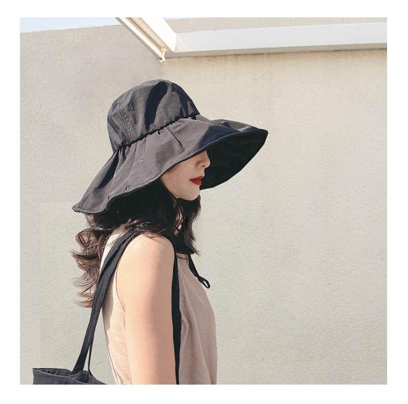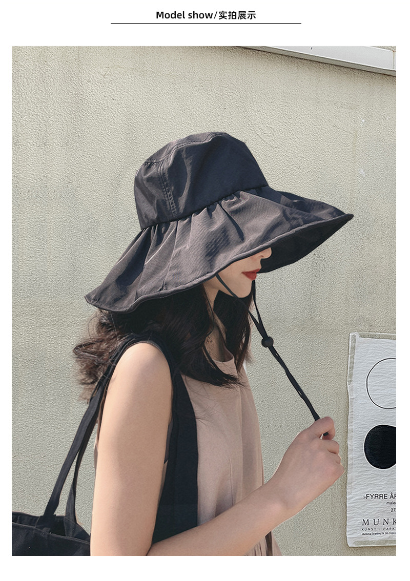 UPF50 검은 색 UV 선 스크린 모자 어린이 여름 얼굴 덮음 큰 모자 선스크린 모자 야외 어부 모자스토어 가기
