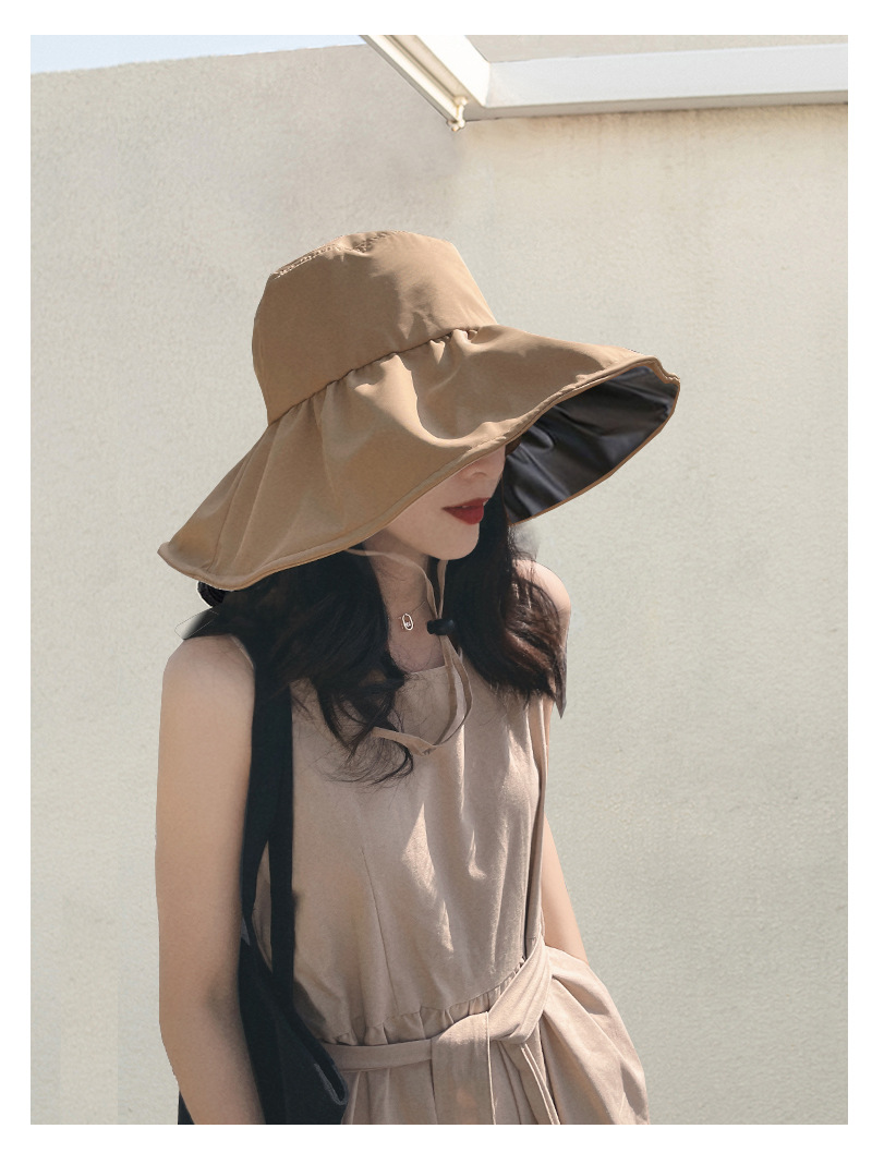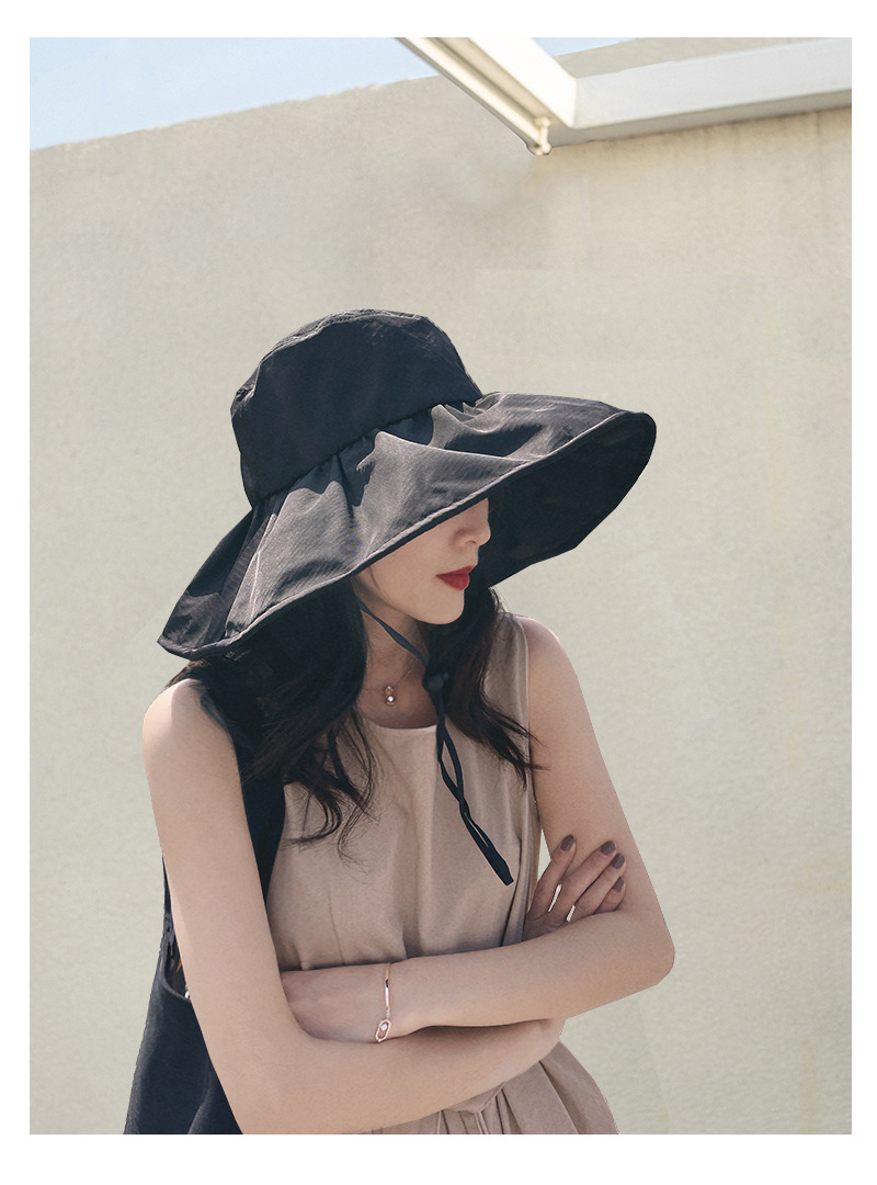 UPF50 검은 색 UV 선 스크린 모자 어린이 여름 얼굴 덮음 큰 모자 선스크린 모자 야외 어부 모자