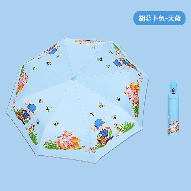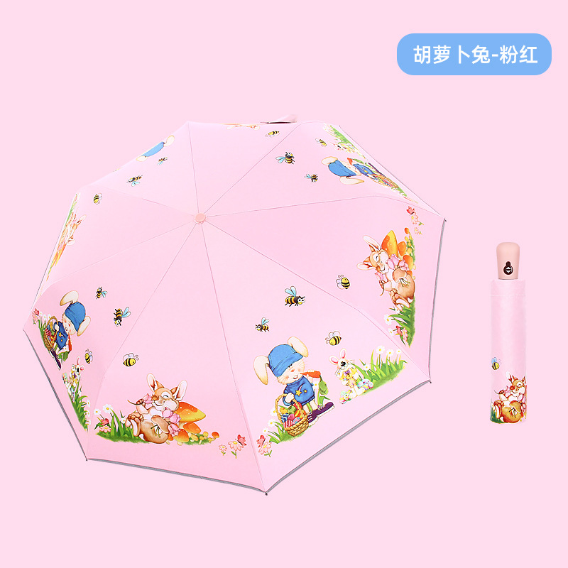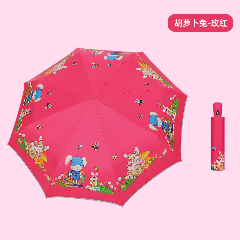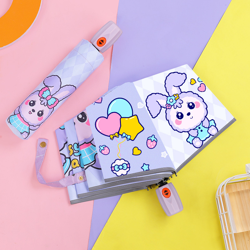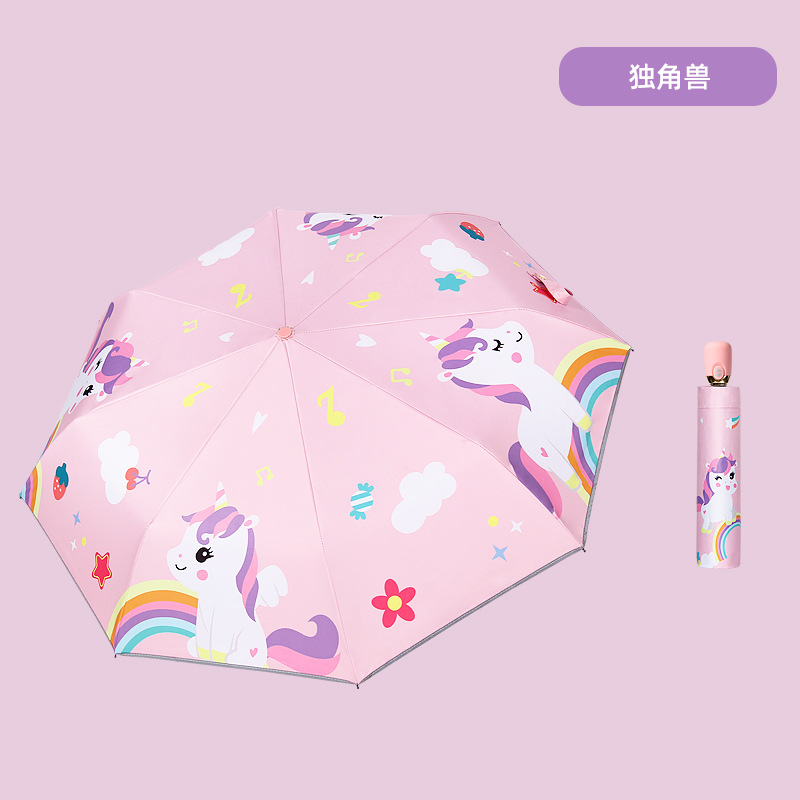 새로운 만화 자동 귀여운 어린이 우산 검은 고무 자외선 차단제 태양 우산 접는 어린이 우산스토어 가기