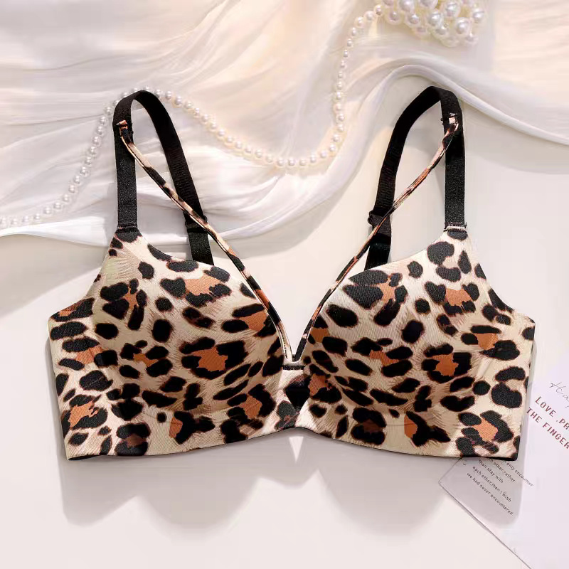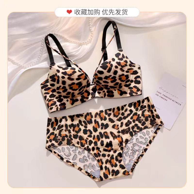 원래 순수한 욕망 속옷 여성의 추적없는 작은 가슴 푸시 업 큰 유방 처짐 방지 레오파드 무늬 섹시한 브래지어 세트