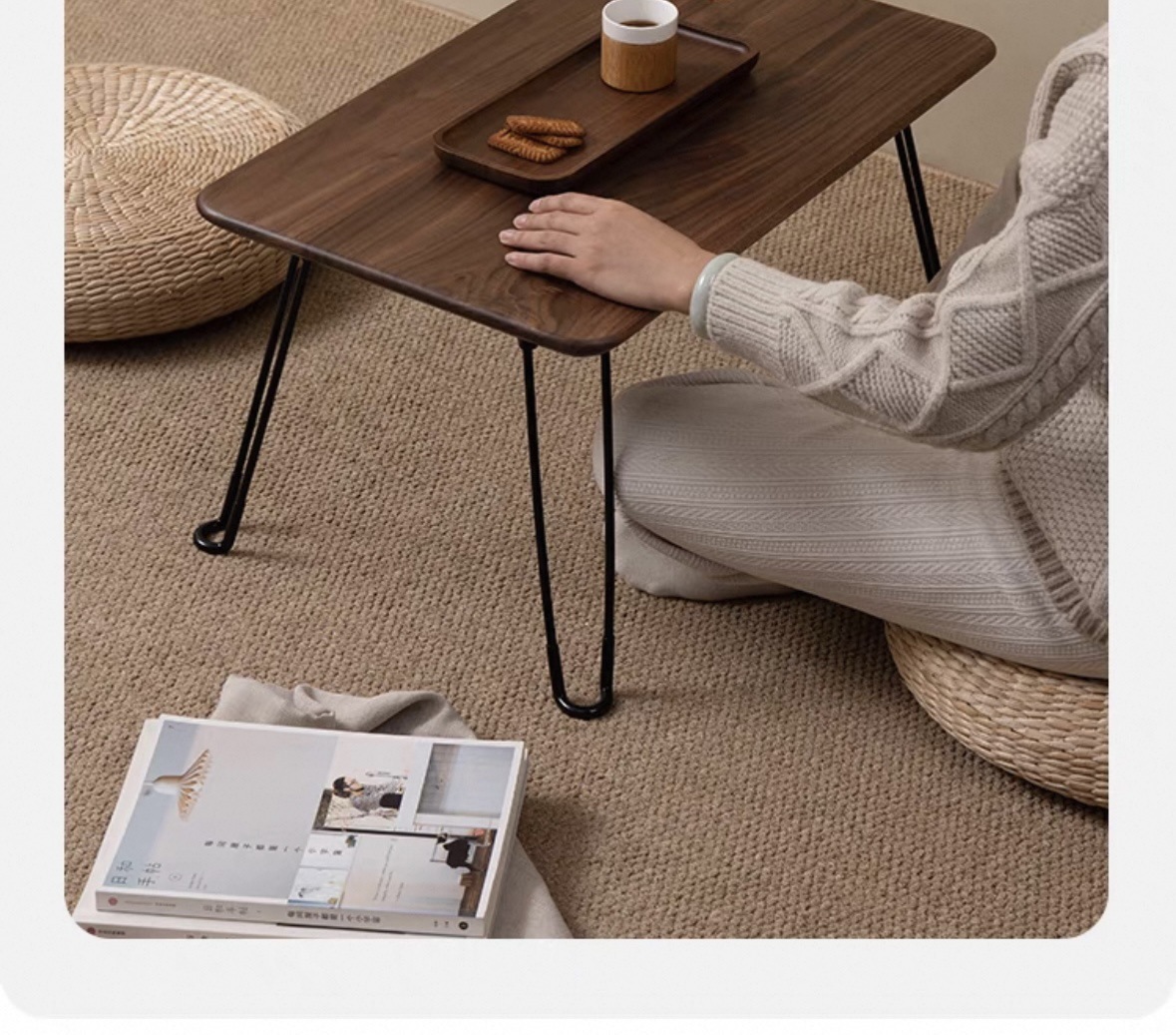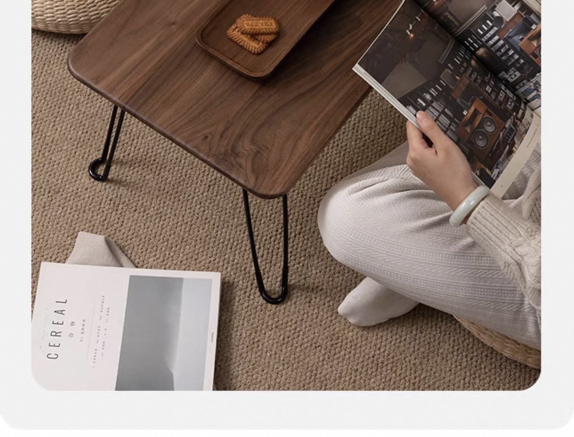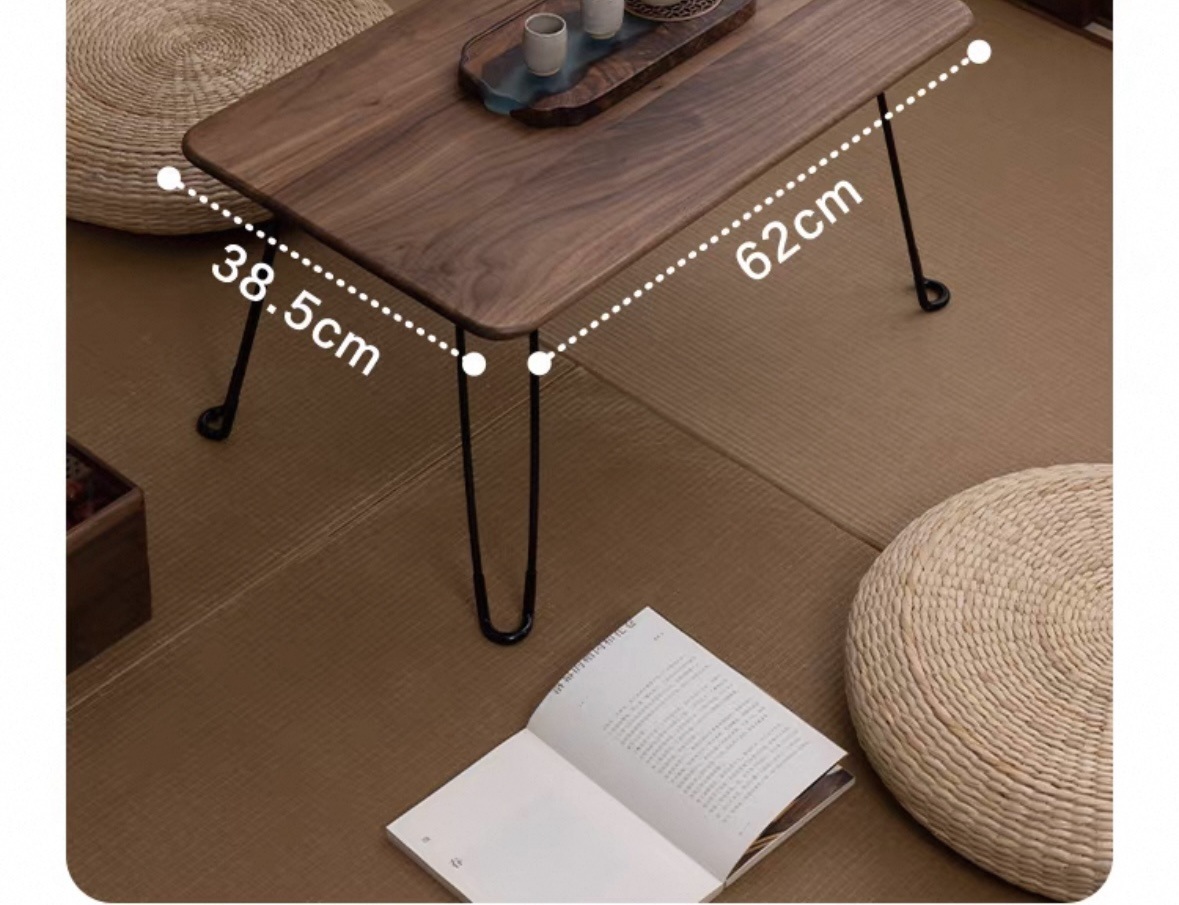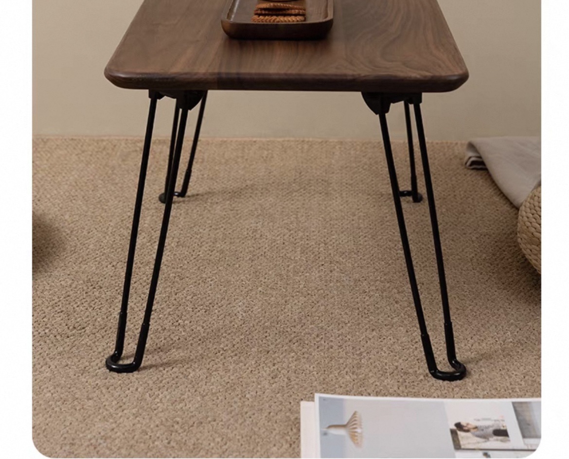 북미 블랙 월넛 접이식 테이블 티 테이블 야외 캠핑 순수 단단한 나무 베이 창 다다미 강 테이블 저장 및 높이 용이스토어 가기