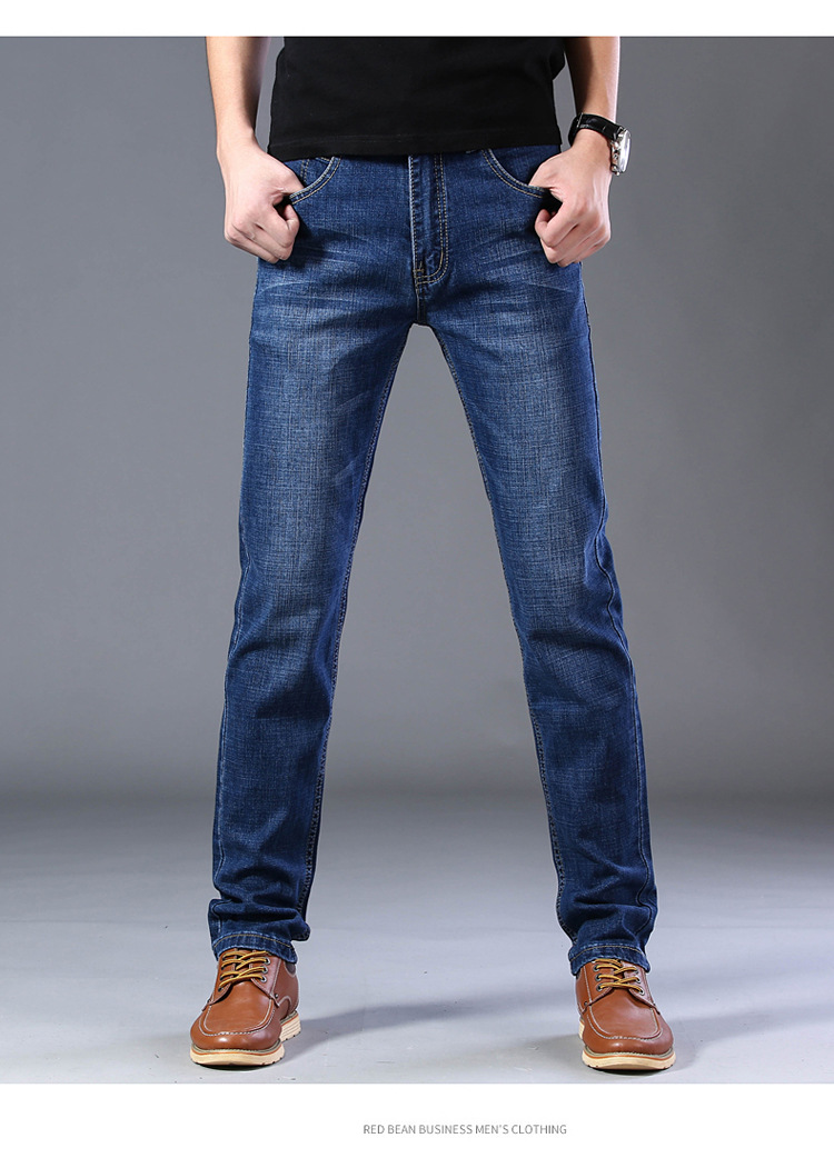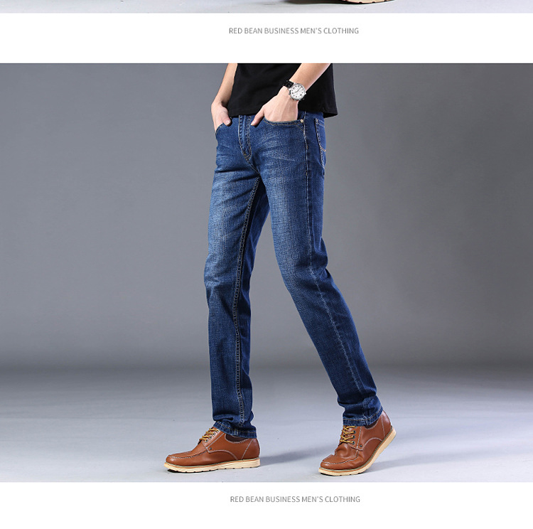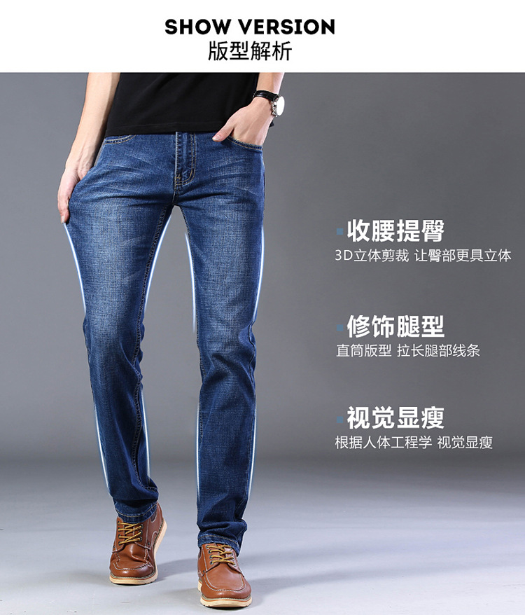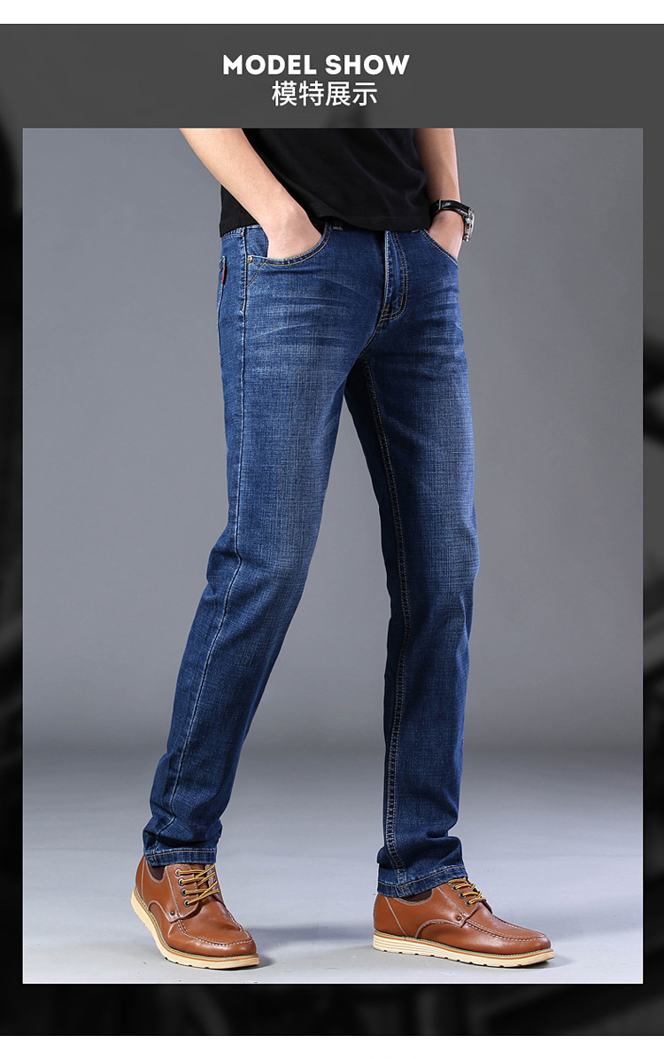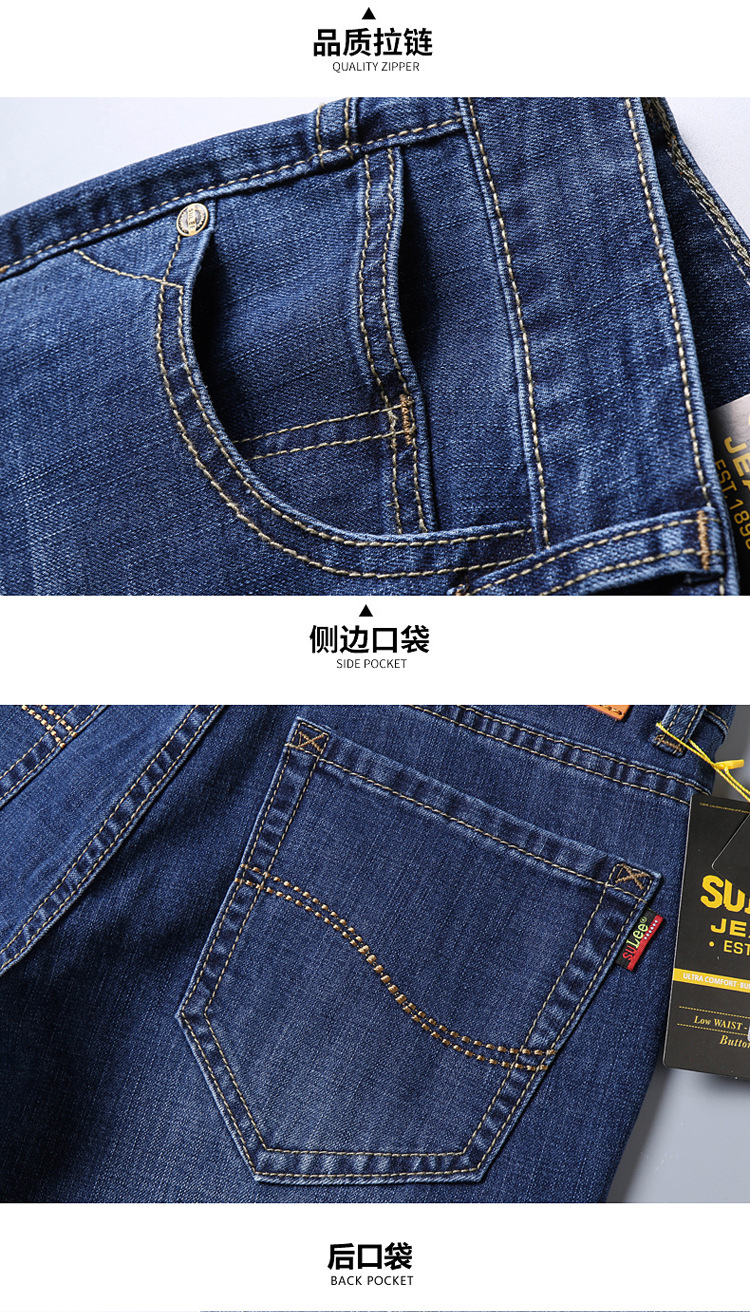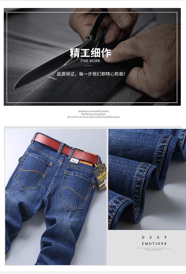 SU LEE 남성용 데님 팬츠 봄, 가을 남성용 스트레이트 루즈핏 대형 사이즈 신축성 있는 비즈니스 캐주얼 바지 남성용 바지스토어 가기