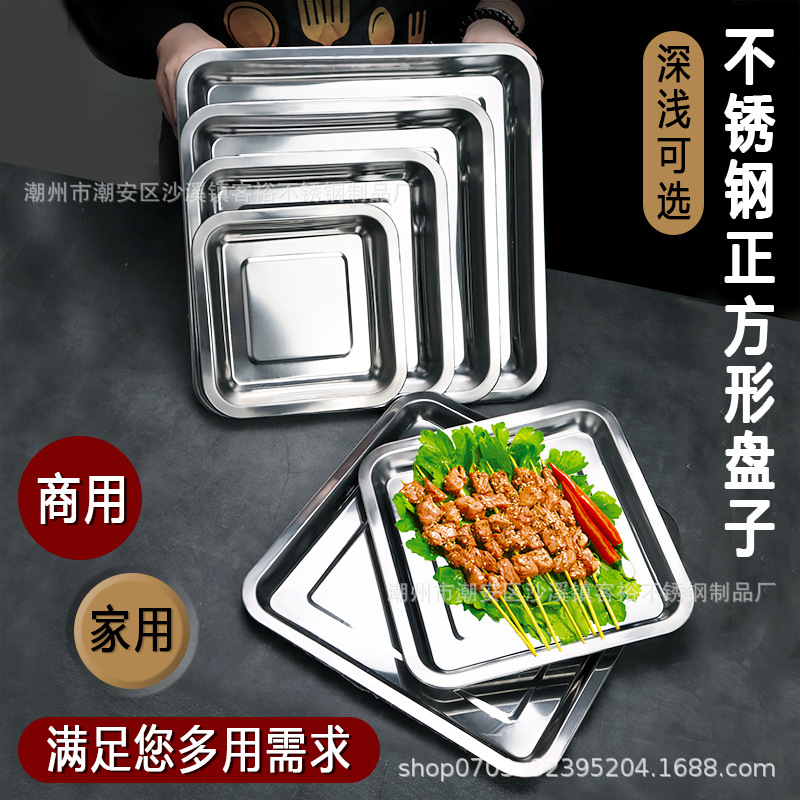 스테인레스 스틸 트레이 사각 접시 사각 접시 바베큐 접시 사각 접시 찐 밥 접시 음식 상업용 접시스토어 가기