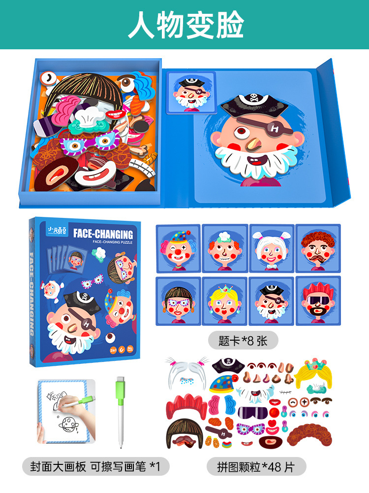 어린이 자석 퍼즐, 남아 여아 표정과 얼굴 특징, 계몽 인지 지능 발달, 유치원 조기 교육 교육용 장난감스토어 가기