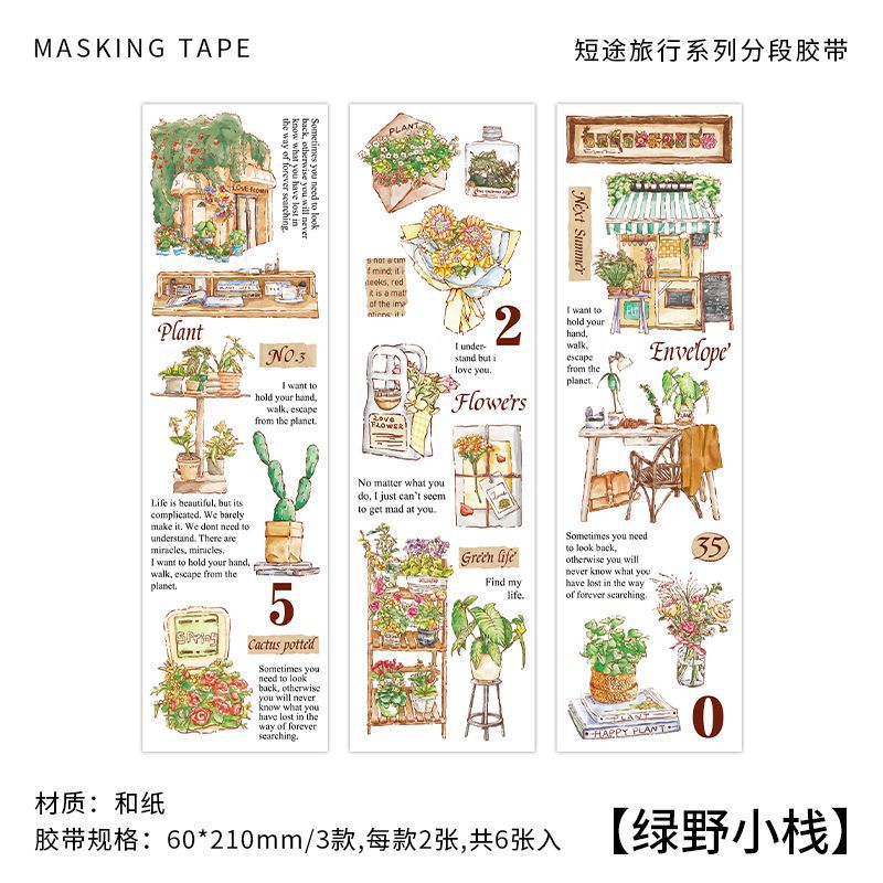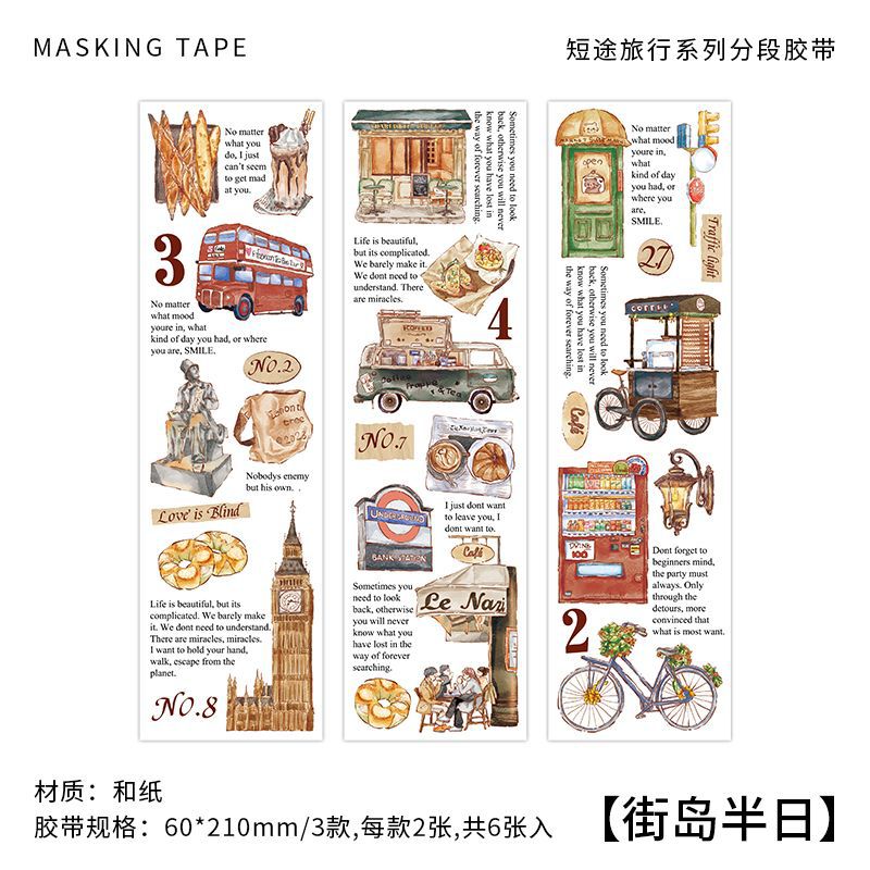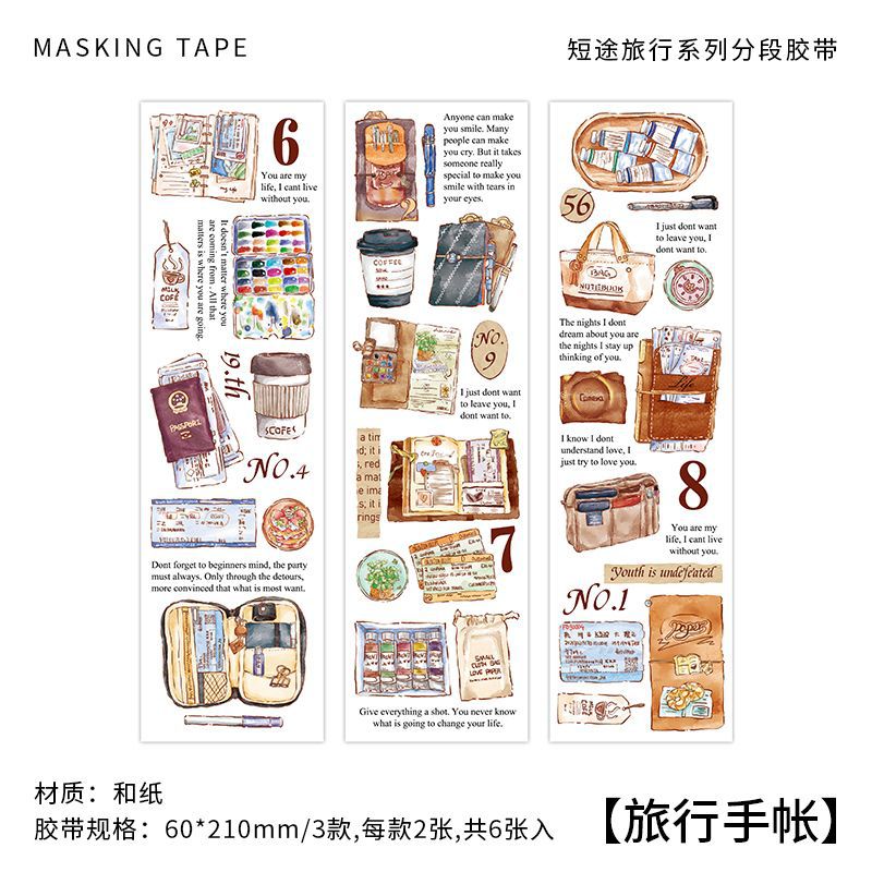 Infel. Me 단거리 여행 시리즈 및 종이 세그먼트 테이프 레트로 손으로 그린 항목 일러스트 핸드북 장식 스티커스토어 가기