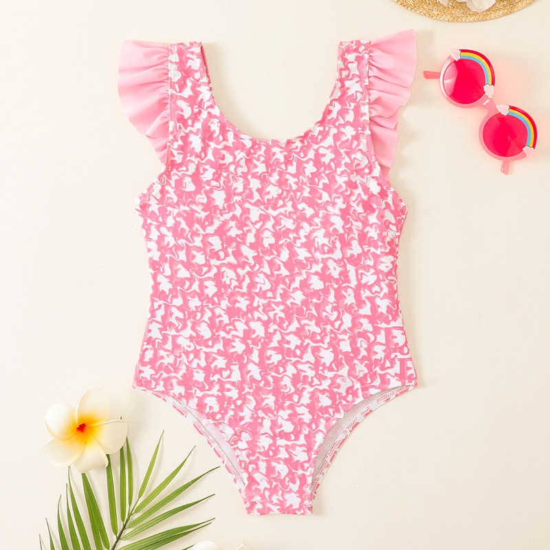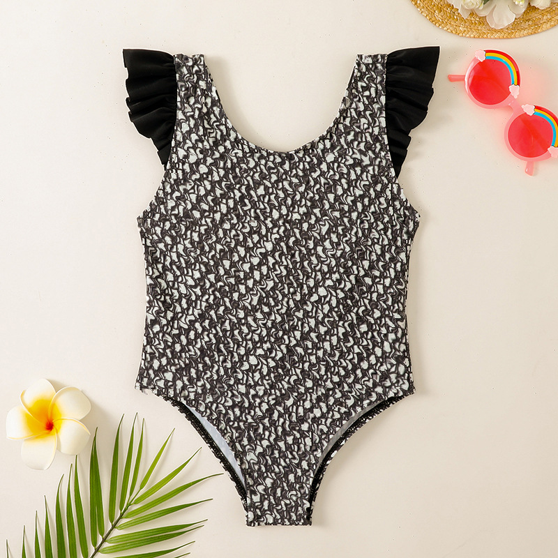 2023 트렌디 한 브랜드 어린이 수영복 주름 비행 활 디자이너 편지 인쇄 소녀 수영복 로고