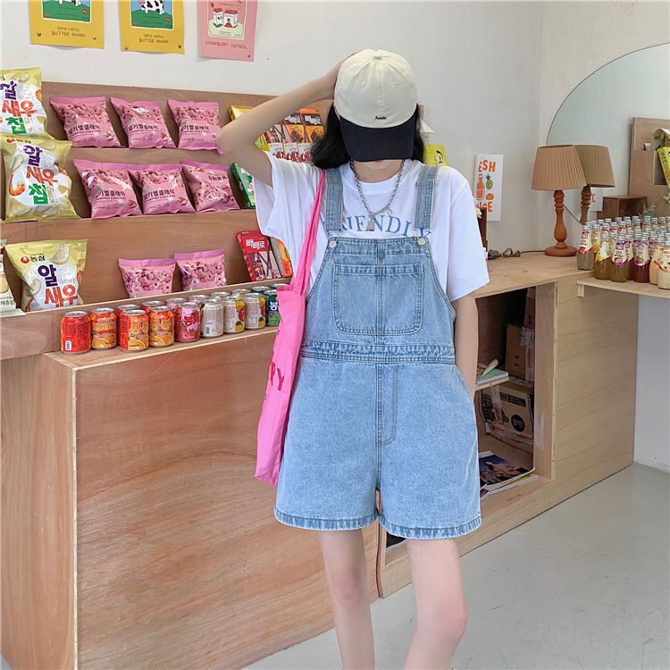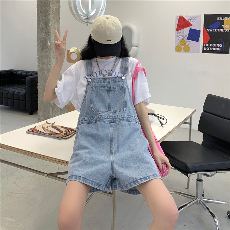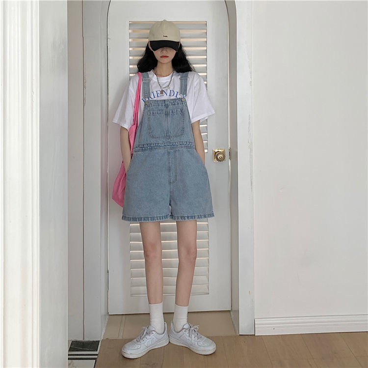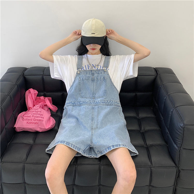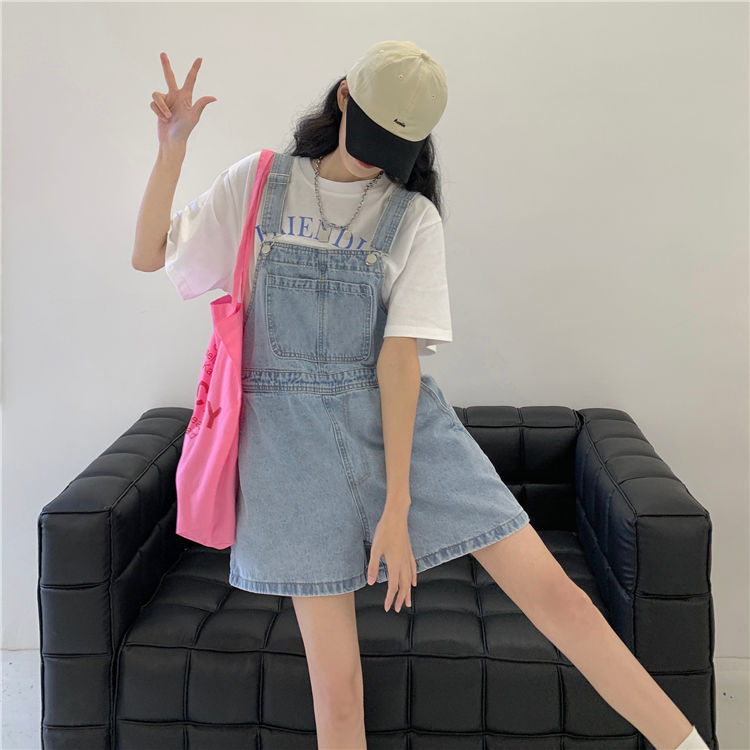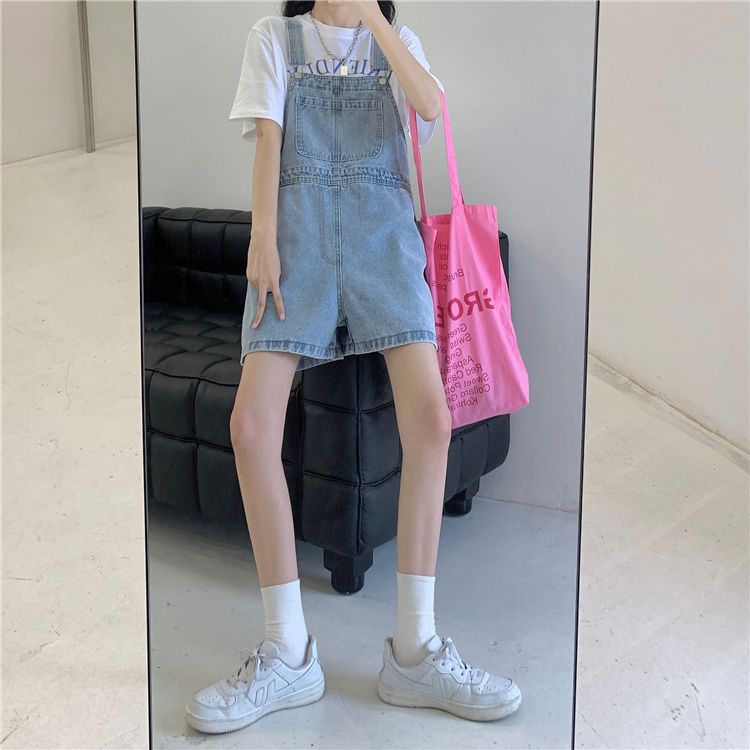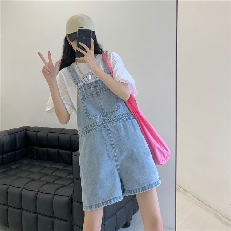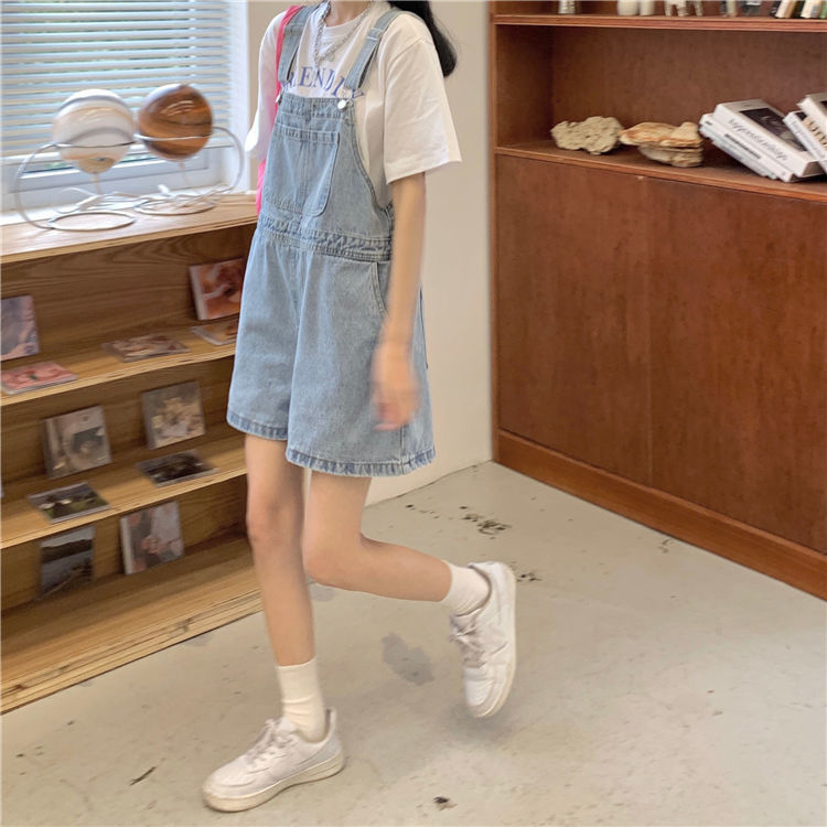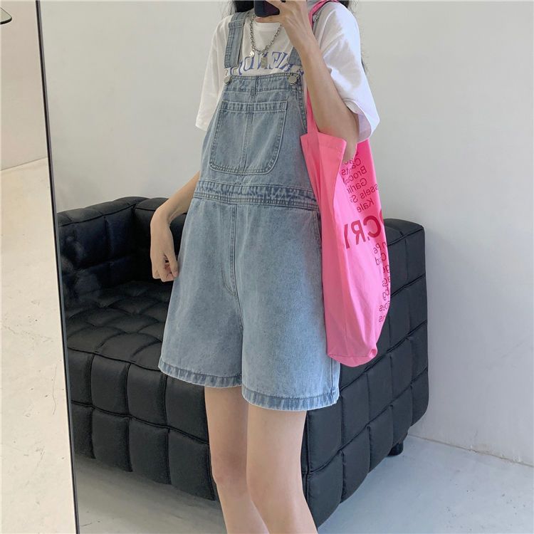 데님 멜빵 바지 여성 반바지 여름 2023 새로운 루즈한 한국 스타일 학생 a 자형 와이드 팬츠 모든 매치 인 트렌디스토어 가기