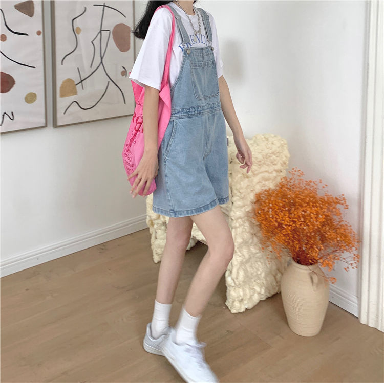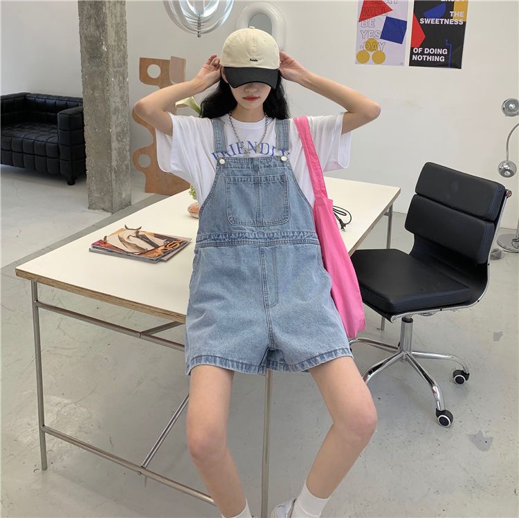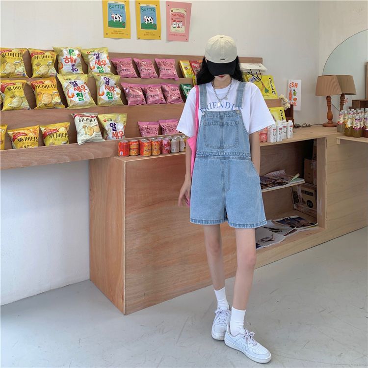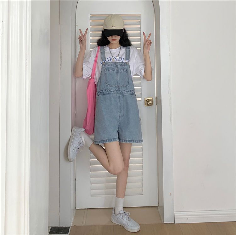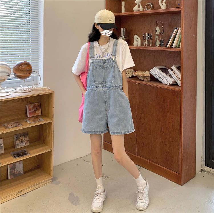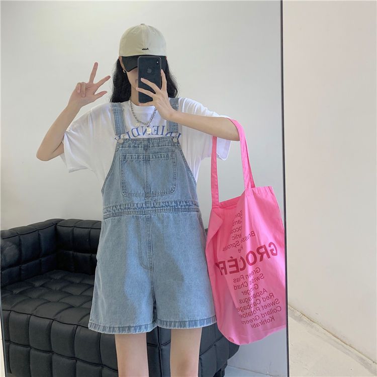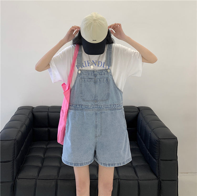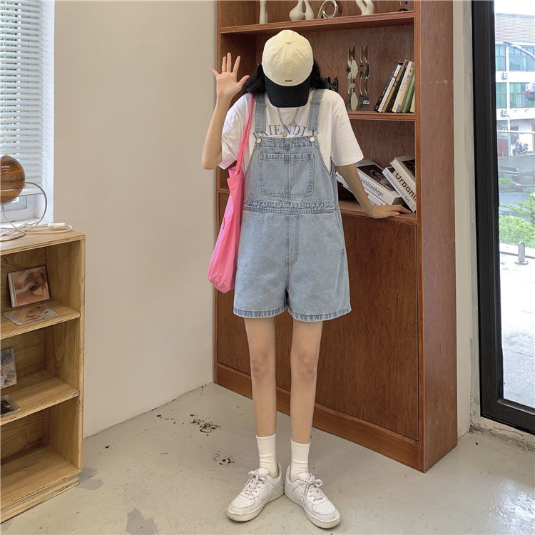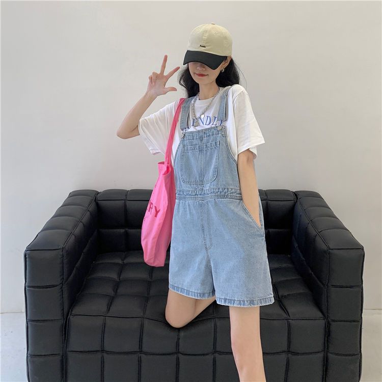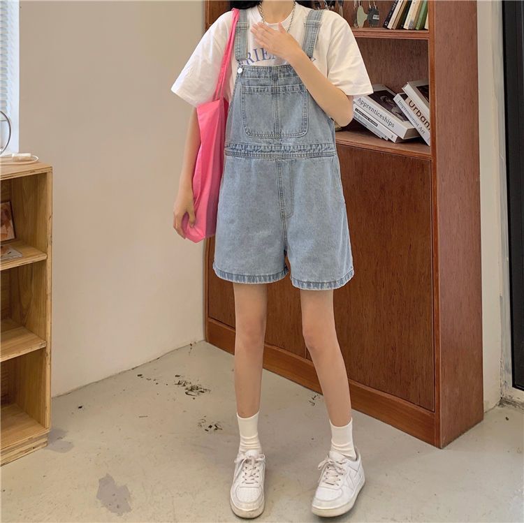 데님 멜빵 바지 여성 반바지 여름 2023 새로운 루즈한 한국 스타일 학생 a 자형 와이드 팬츠 모든 매치 인 트렌디스토어 가기