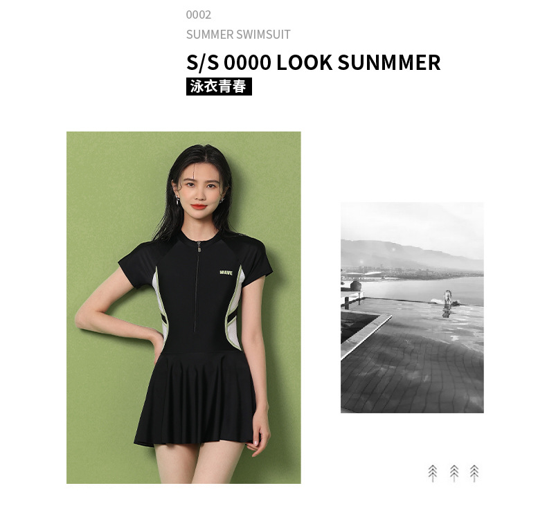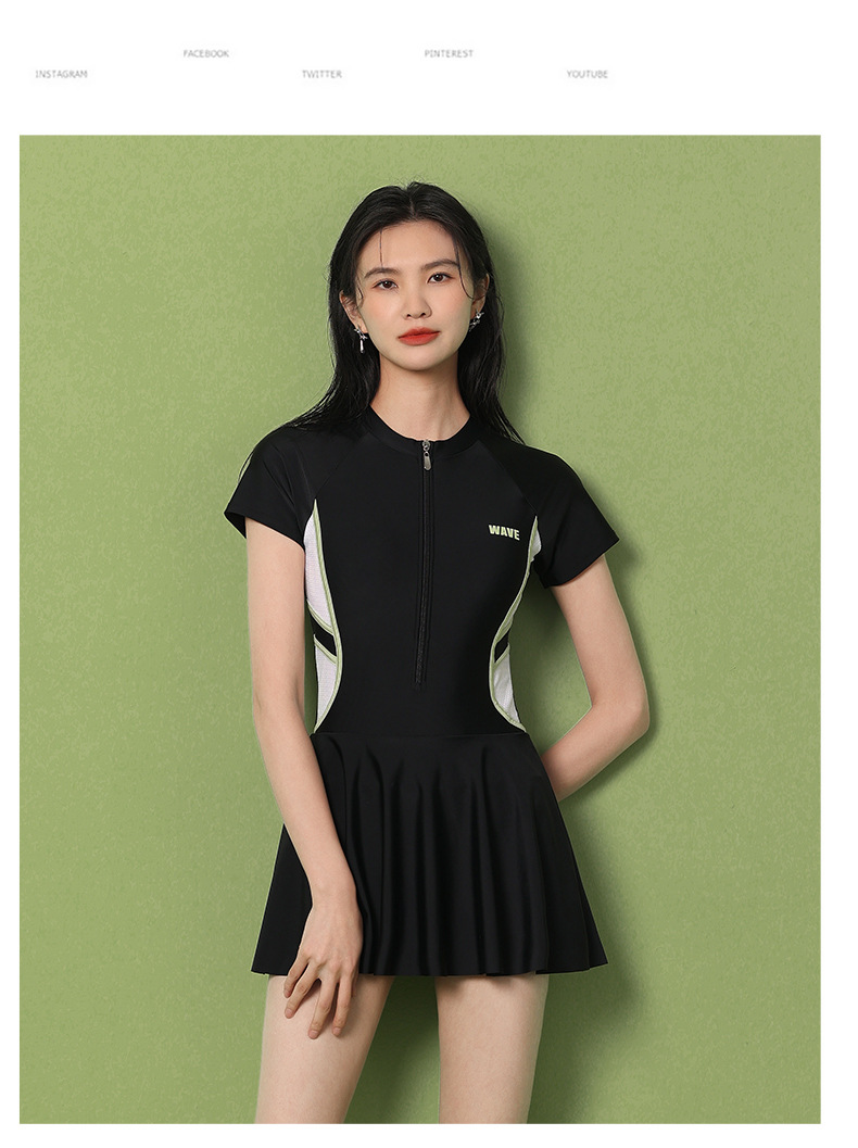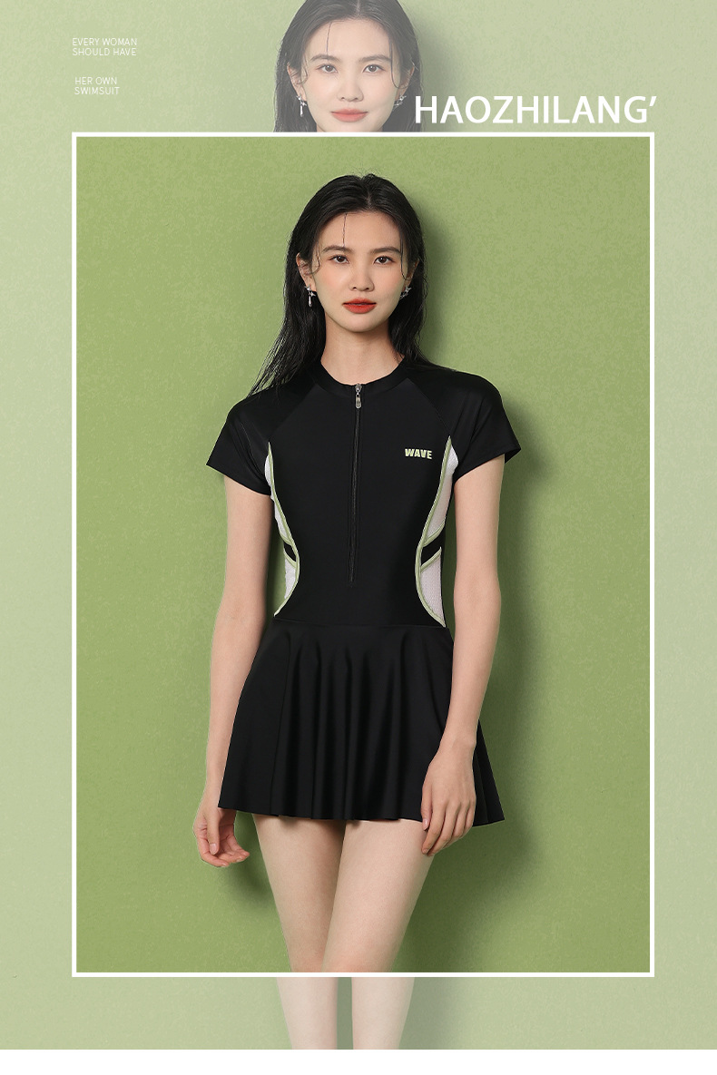 【Hao Zhi Lang】여성용 스포츠 원피스 수영복 여름 수영복 스커트형 수영복 도매 반팔 대형 사이즈 원피스 속건 수영복스토어 가기